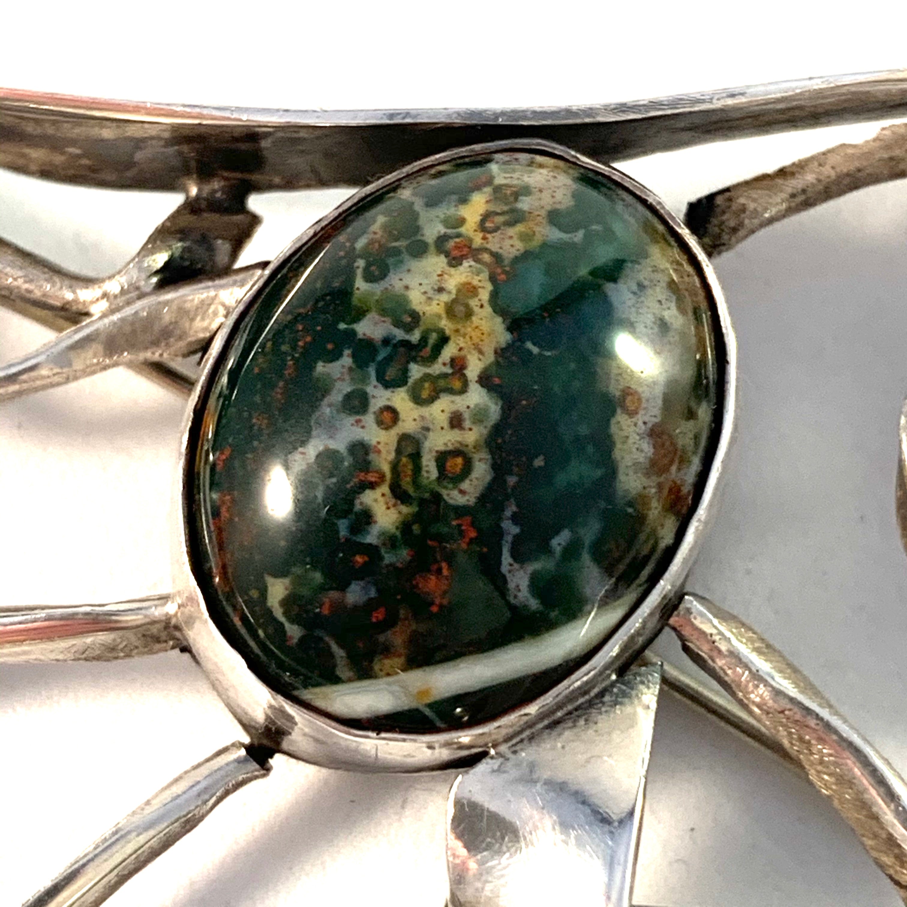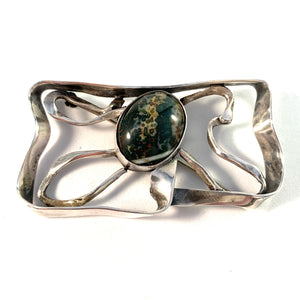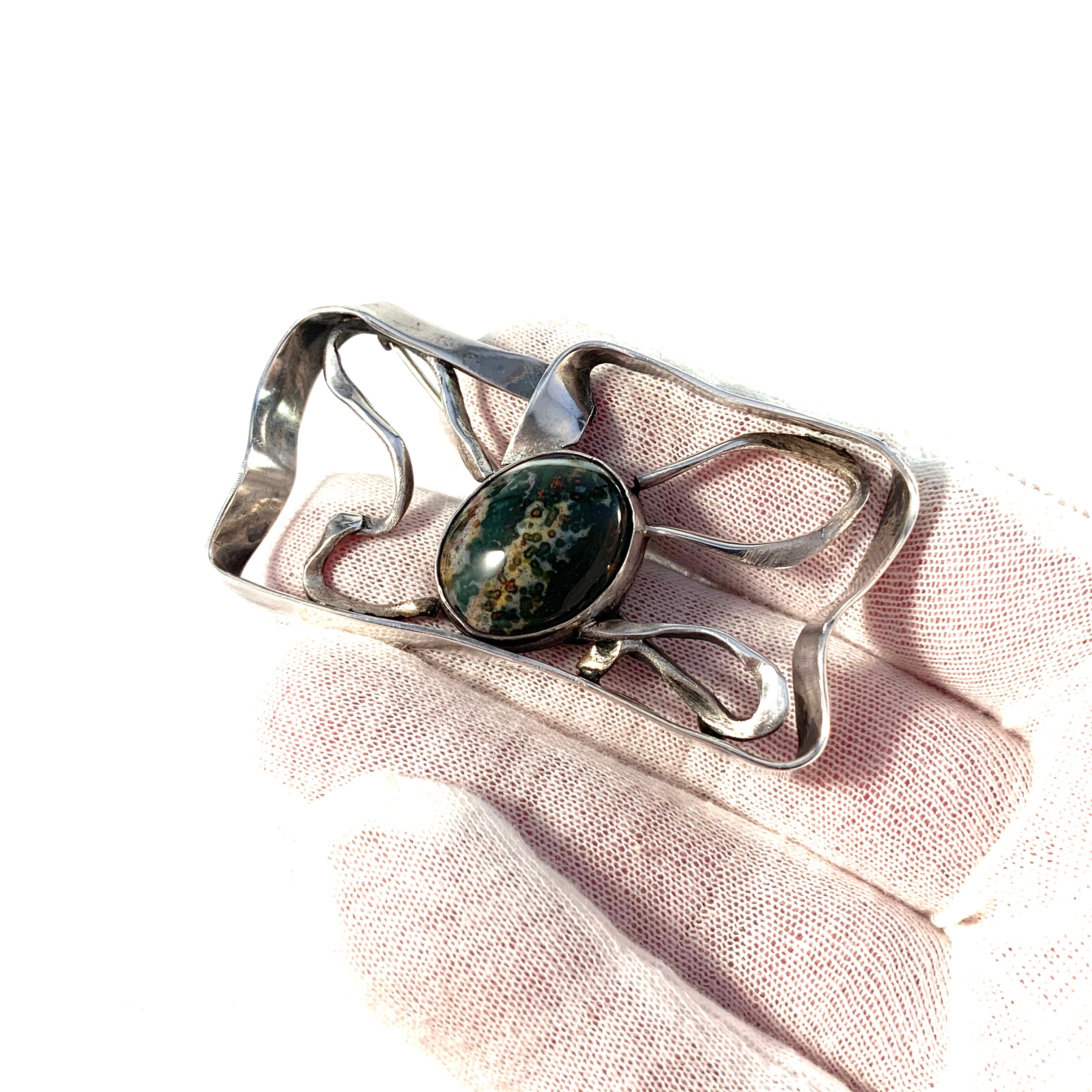 Charming and large sterling silver agate brooch. Apparently unmarked. Made 1960-70s, probably continental Europe. Studio-work.