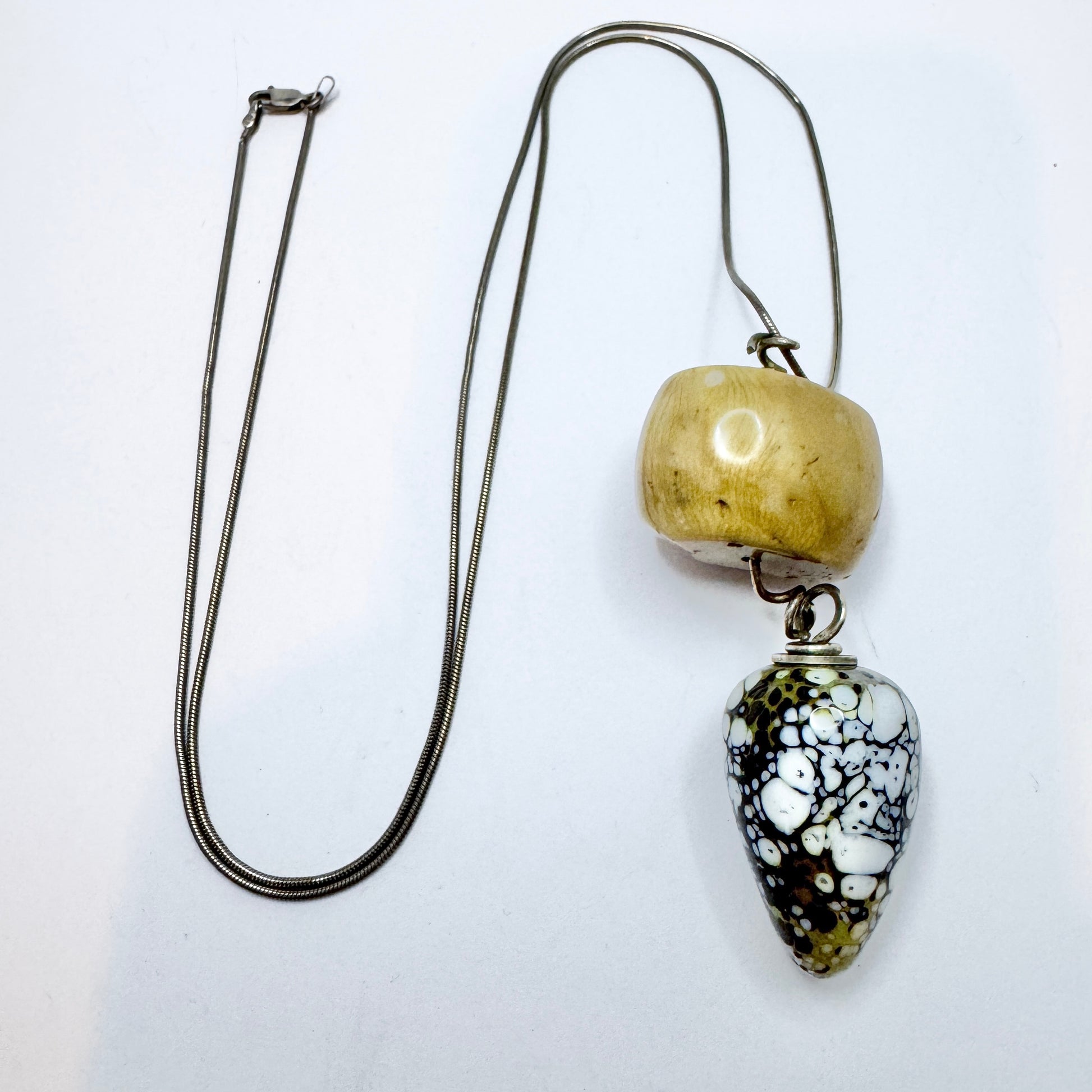 Bold vintage sterling silver hardstone pendant necklace. Chain hallmarked for sterling silver Italy. Pendant with unmarked sterling silver findings.
