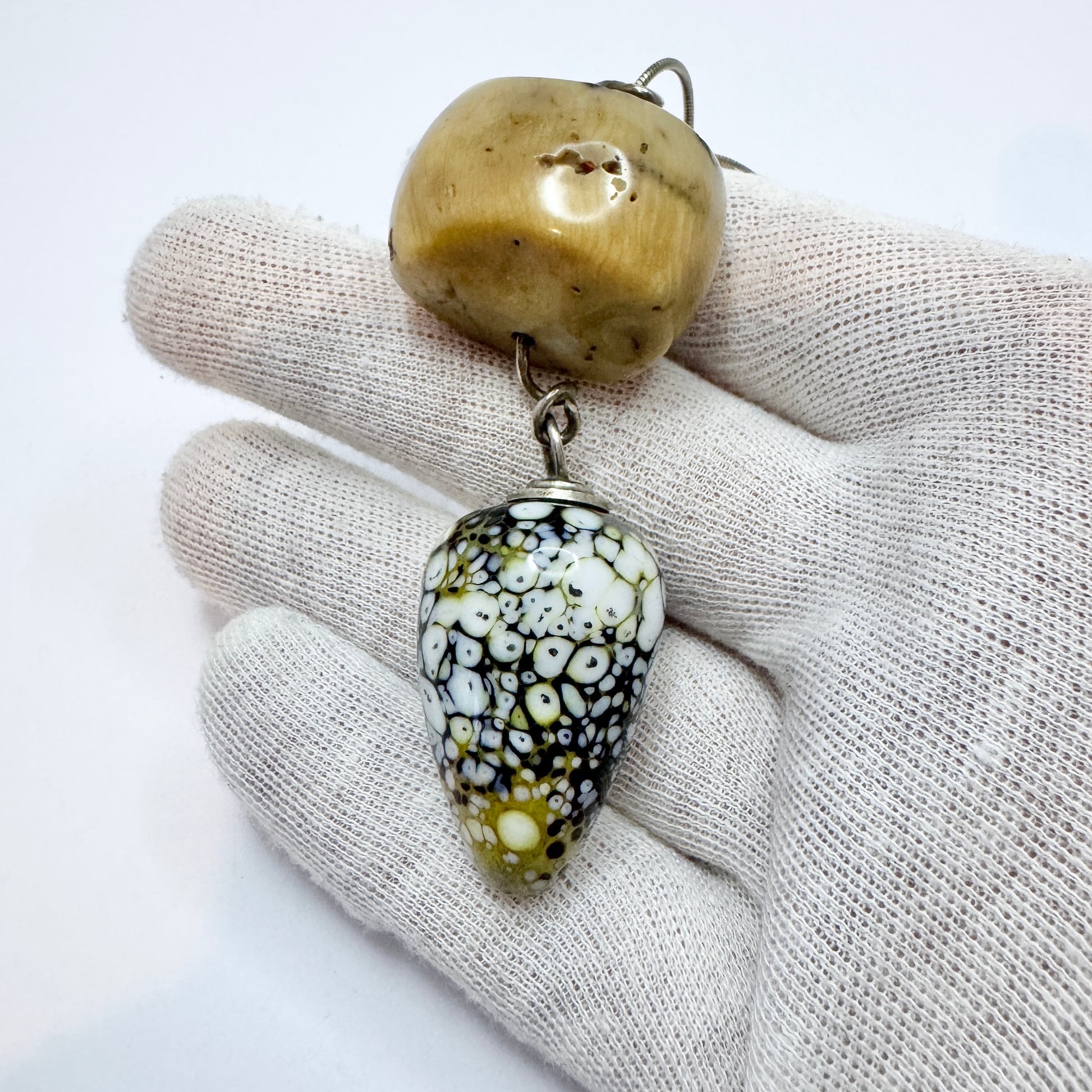 Large Vintage Sterling Silver Hardstone Pendant Necklace