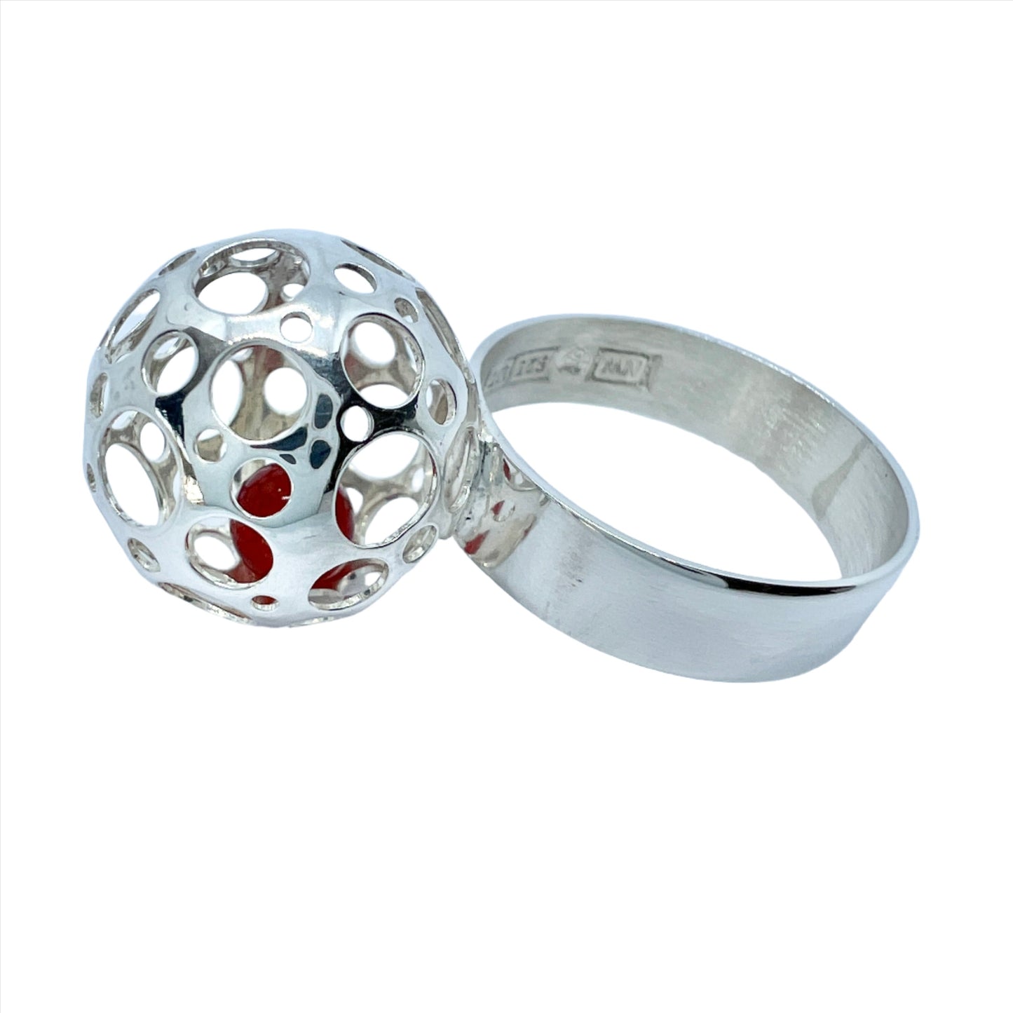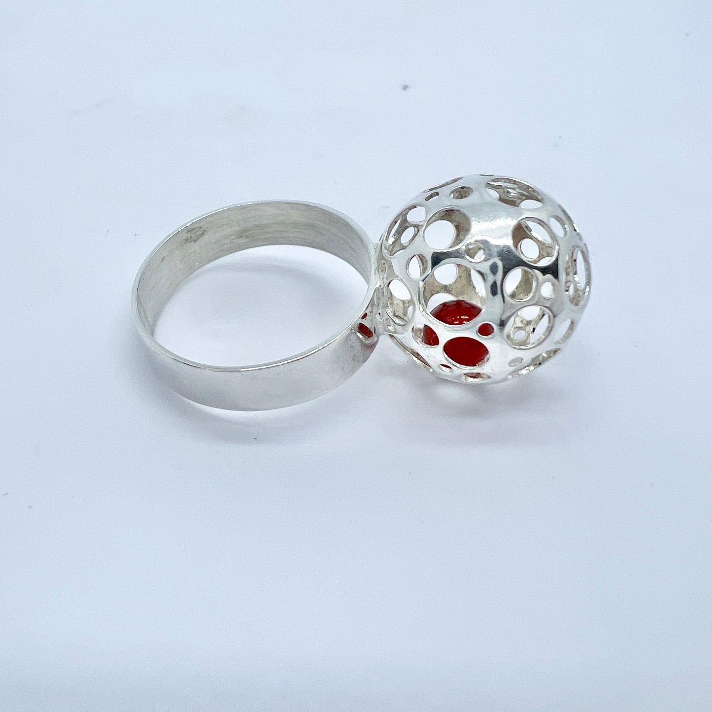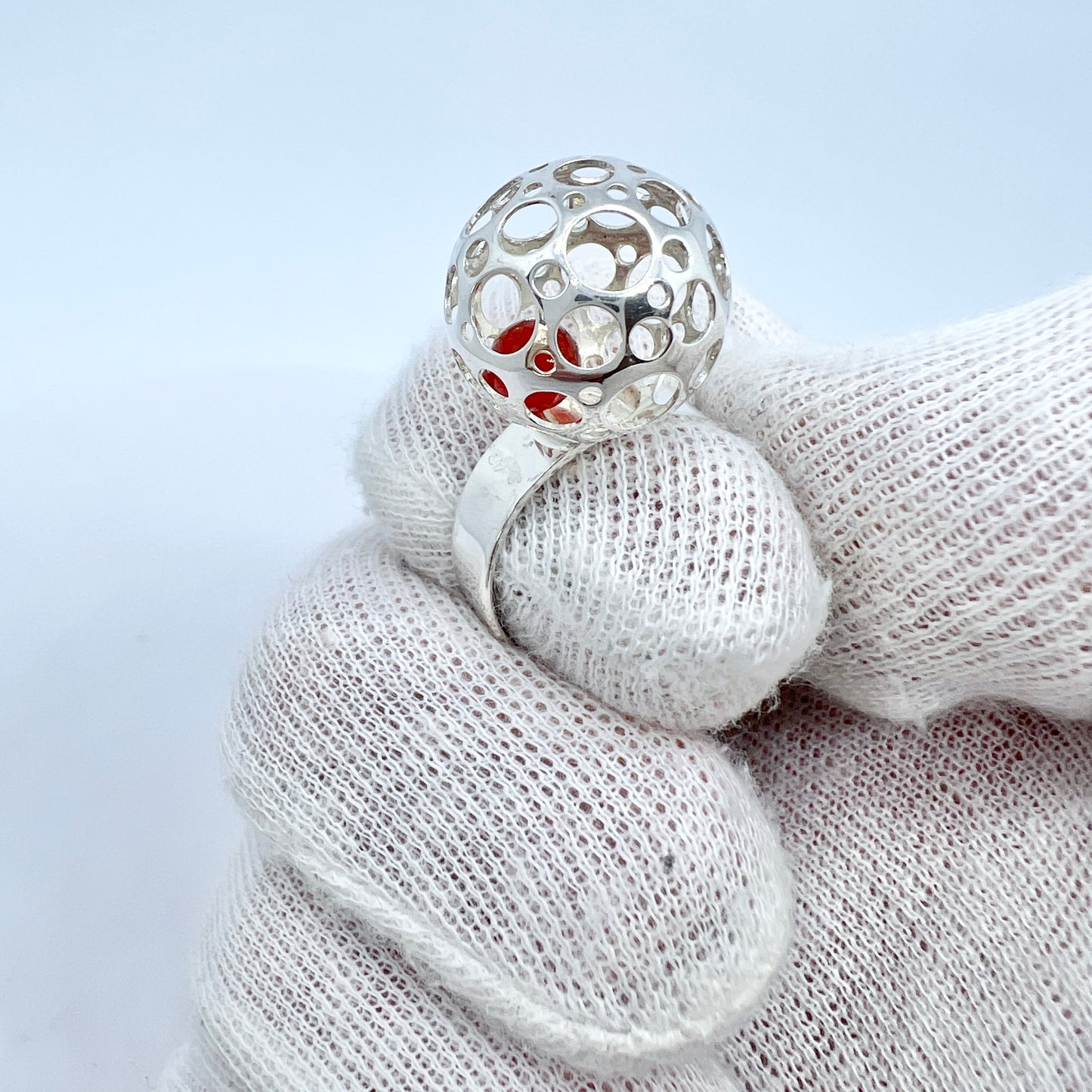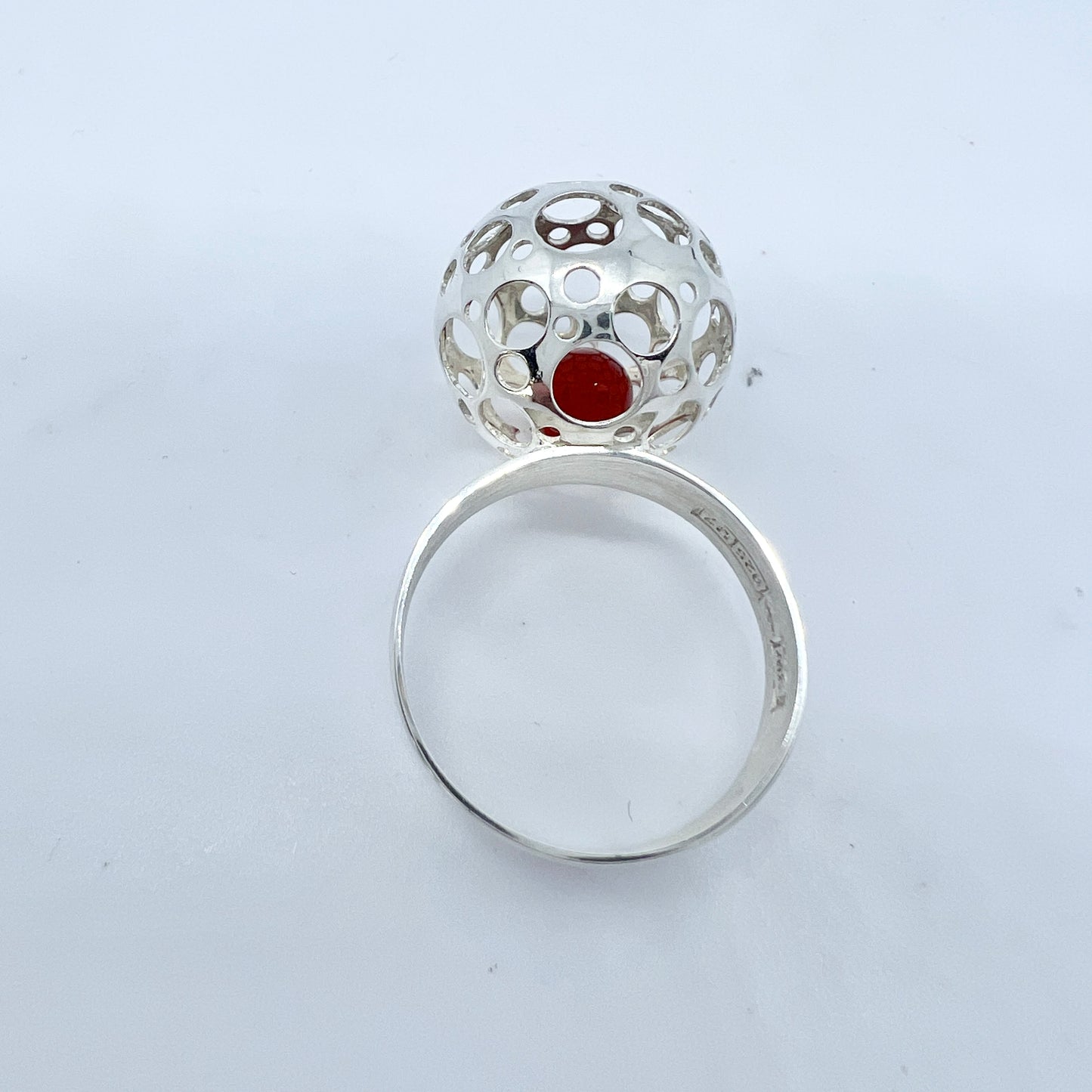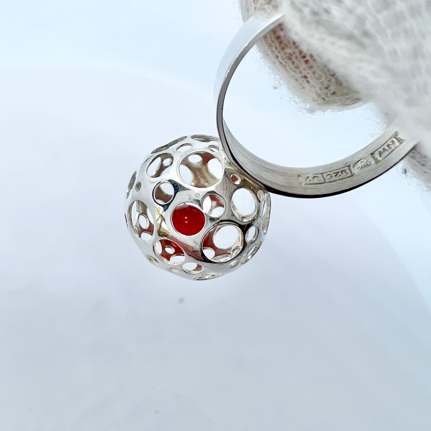 Liisa Vitali for N Westerback, Finland 1973 Vintage Sterling Silver Trapped Carnelian Sphere Ring