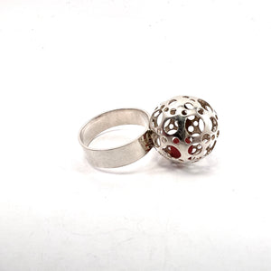 Liisa Vitali for N Westerback, Finland year 1973 Sterling Silver Trapped Carnelian Sphere Ring.