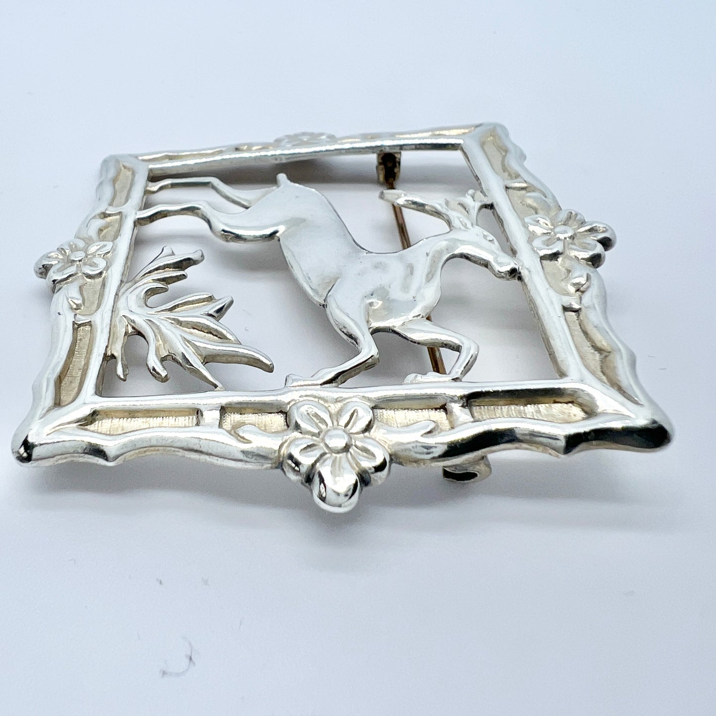 Beautiful vintage sterling silver brooch. Hallmarked for Lang Sterling, c 1940-50s.