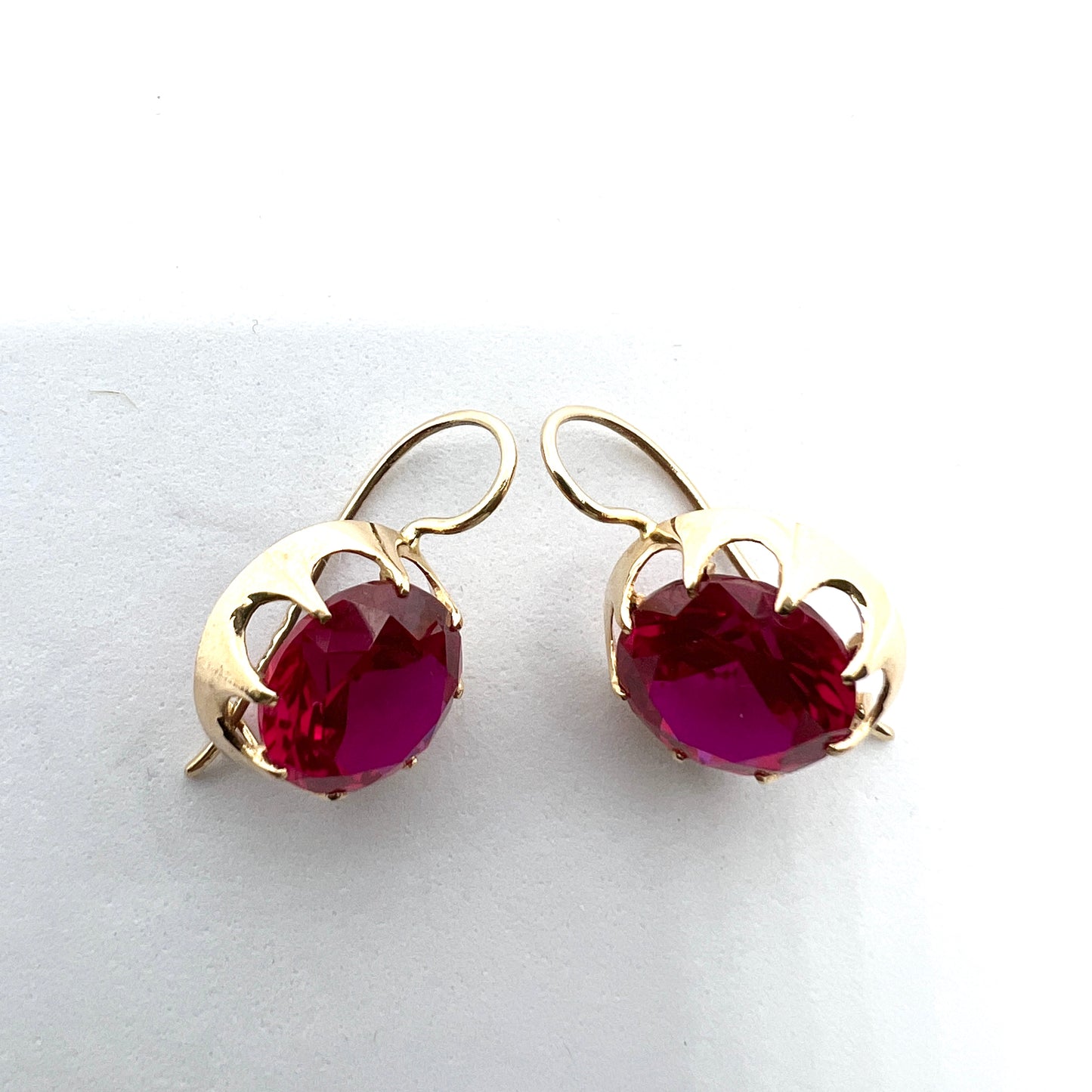 Wonderful and rare vintage 18k gold synthetic ruby earrings. Fully hallmarked for 18k gold, Malin Salonen, Sweden year 1977.
