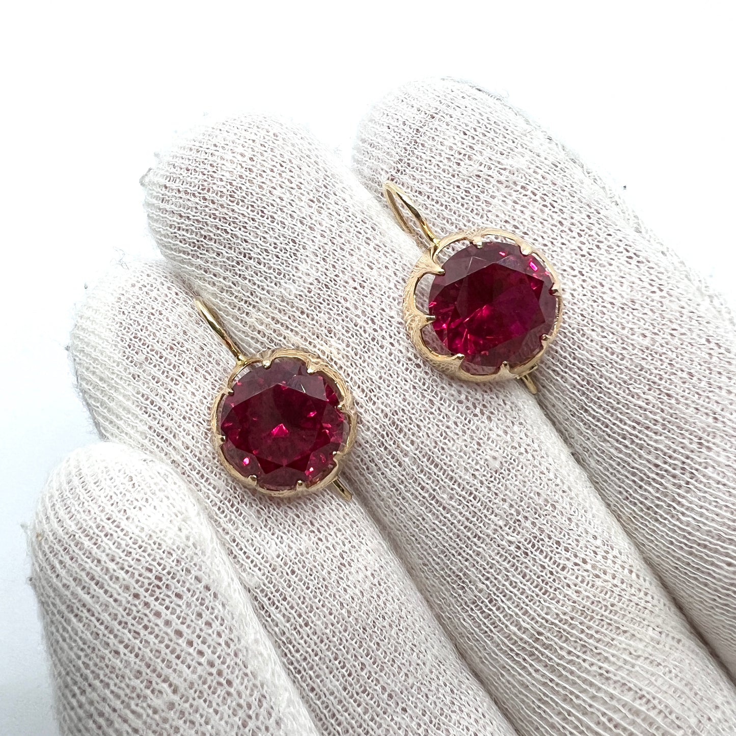 Malin Salonen, Sweden 1977. Vintage 18k Gold Synthetic Ruby Earrings.