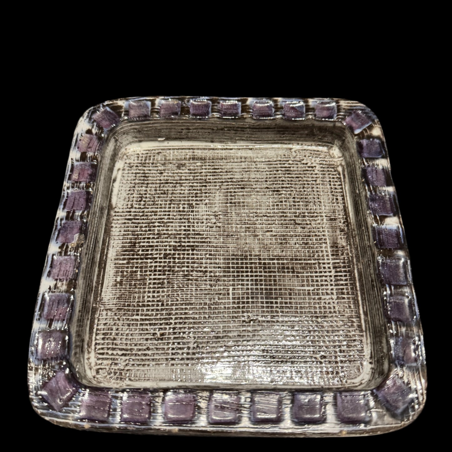 Beautiful and robust vintage ceramic tray with violet glaze. Marked for Mari Simmulson for Upsala-Ekeby, Sweden.