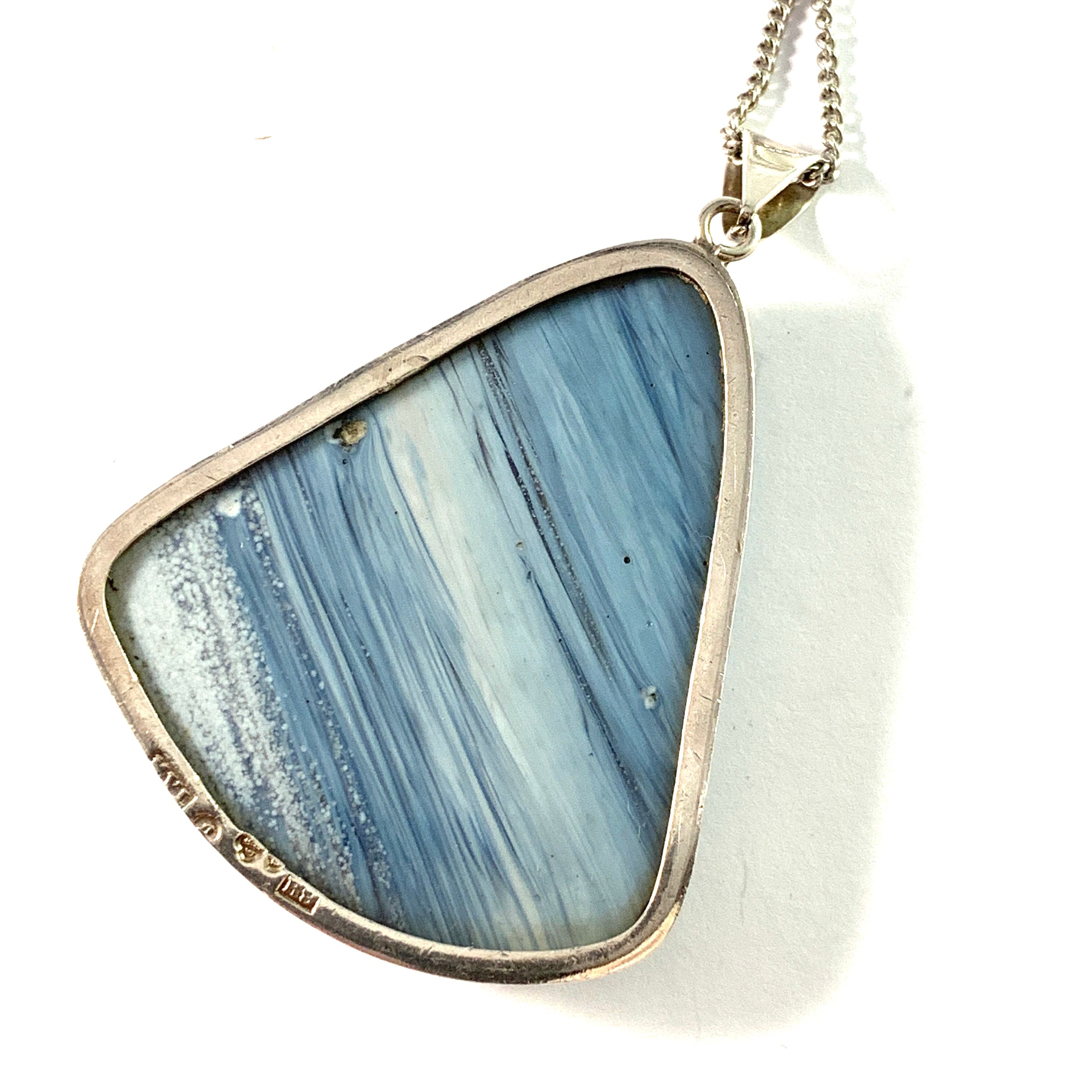 Märta Lindgren, Sweden 1967. Vintage Sterling Silver Bergslagen Stone Pendant Necklace.