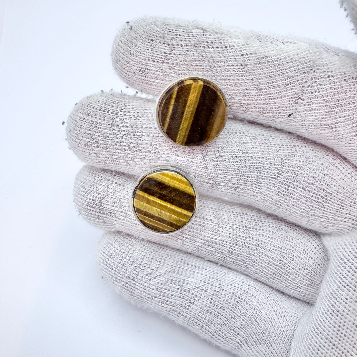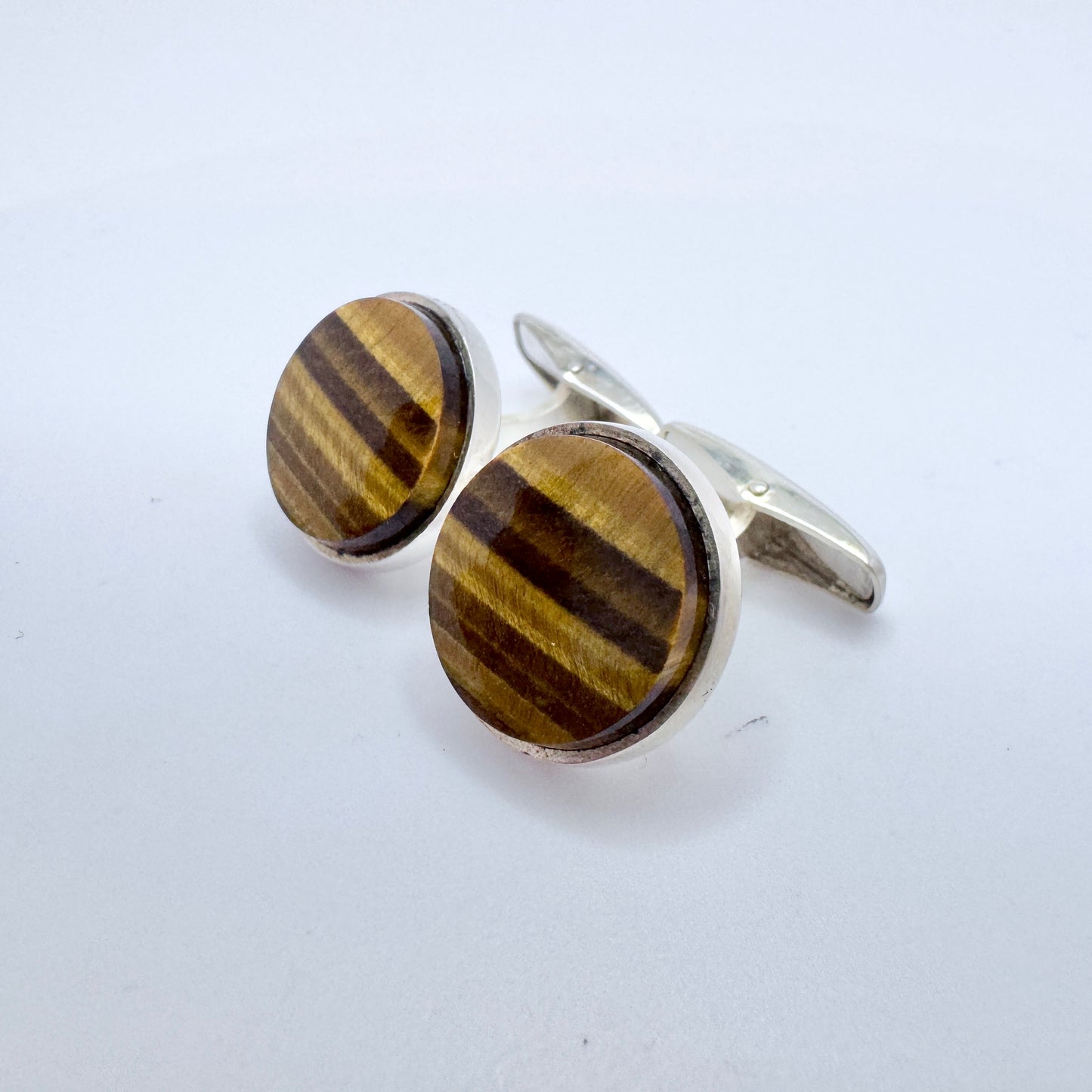 Martti Viikinniemi, Finland 1965. Vintage Solid Silver Tiger's Eye Cufflinks.