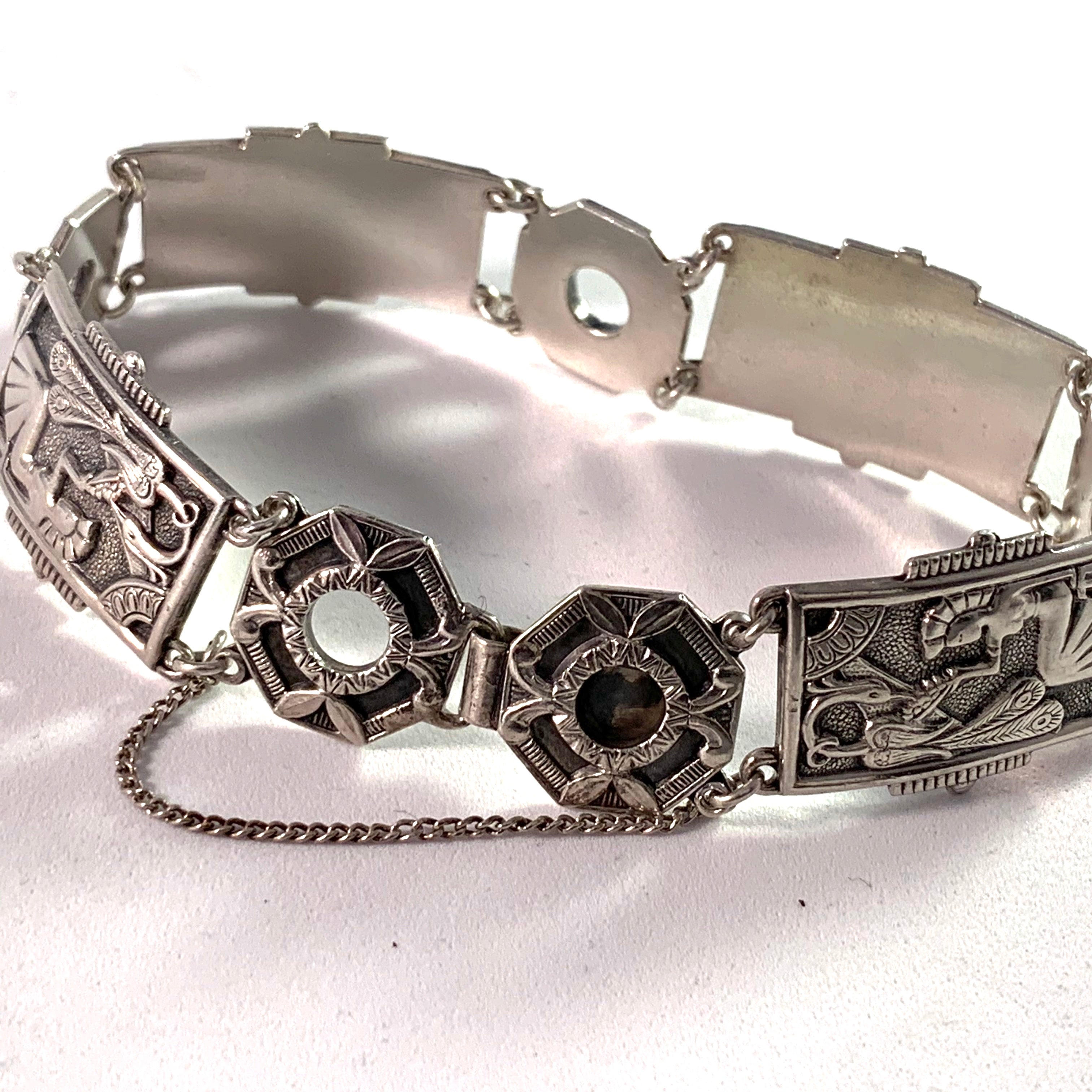 Matsilver, Sweden 1947 Mid Century Egyptian Revival Silver Bracelet.