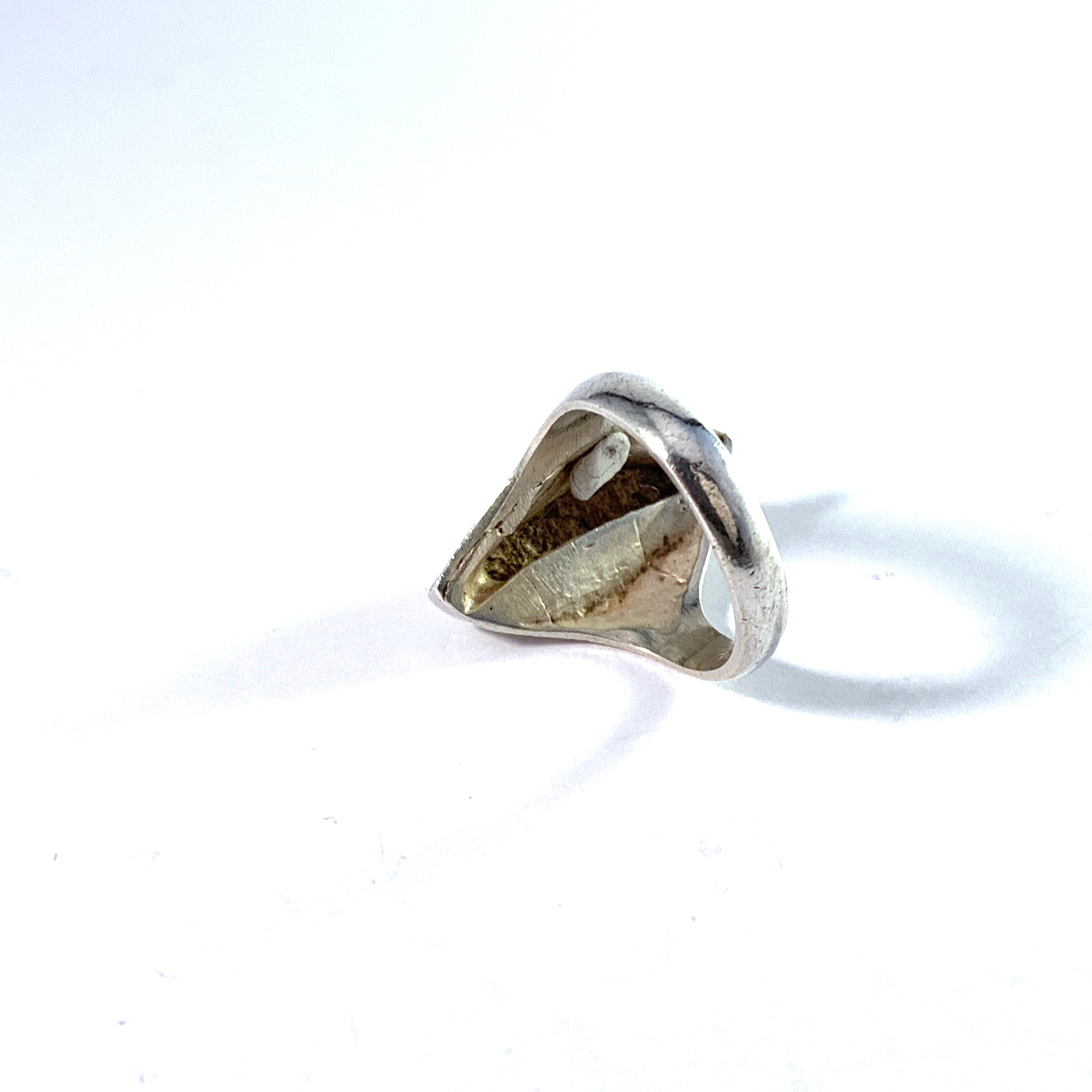 Wonderful and sought after vintage modernist sterling silver ring. Hallmarked and signed for renowned Matti Hyvärinen Finland 1970s.