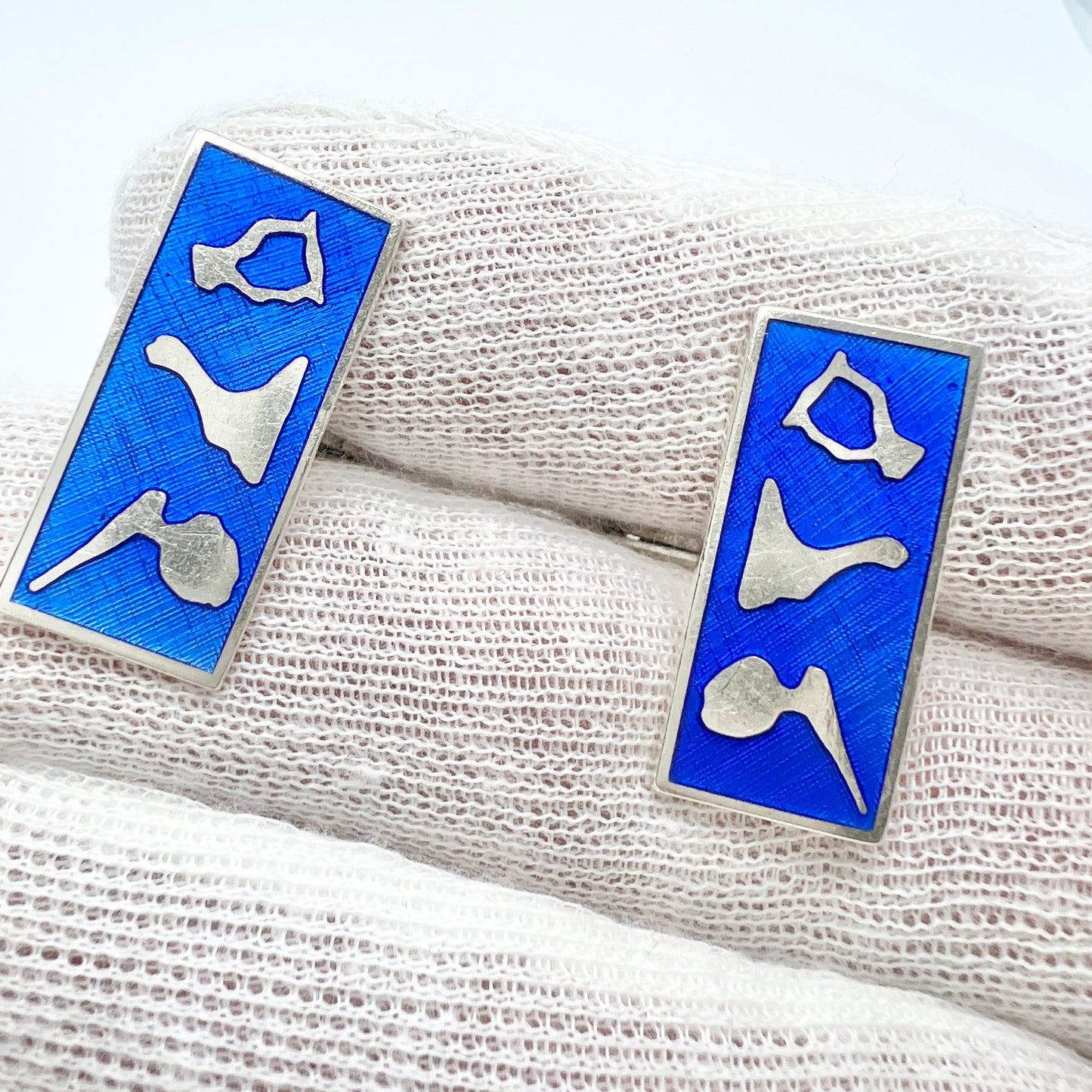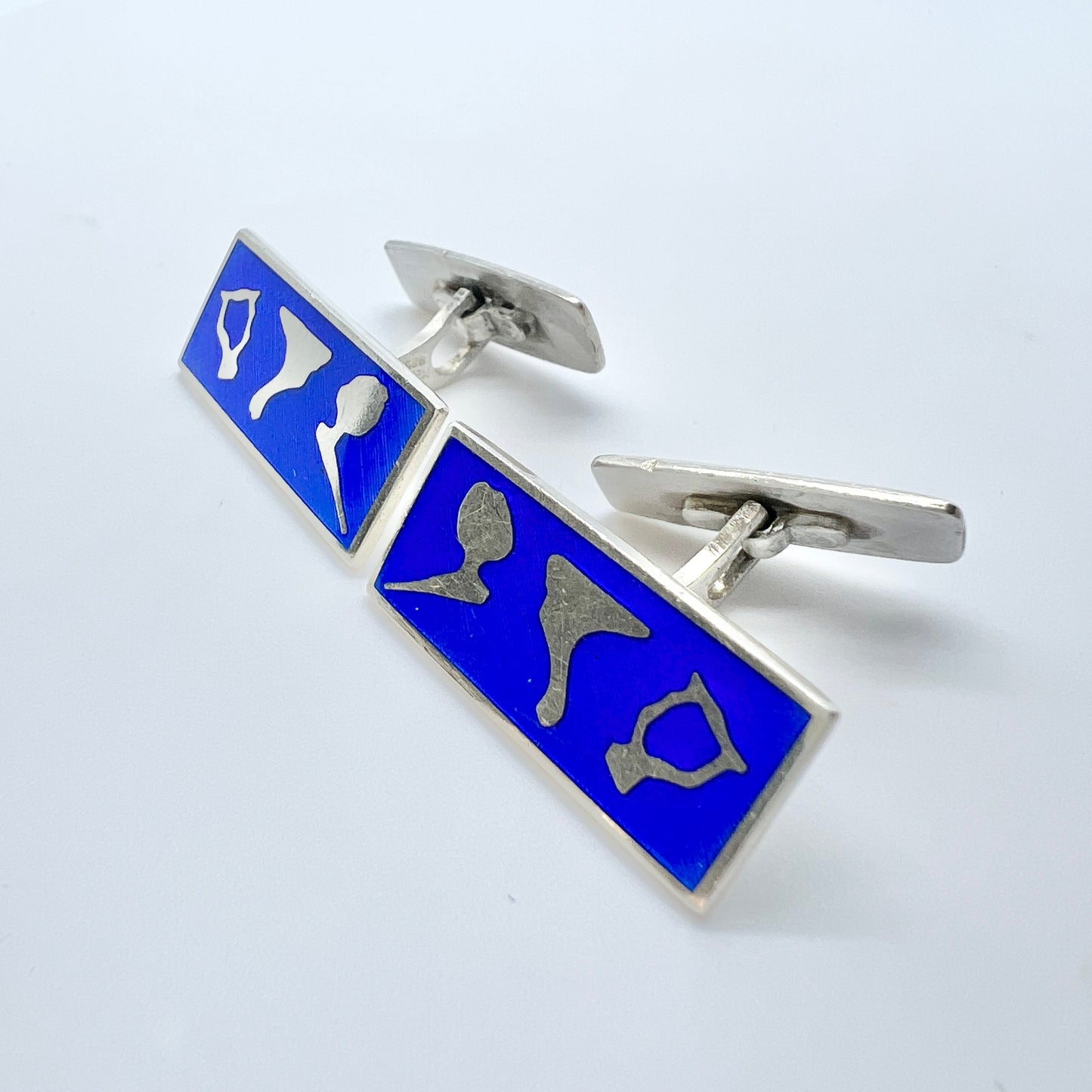 Beautiful vintage sterling silver blue enamel pair of cufflinks. Marked for maker MEKA, Denmark c year 1950-60s
