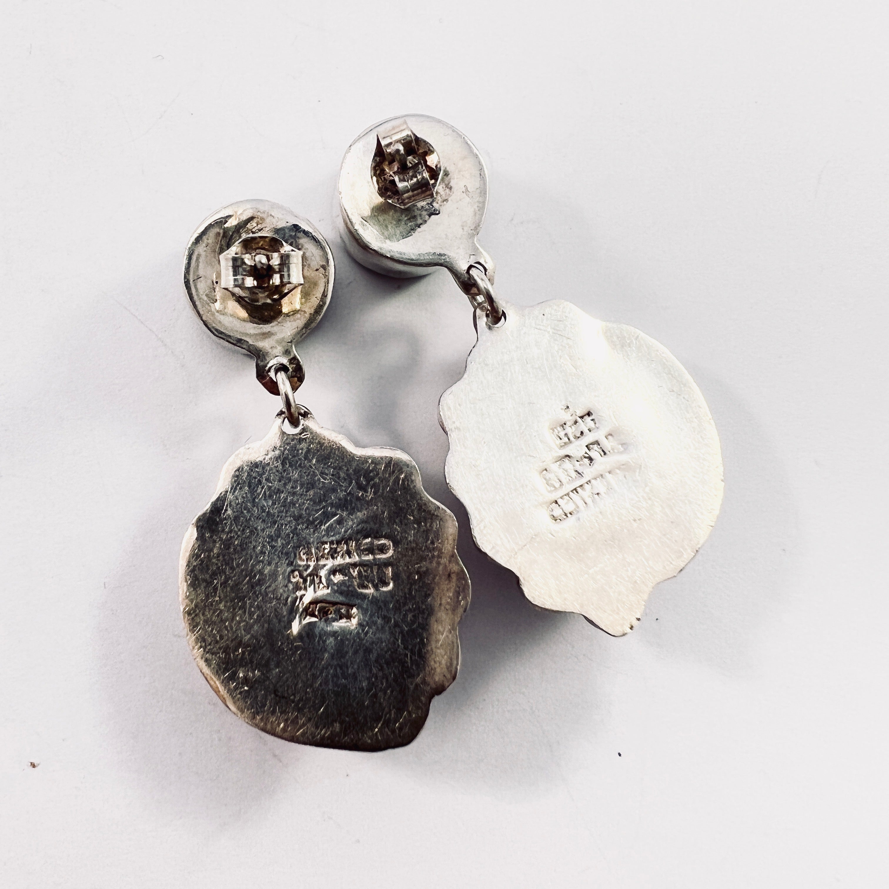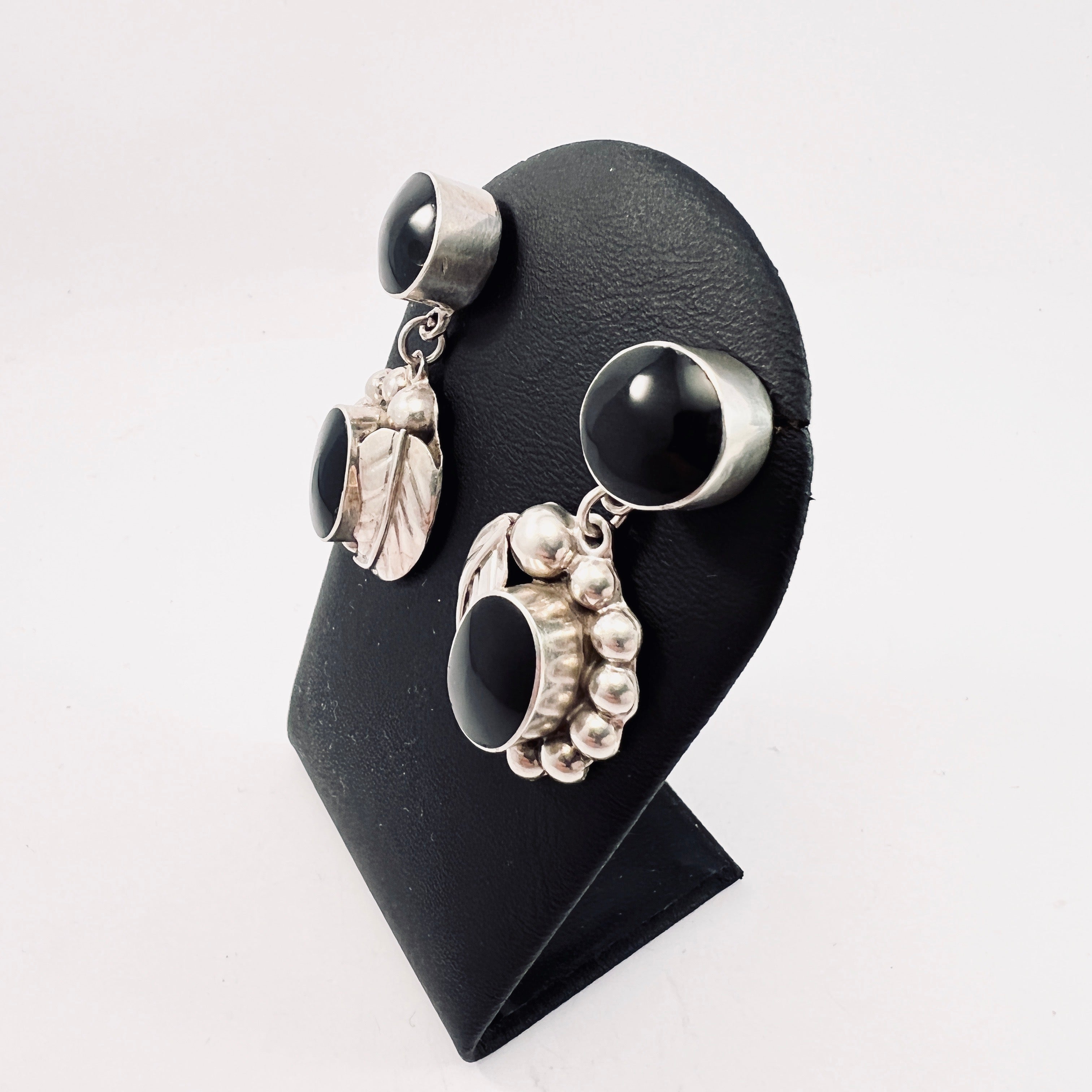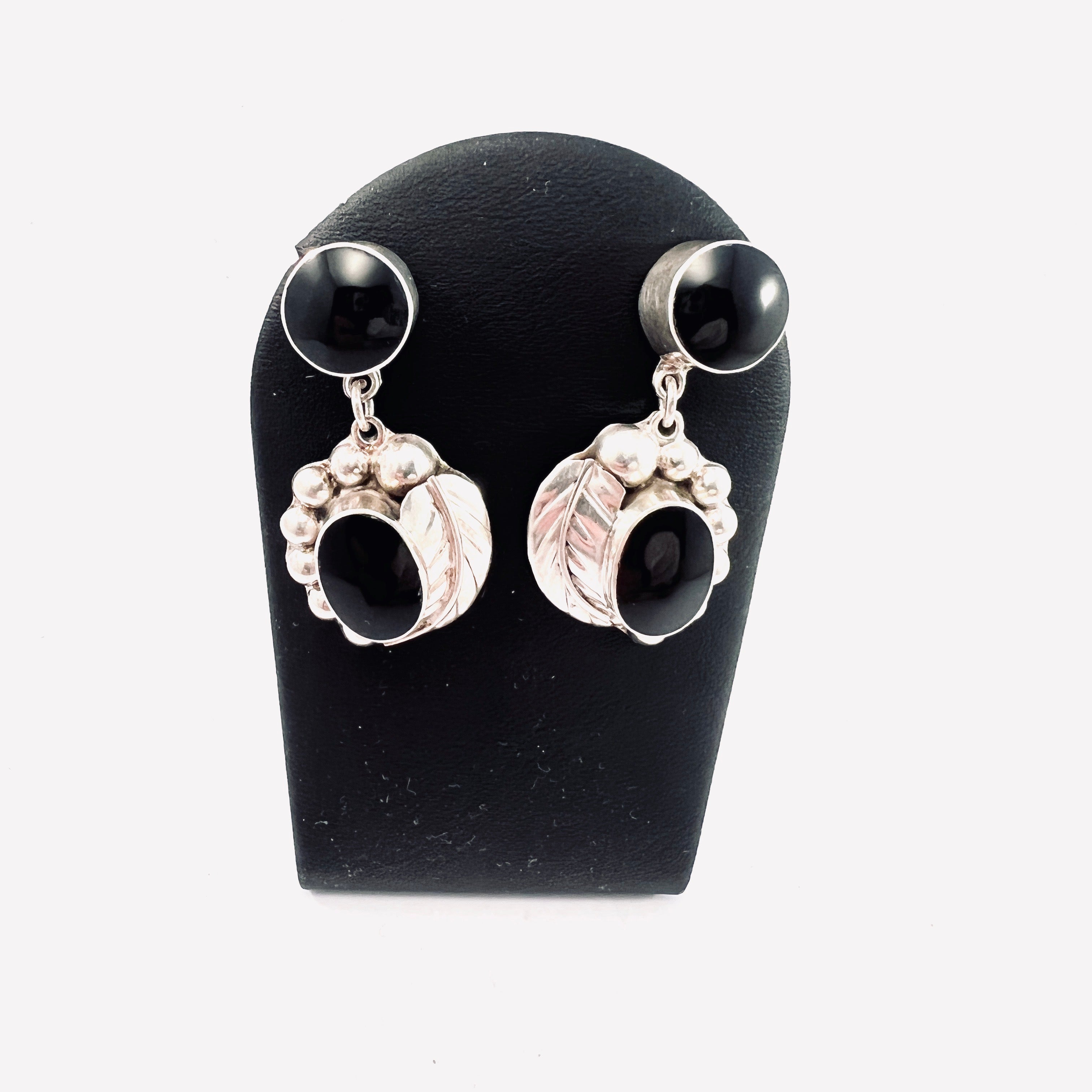 Mexico, Large Vintage Sterling Silver Onyx Earrings.