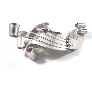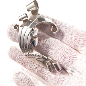 Mexico pre 1948. Large Vintage Sterling Silver Brooch.