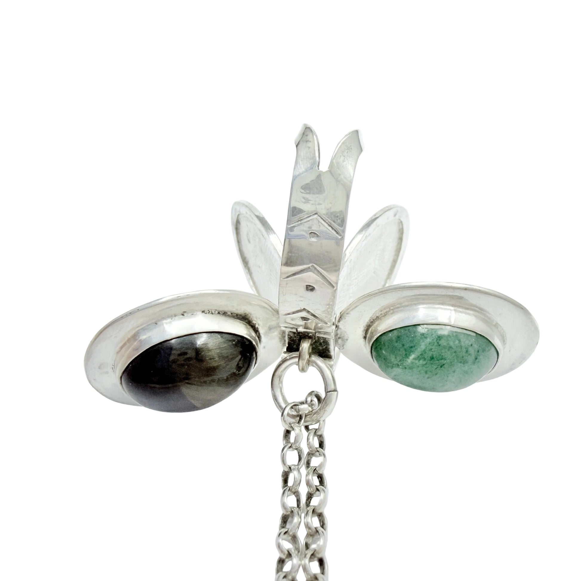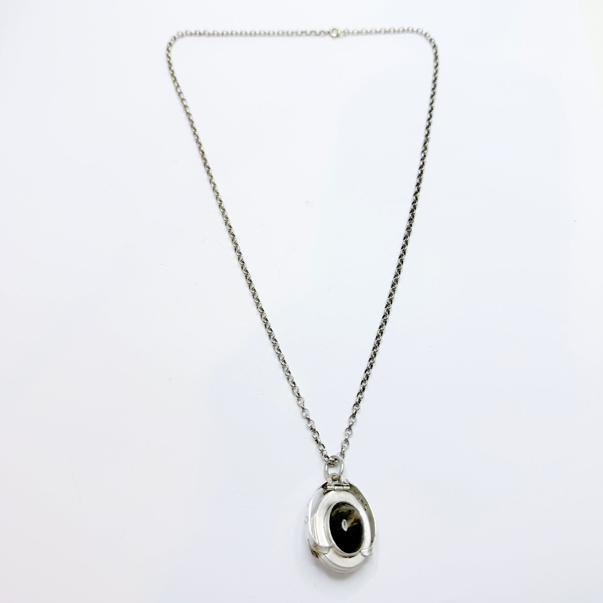 Wonderful and rare vintage sterling silver hardstone locket pendant. Hallmarked for Mexico ca 1970s. Makers mark JC.