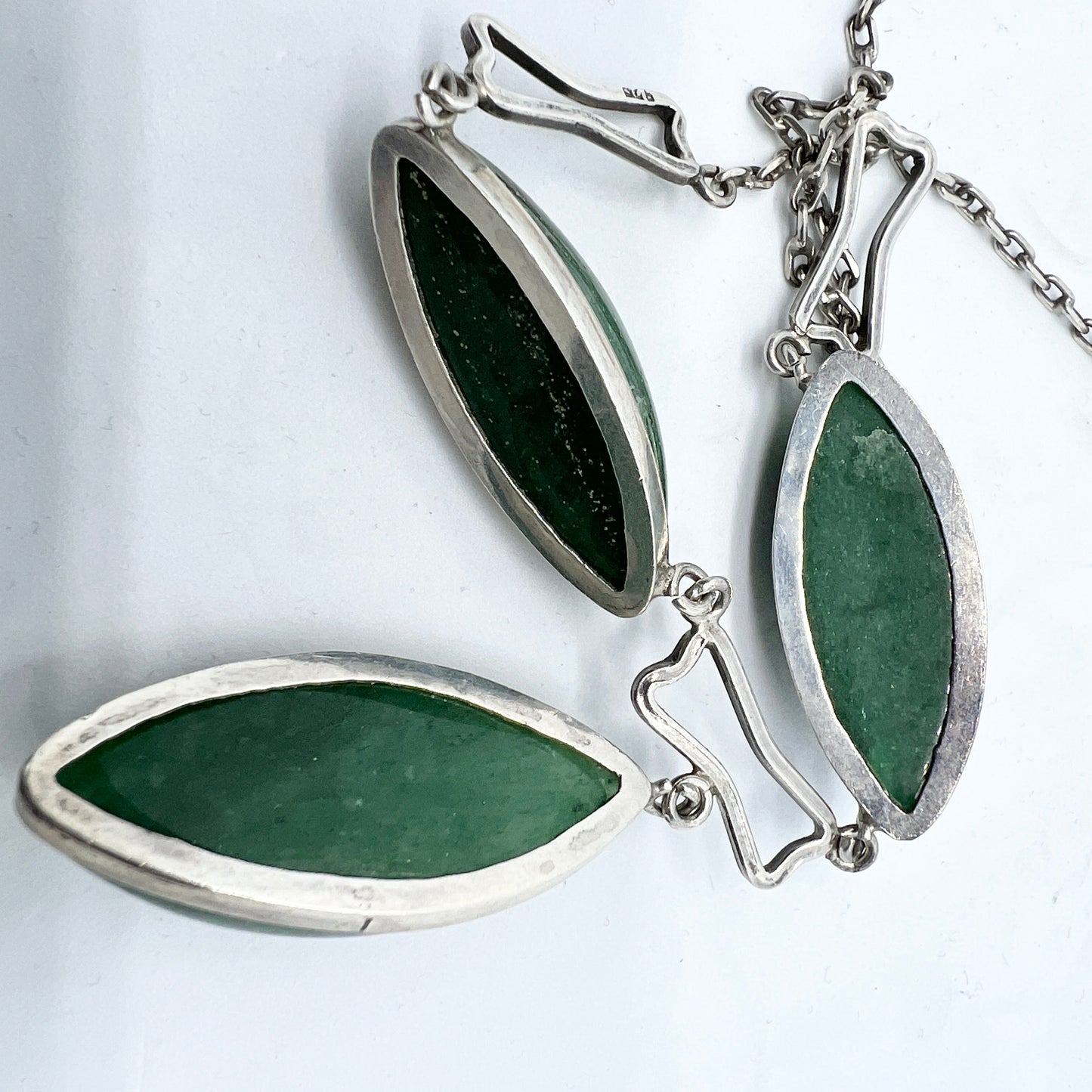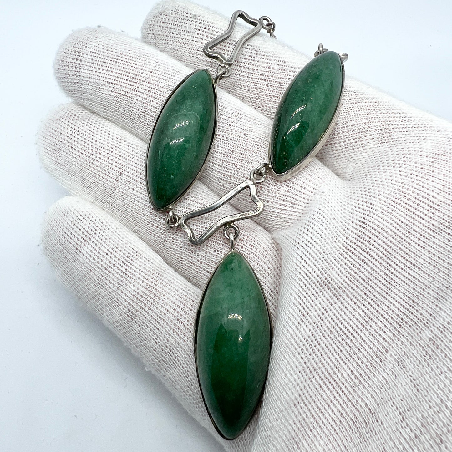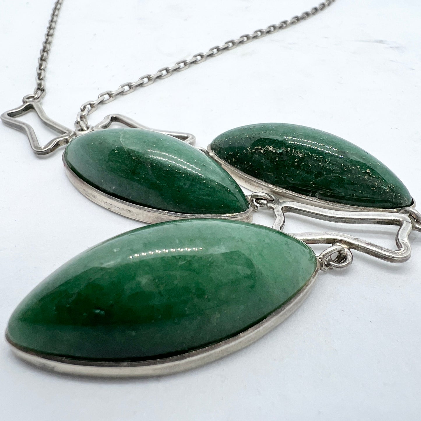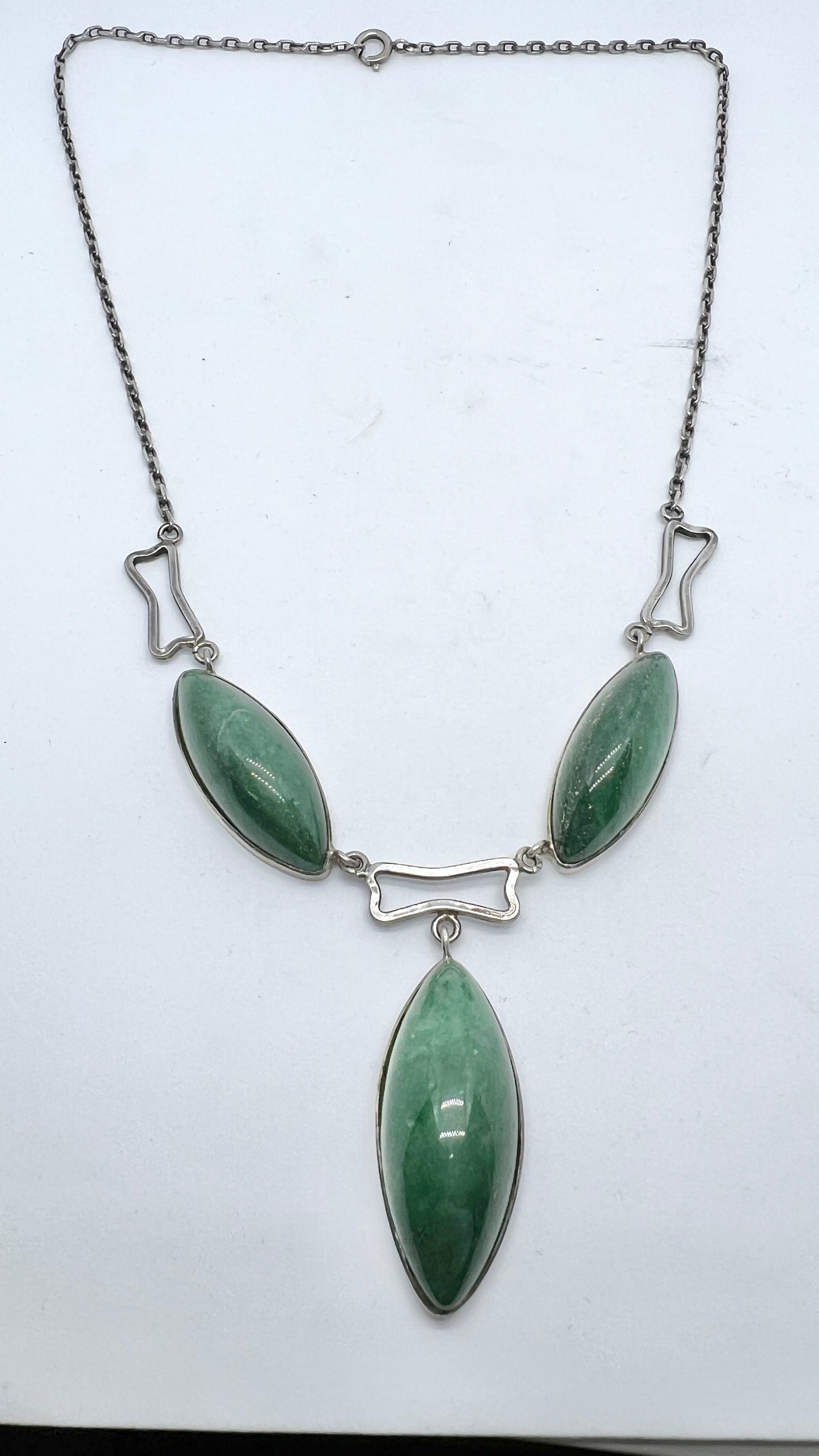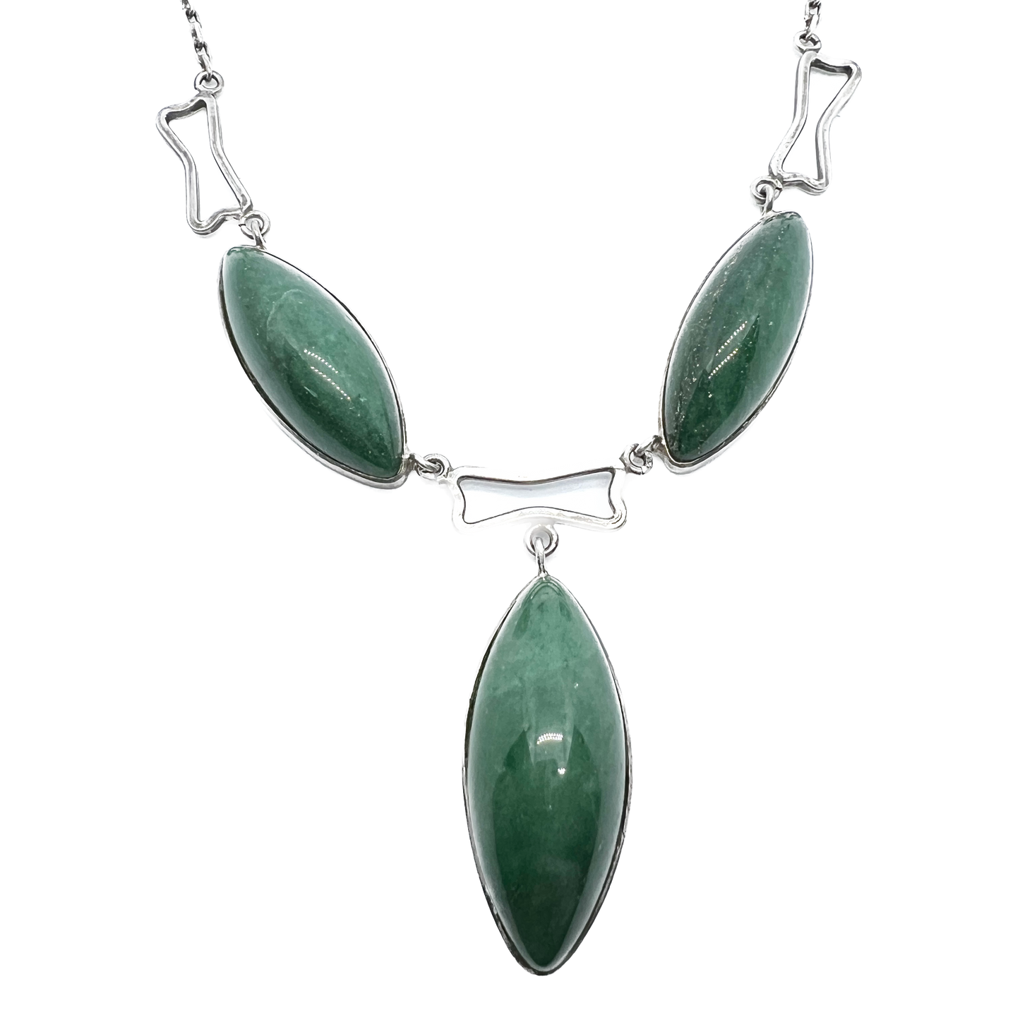 Mexico. Vintage Sterling Silver Nephrite Necklace.