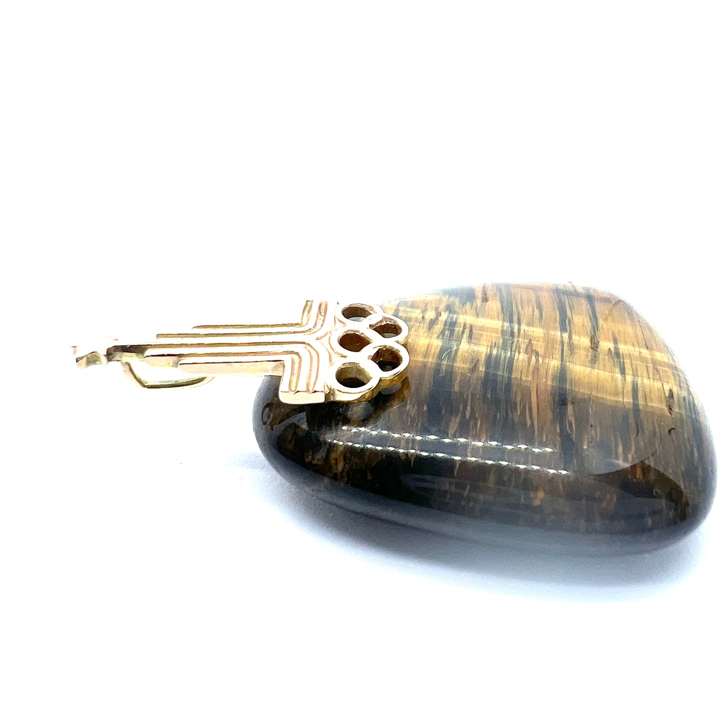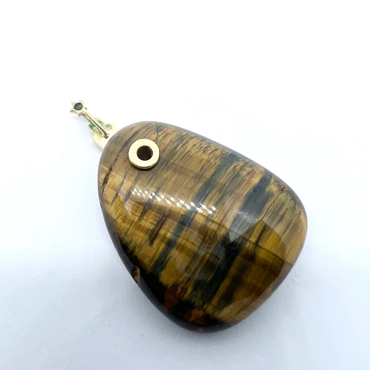 Moscow 1980 Summer Olympics 14k Gold Tiger's Eye Pendant.