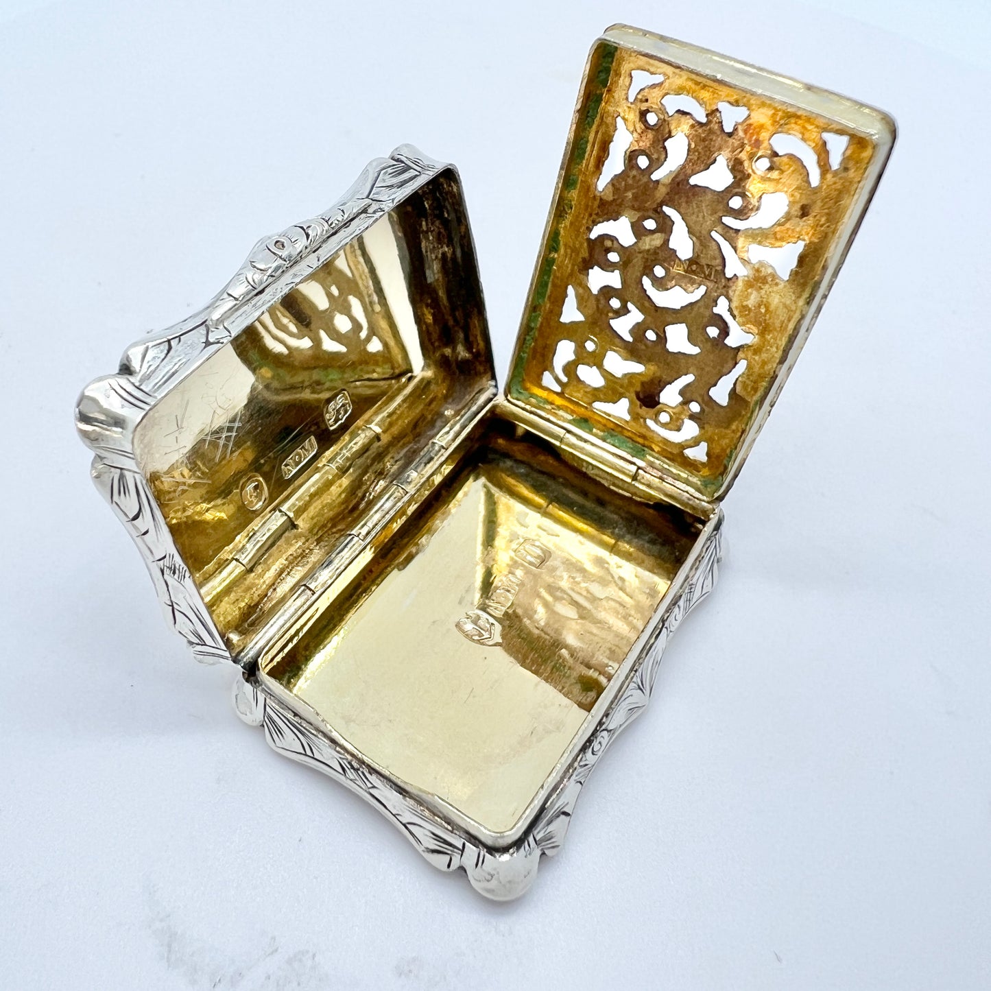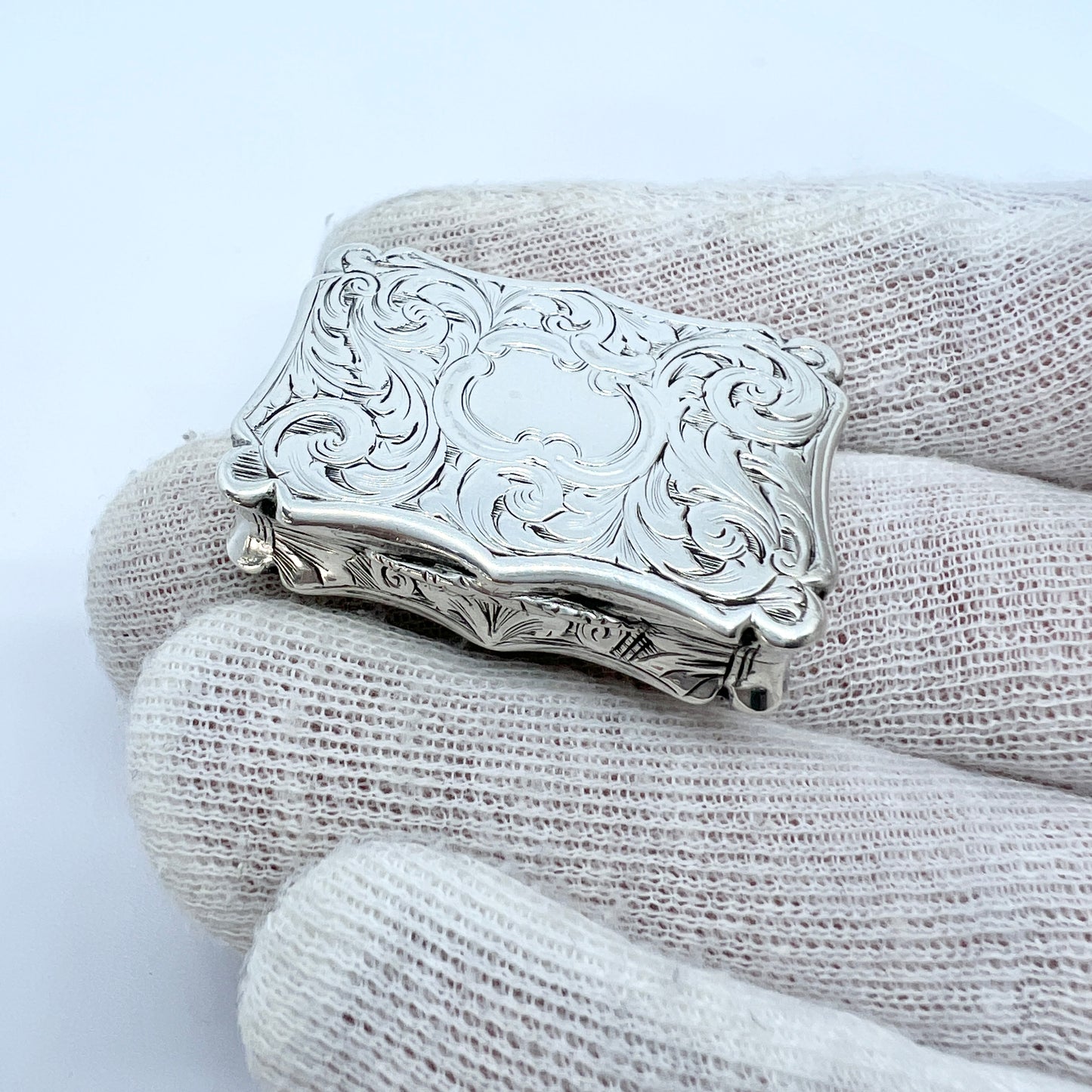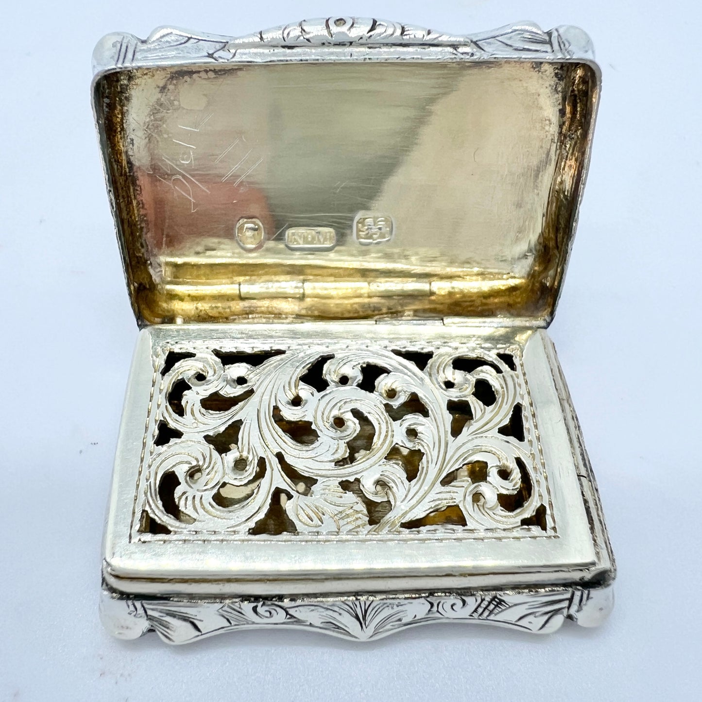 Nathaniel Mills Birmingham 1852. Antique Sterling Silver Vinaigrette Box.