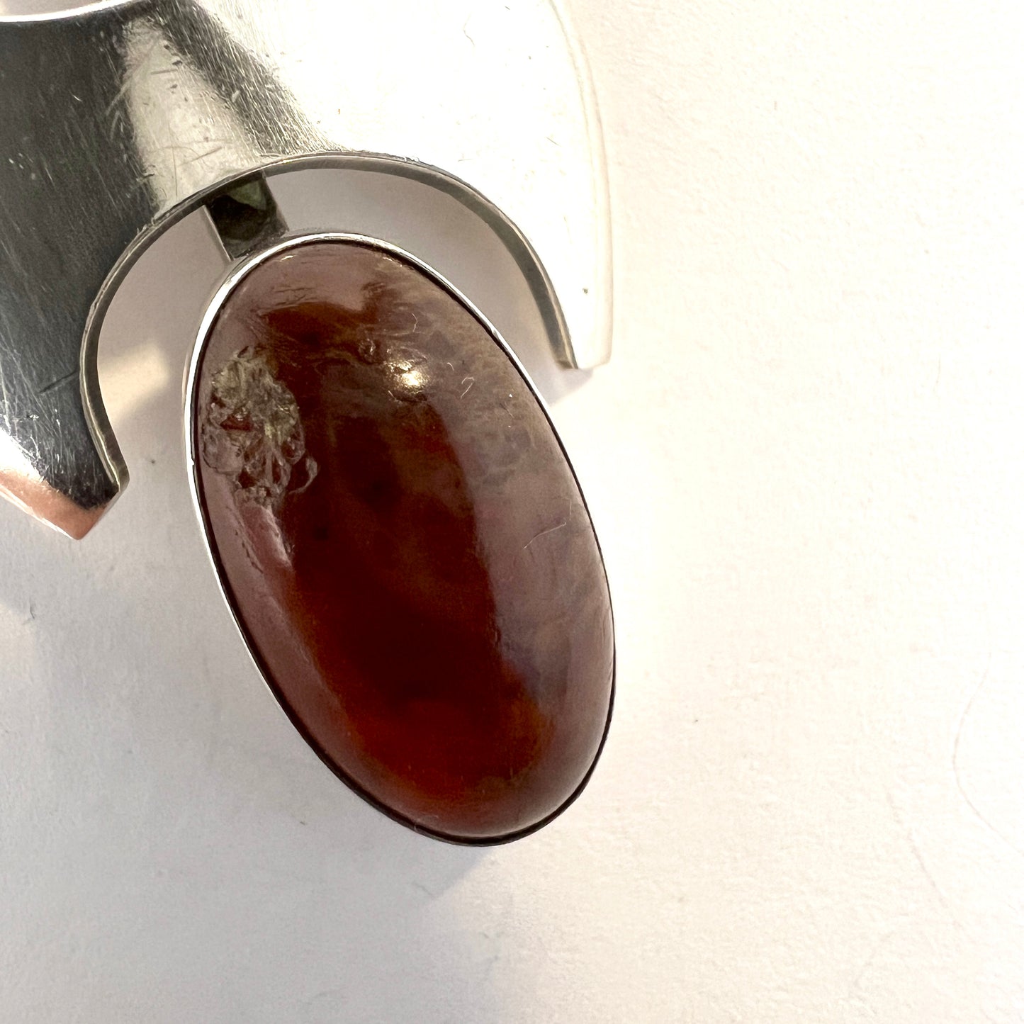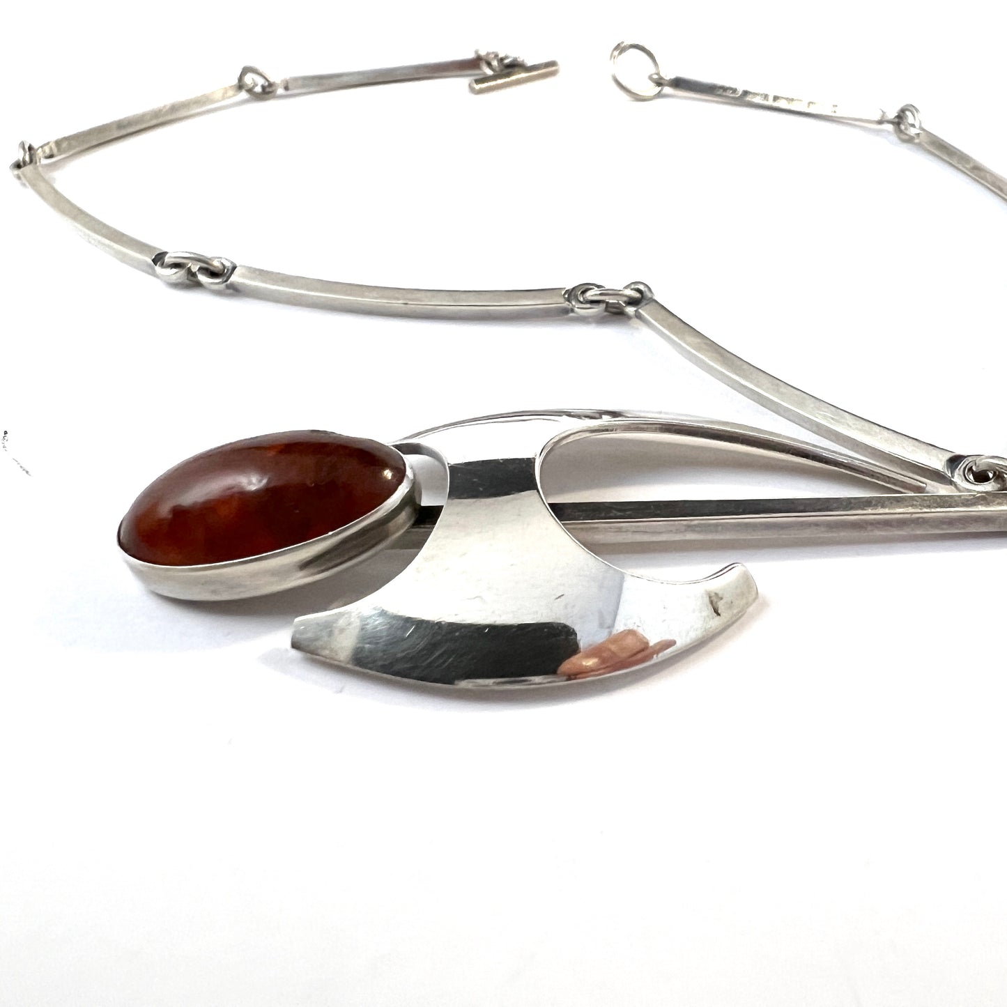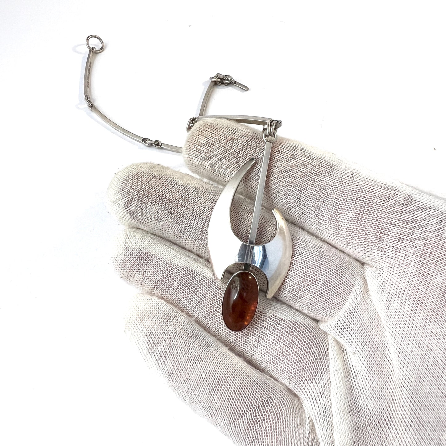 Niels Erik From, Denmark c 1960s. Vintage Sterling Silver Amber Pendant Necklace.