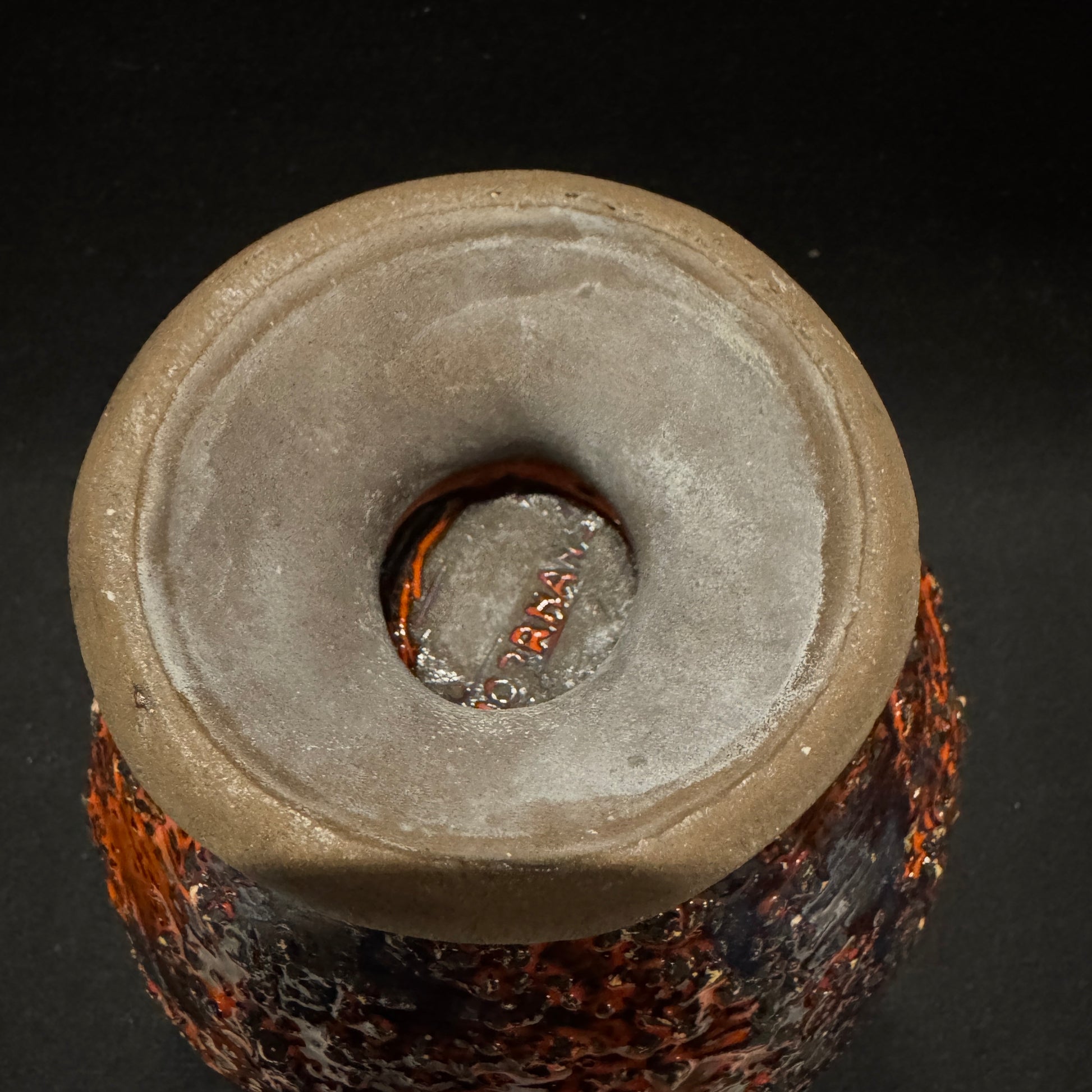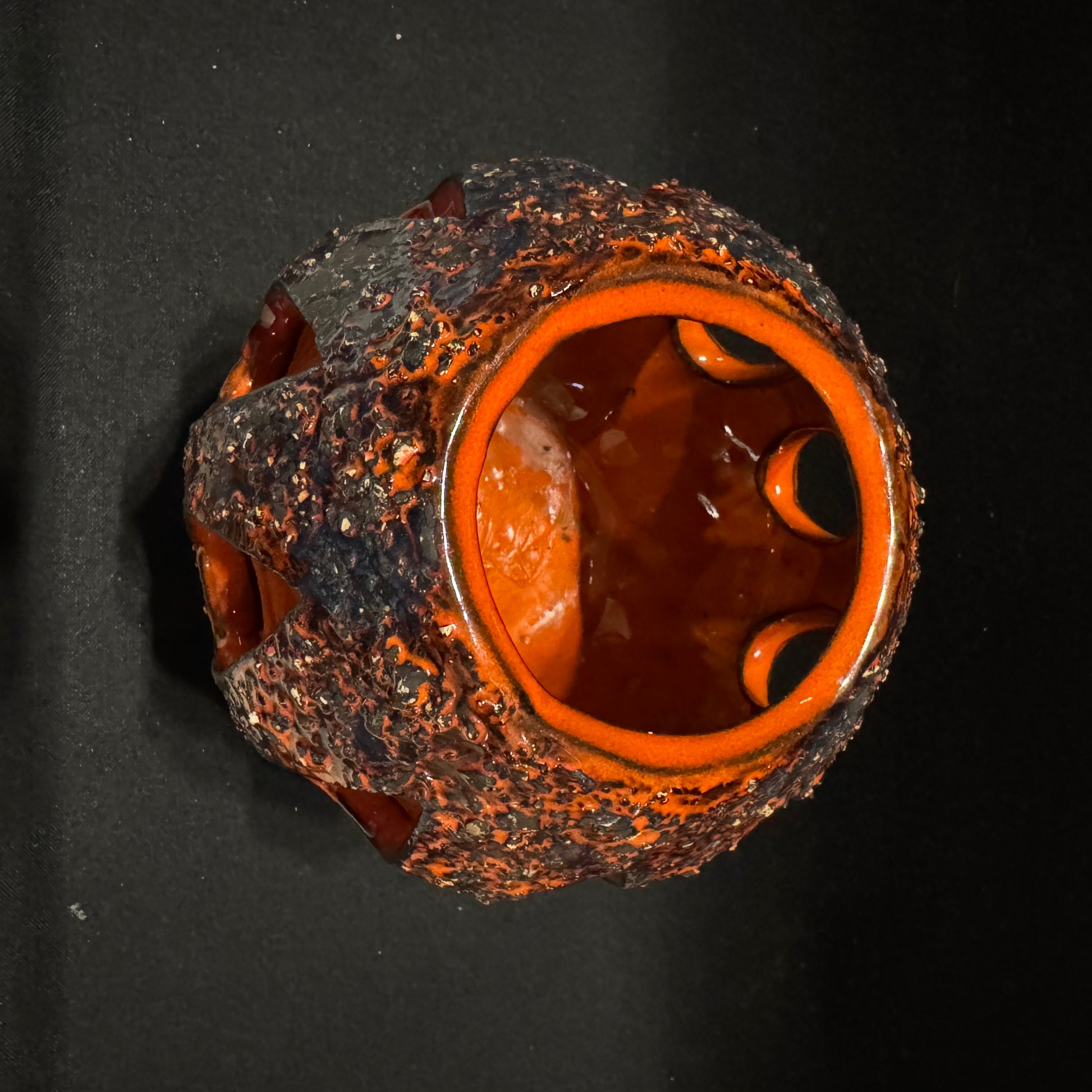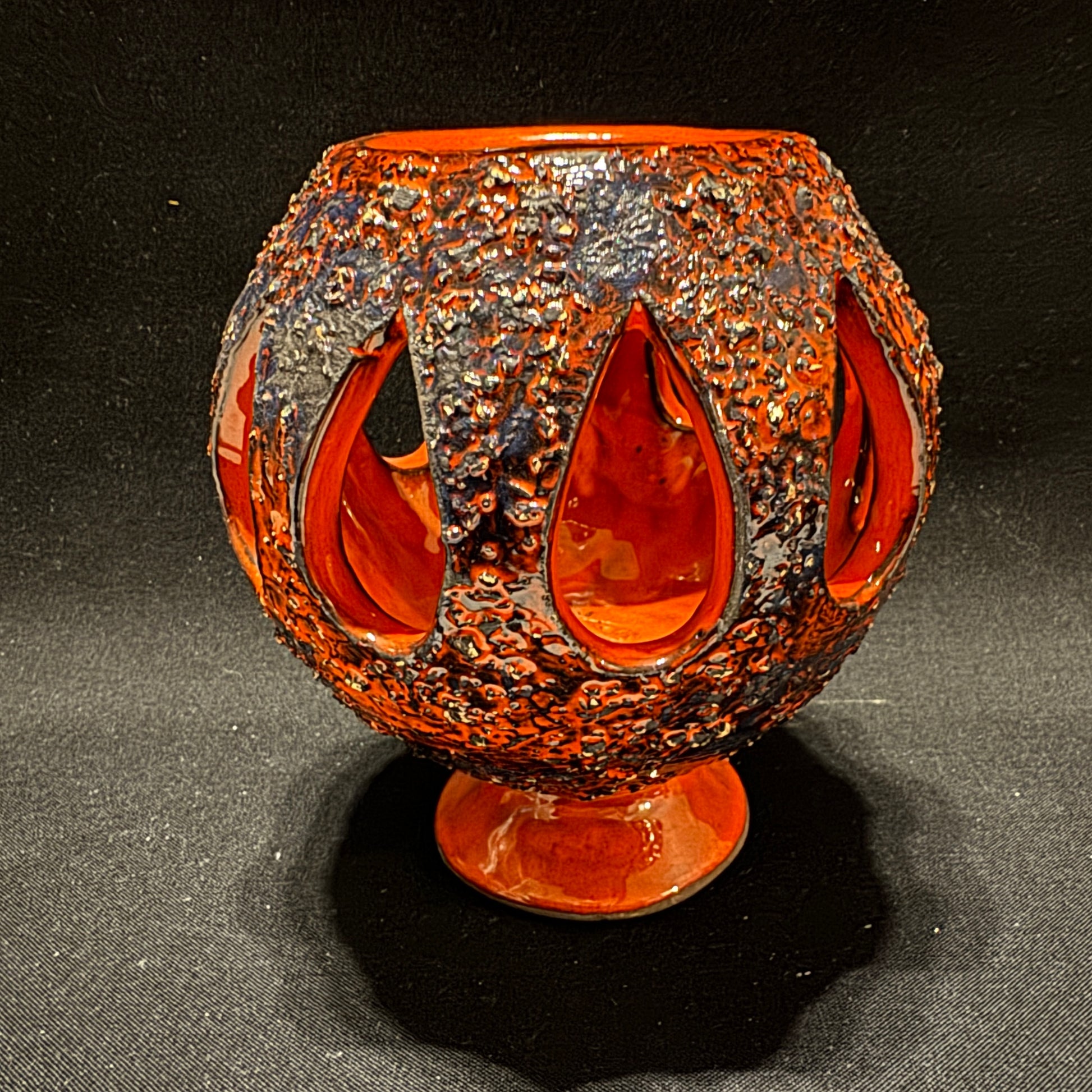 Bold vintage ceramic candle lantern / candle holder. Intense orange/red.