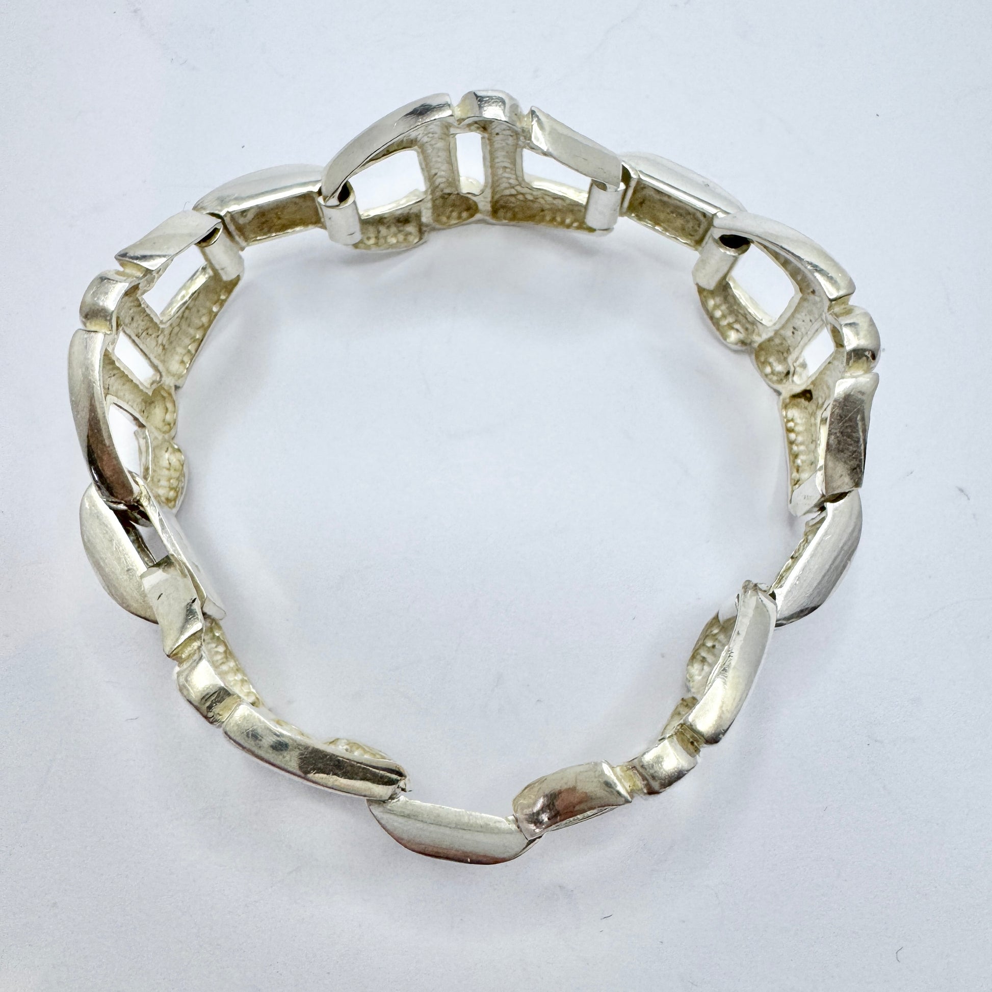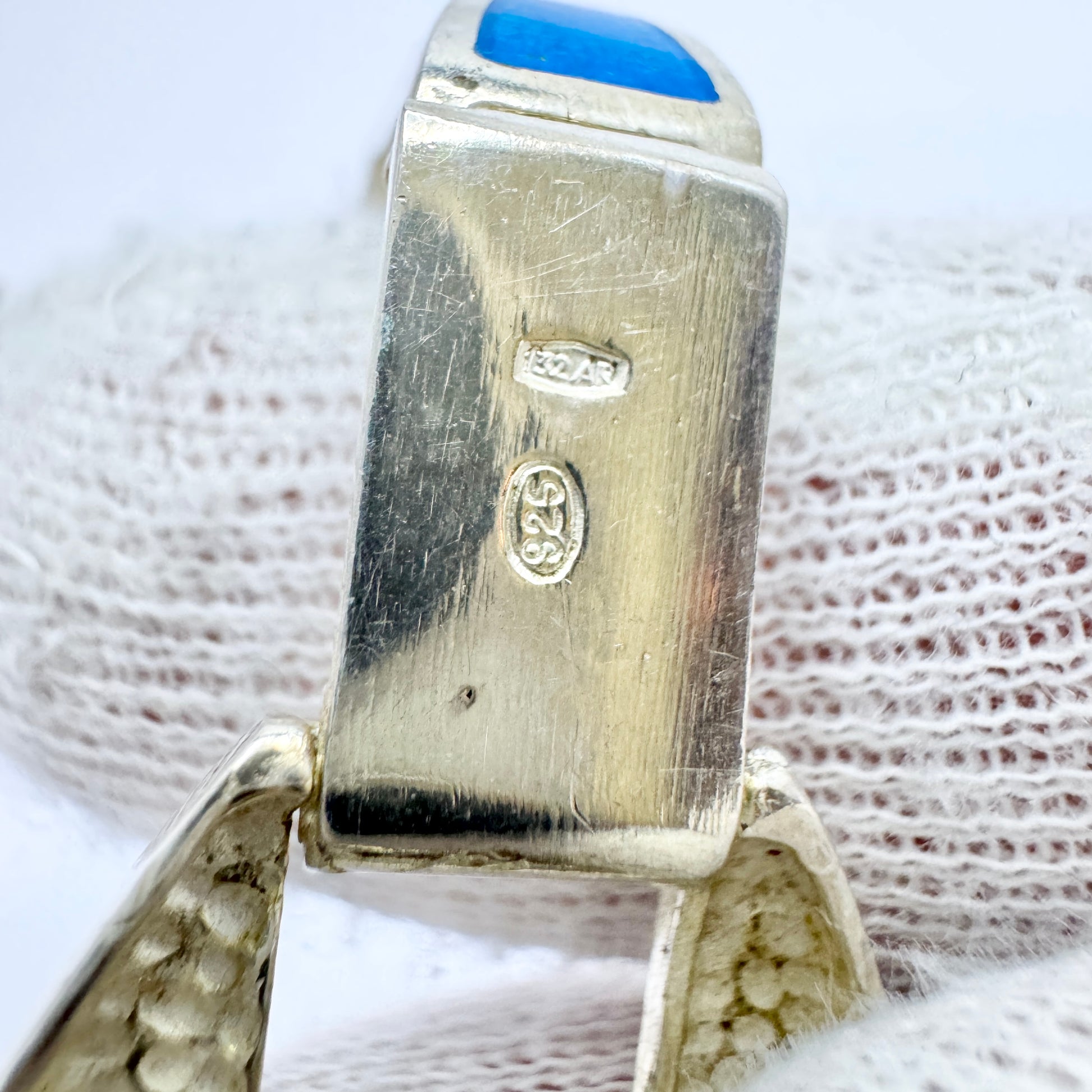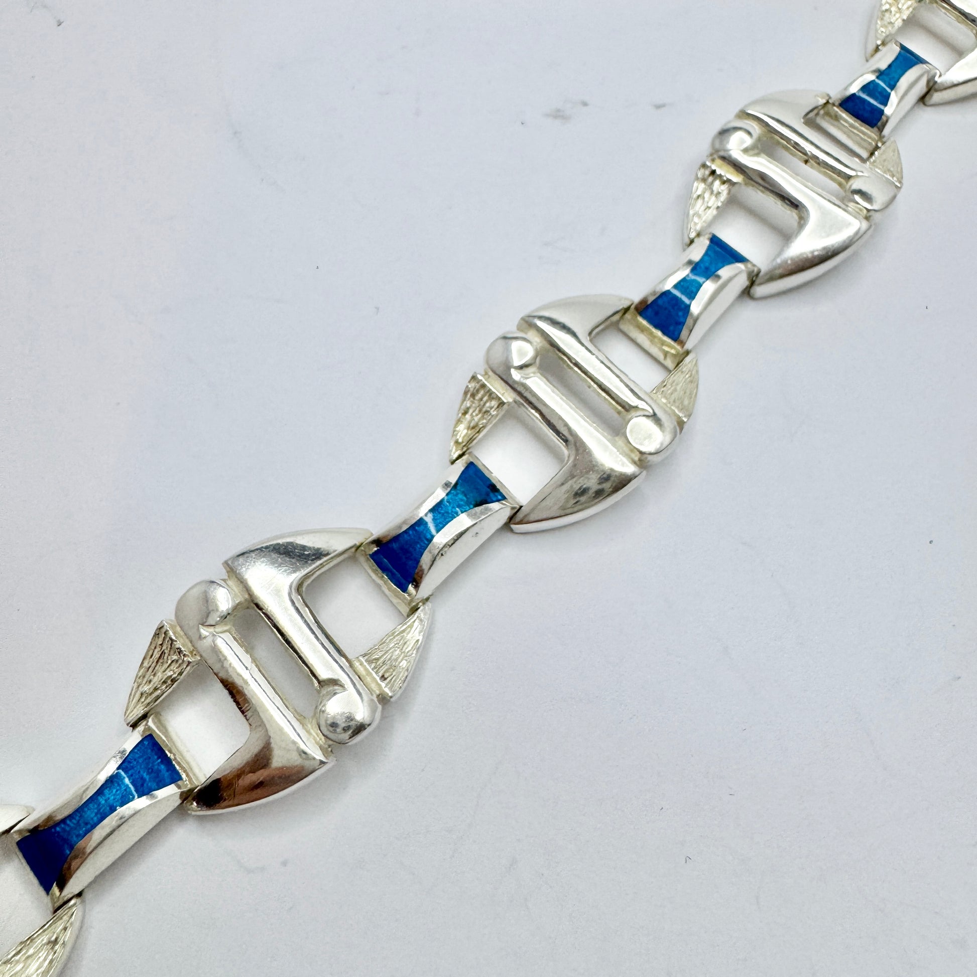 Wonderful vintage sterling silver blue enamel bracelet. Hallmarked for OREFICERIA MEDICEA DI UREI ROSANNA, Italy c 1980s.
