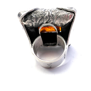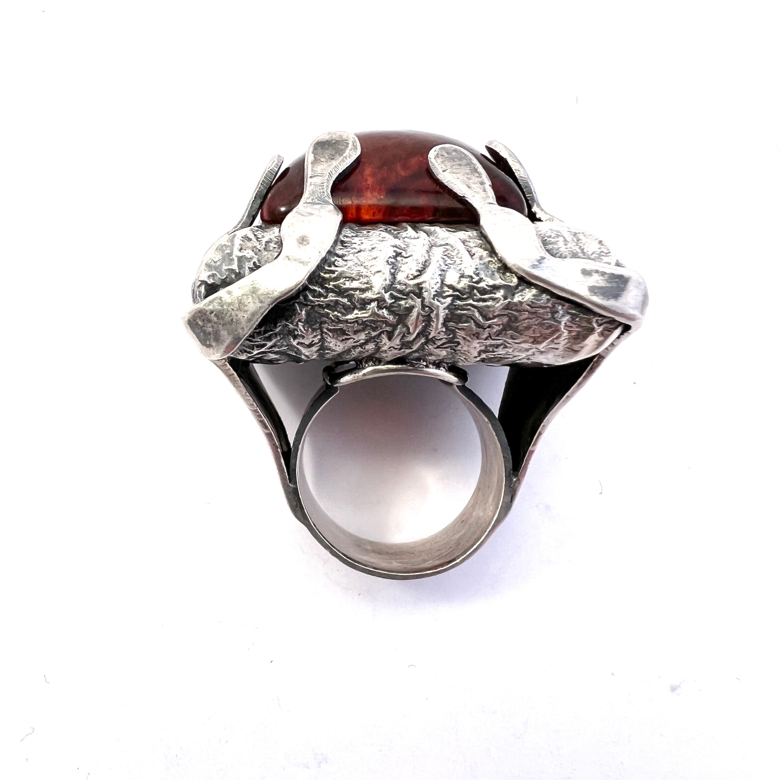 ORNO, Poland 1960s. Vintage Gigantic Solid Silver Baltic Amber Ring.