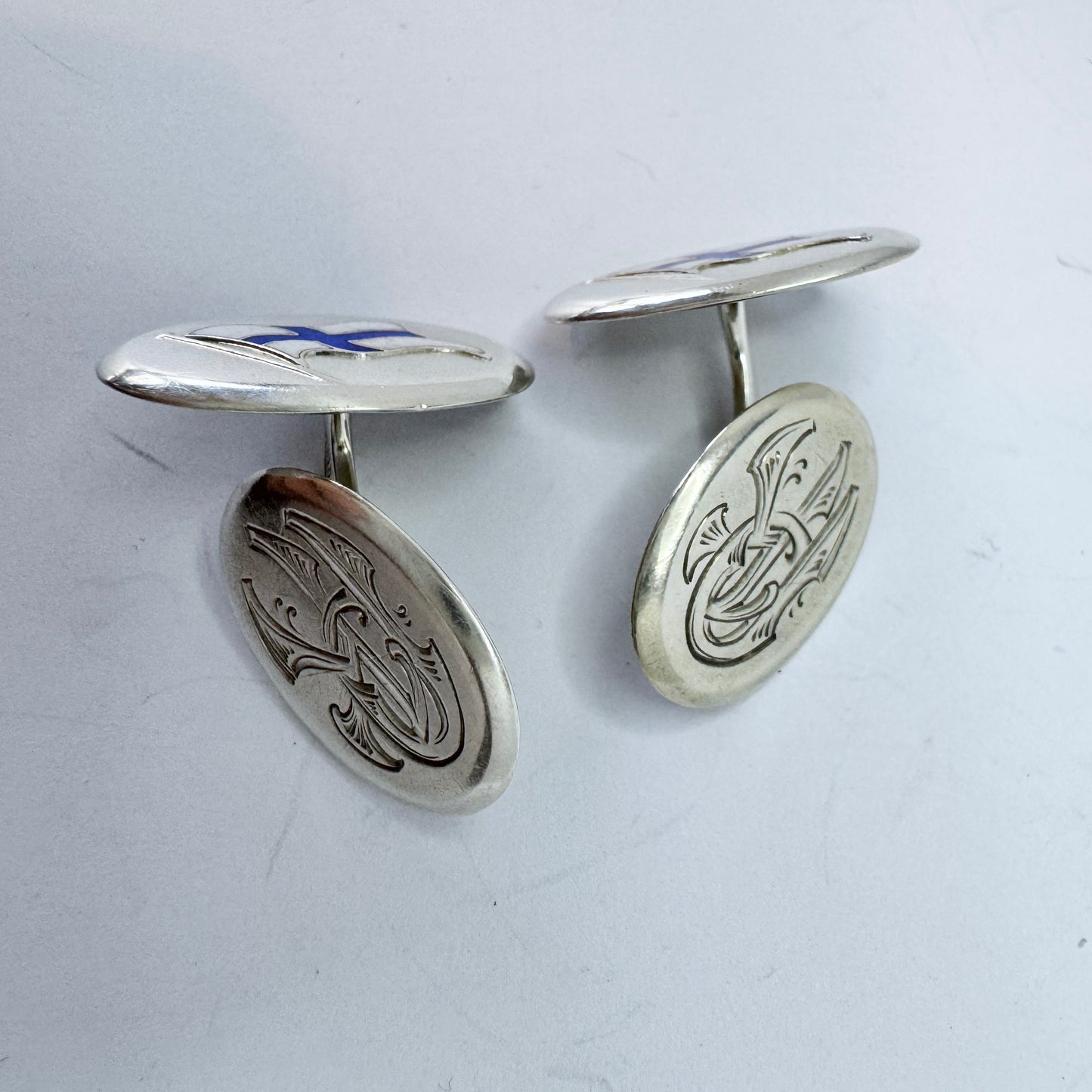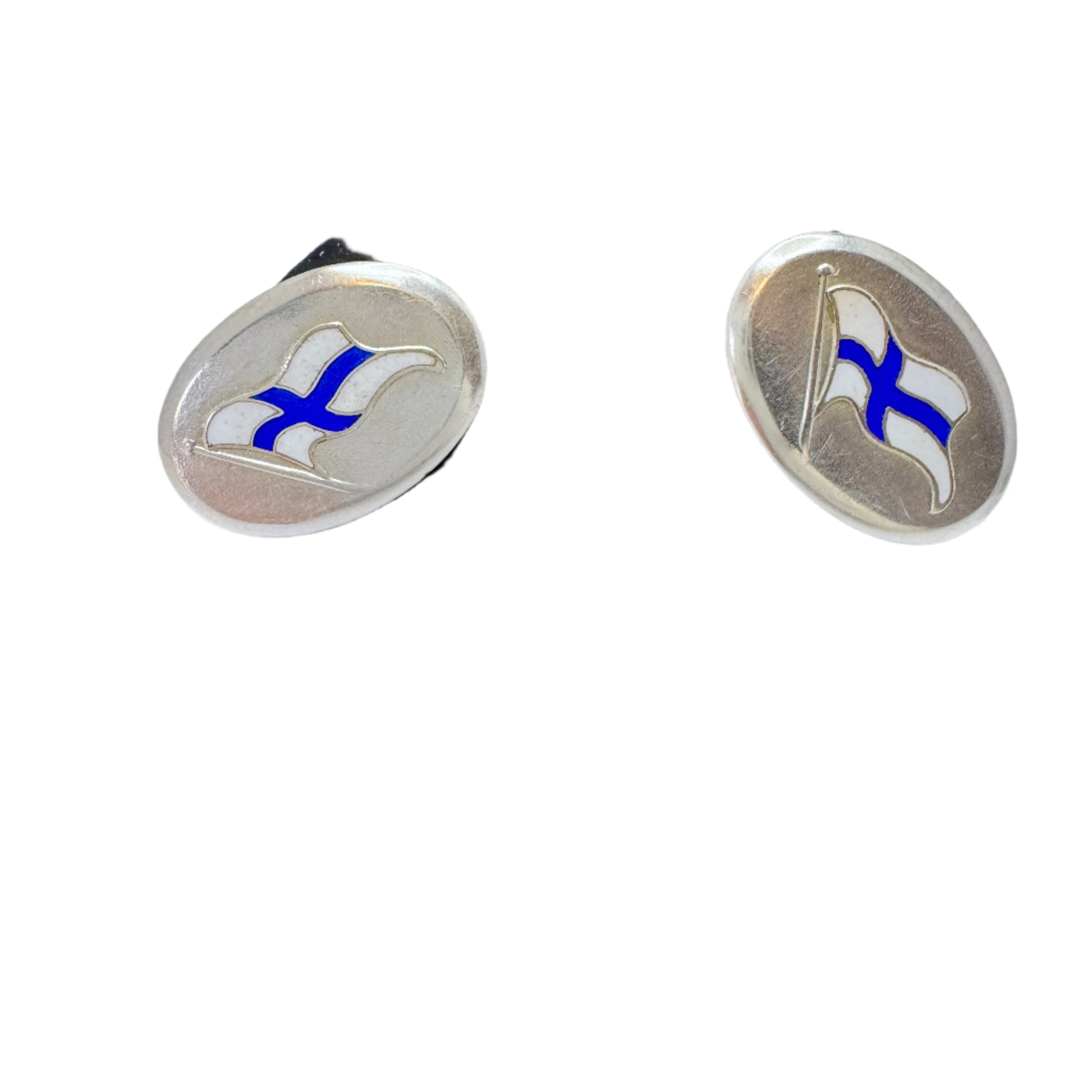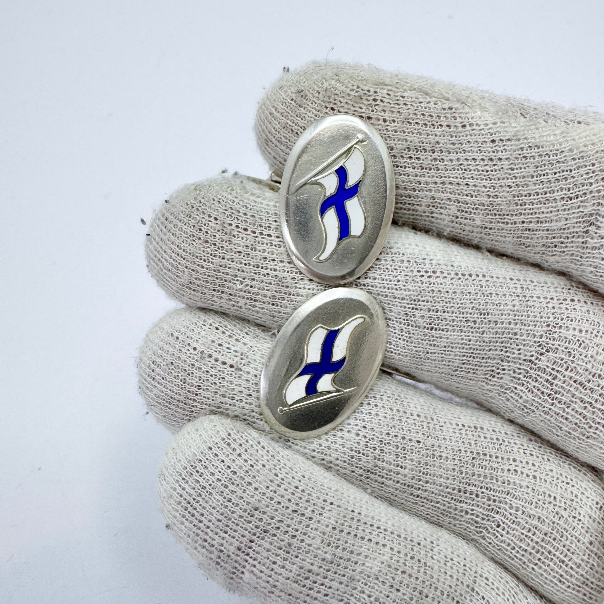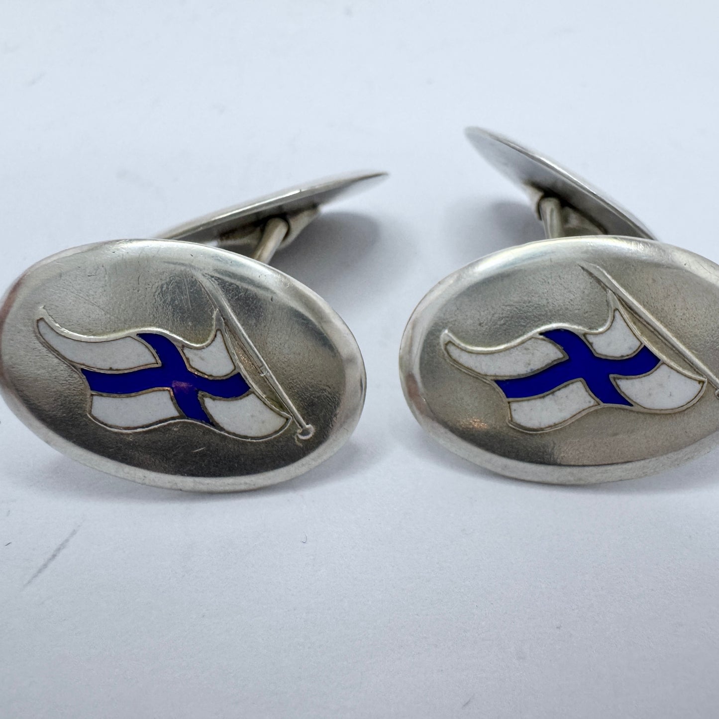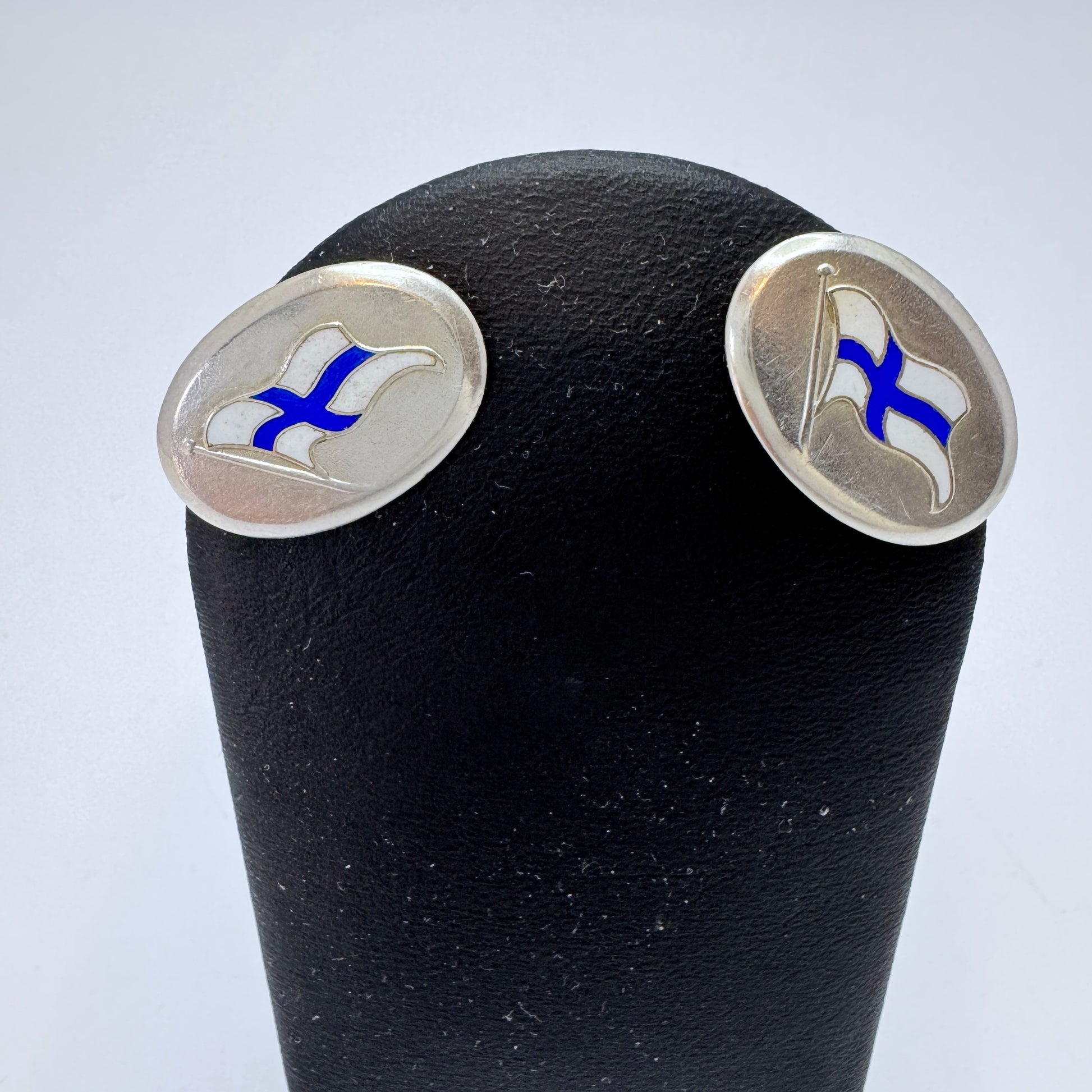 Osuusliike Kultasellä, Finland pre 1937. Vintage Solid Silver Enamel Finnish Flag Cufflinks.