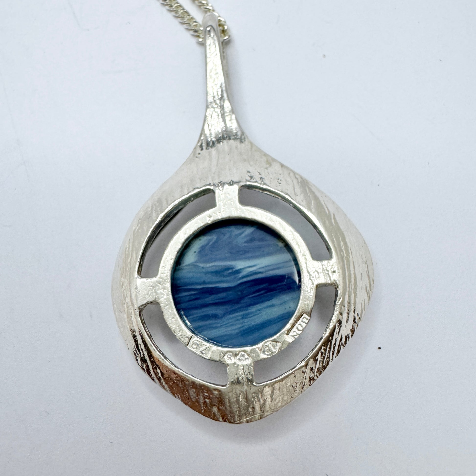 Ove Nordström, Sweden 1974. Vintage Sterling Silver Bergslagen-stone Pendant + Chain.