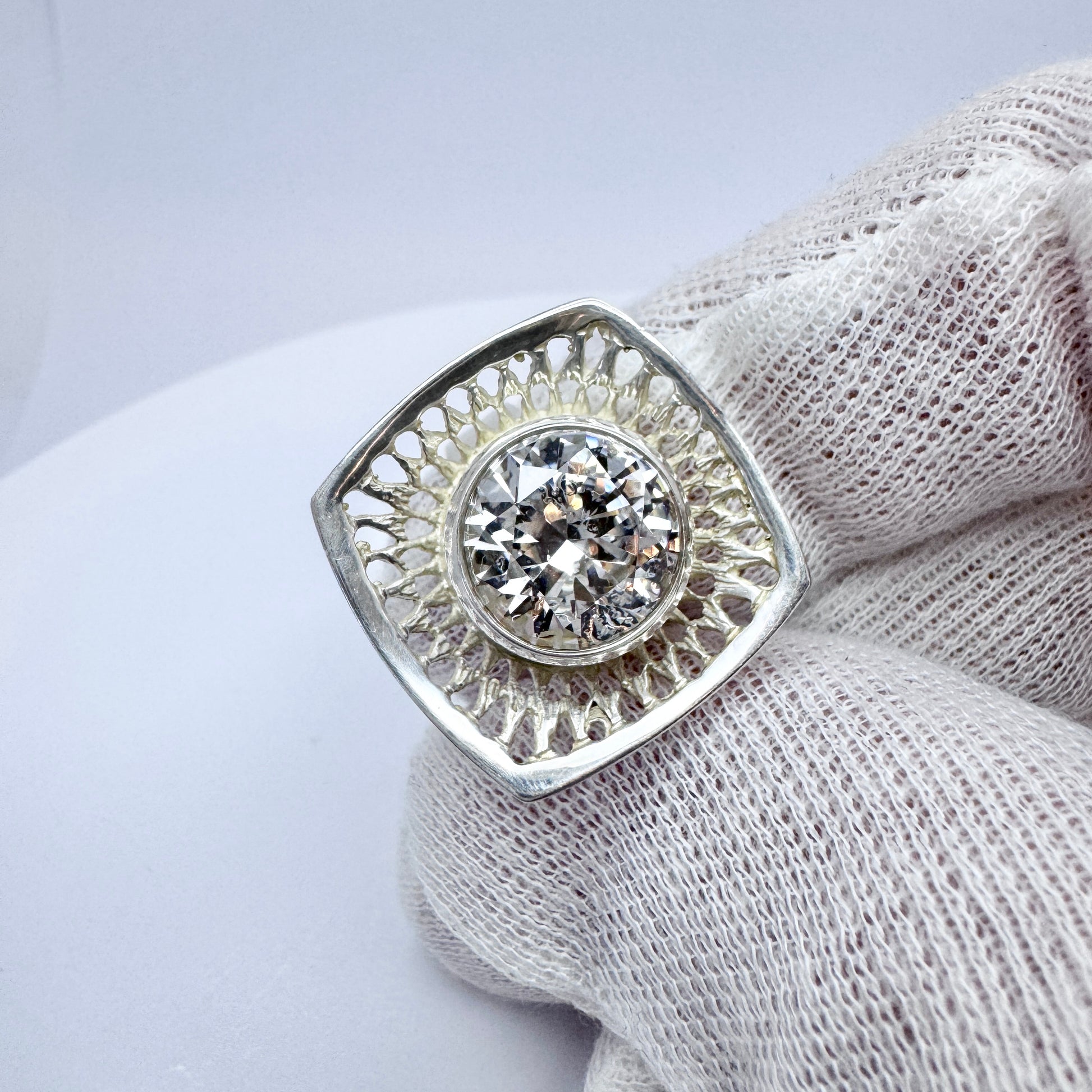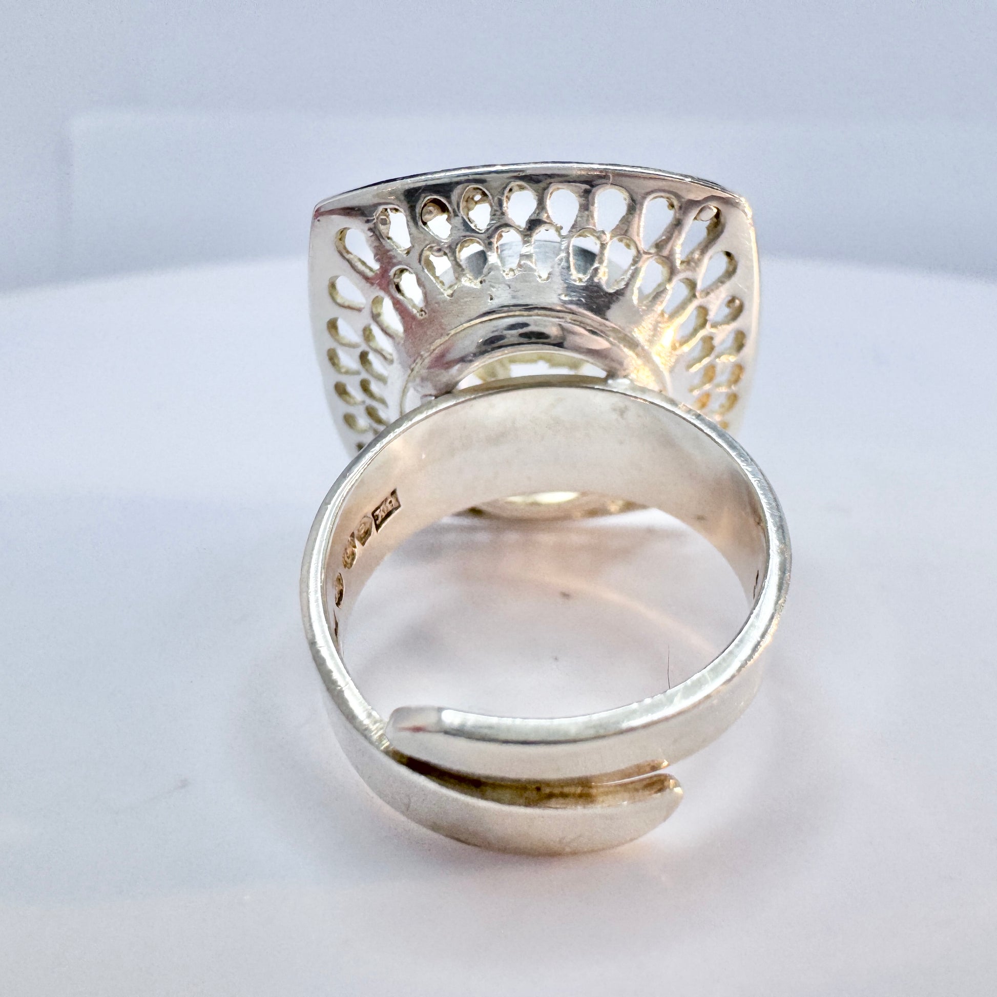 Wonderful and rare vintage modernist 935 sterling silver rock crystal ring. Fully hallmarked and signed for sought after KE Palmberg for ALTON, Sweden year 1972.