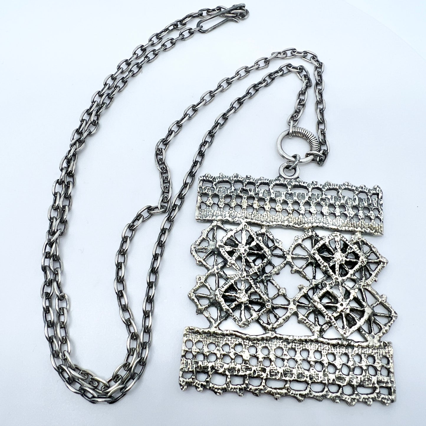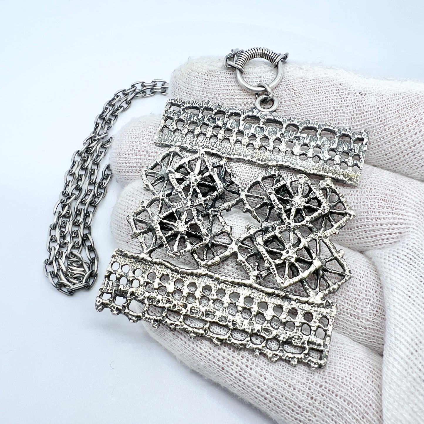 Wonderful and sought after vintage solid silver designer pendant necklace. Fully hallmarked for Turun Hopea, Finland year 1970. Design by renowned Pentti Sarpaneva.