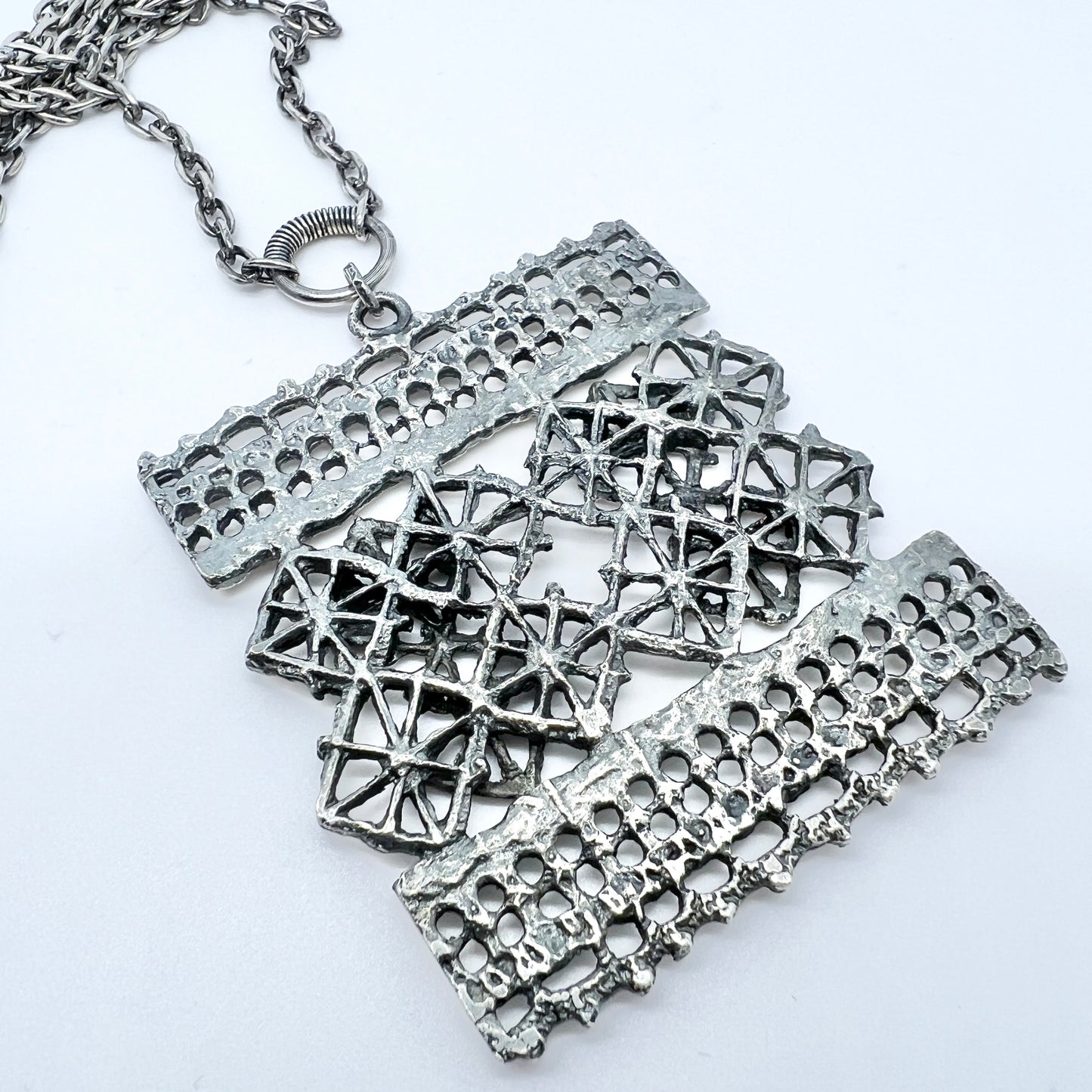 Pentti Sarpaneva for Turun Hopea, Finland 1970. Vintage Solid Silver Pendant Necklace.