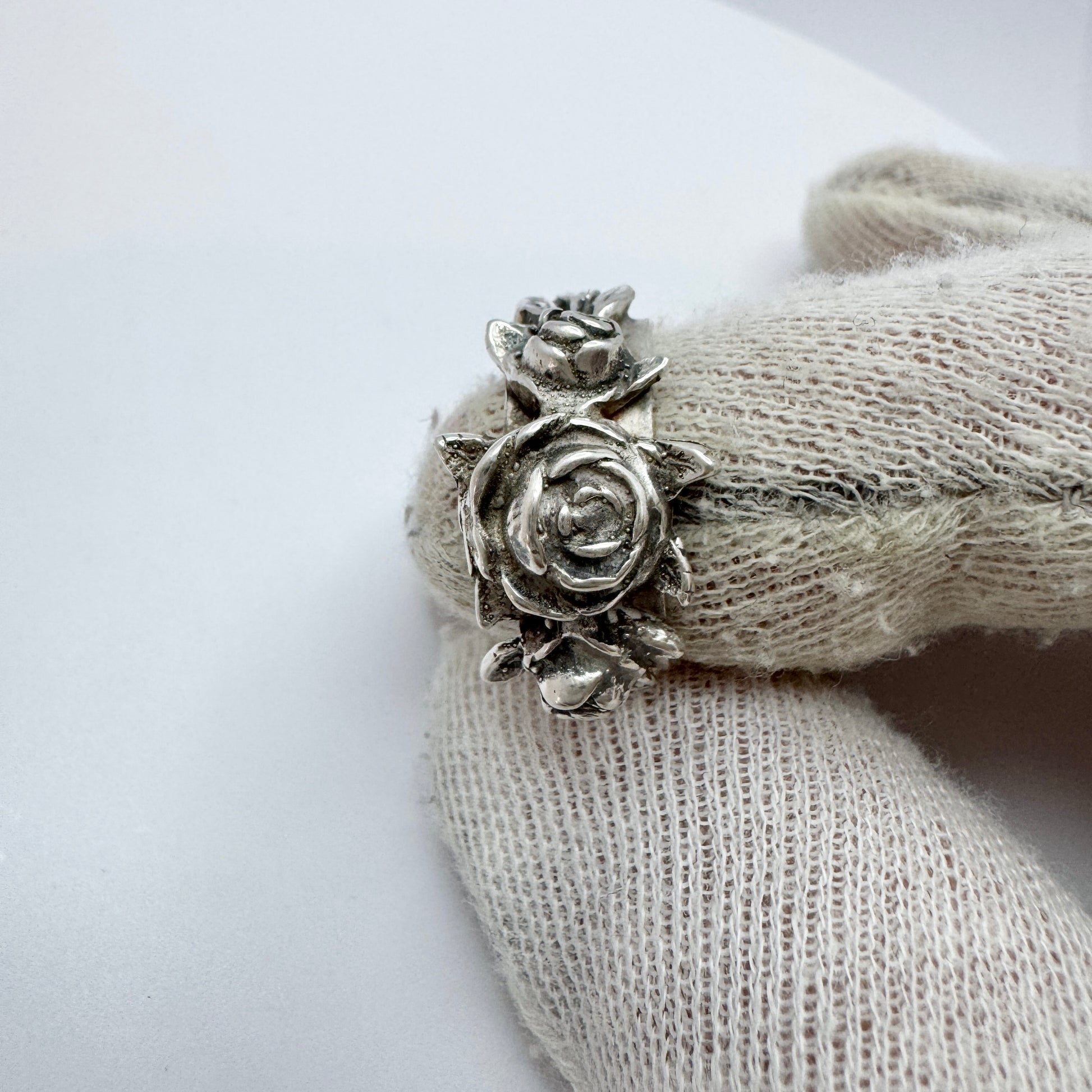 Pentti Sarpaneva for Turun Hopea, Finland 1978. Vintage Silver Wild Roses Ring. Signed.