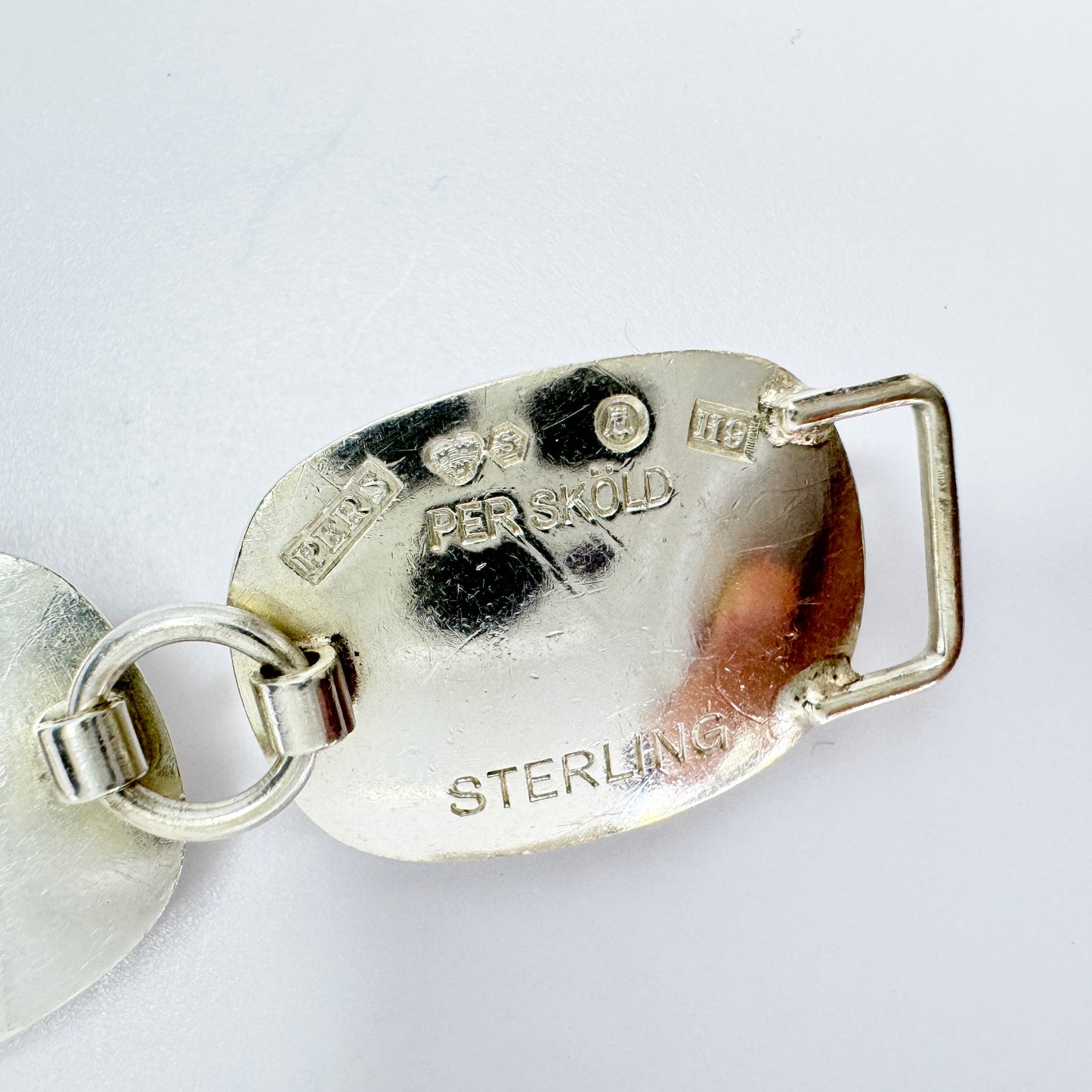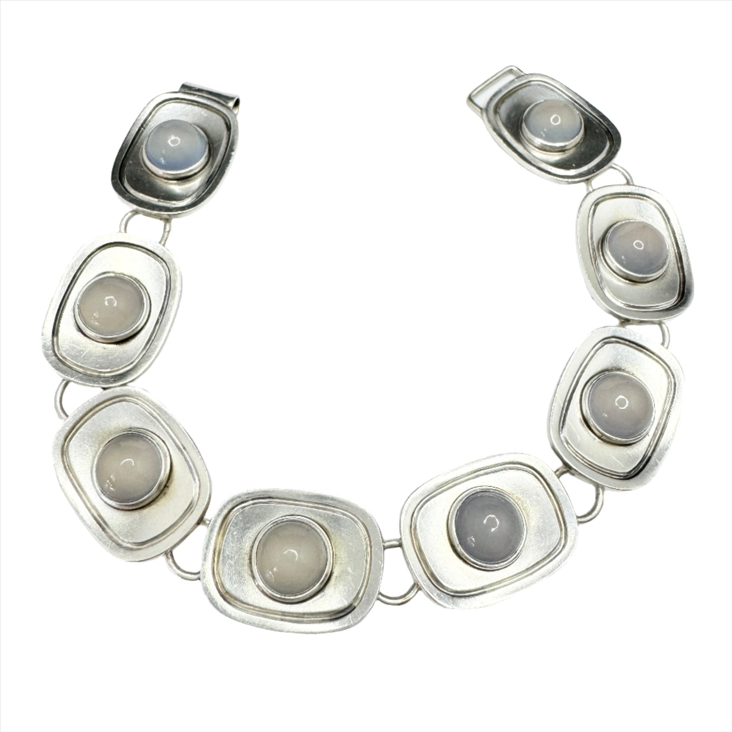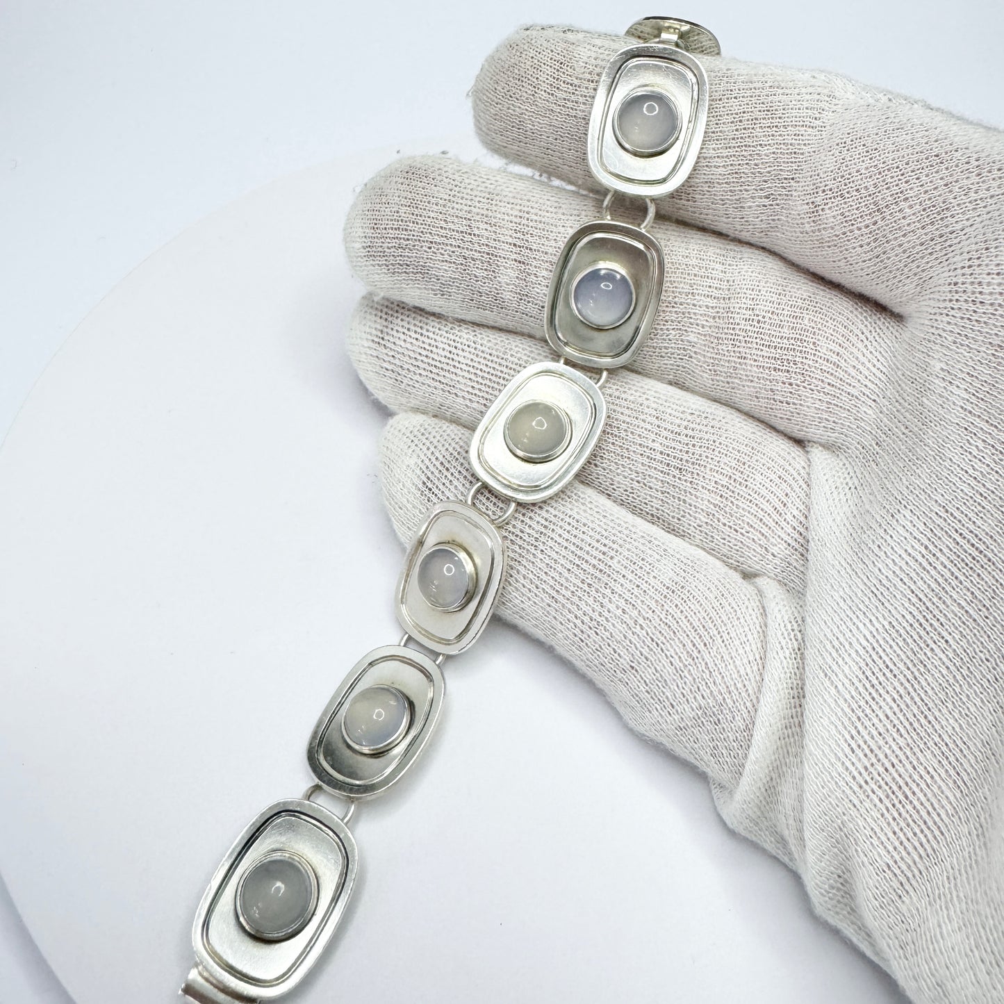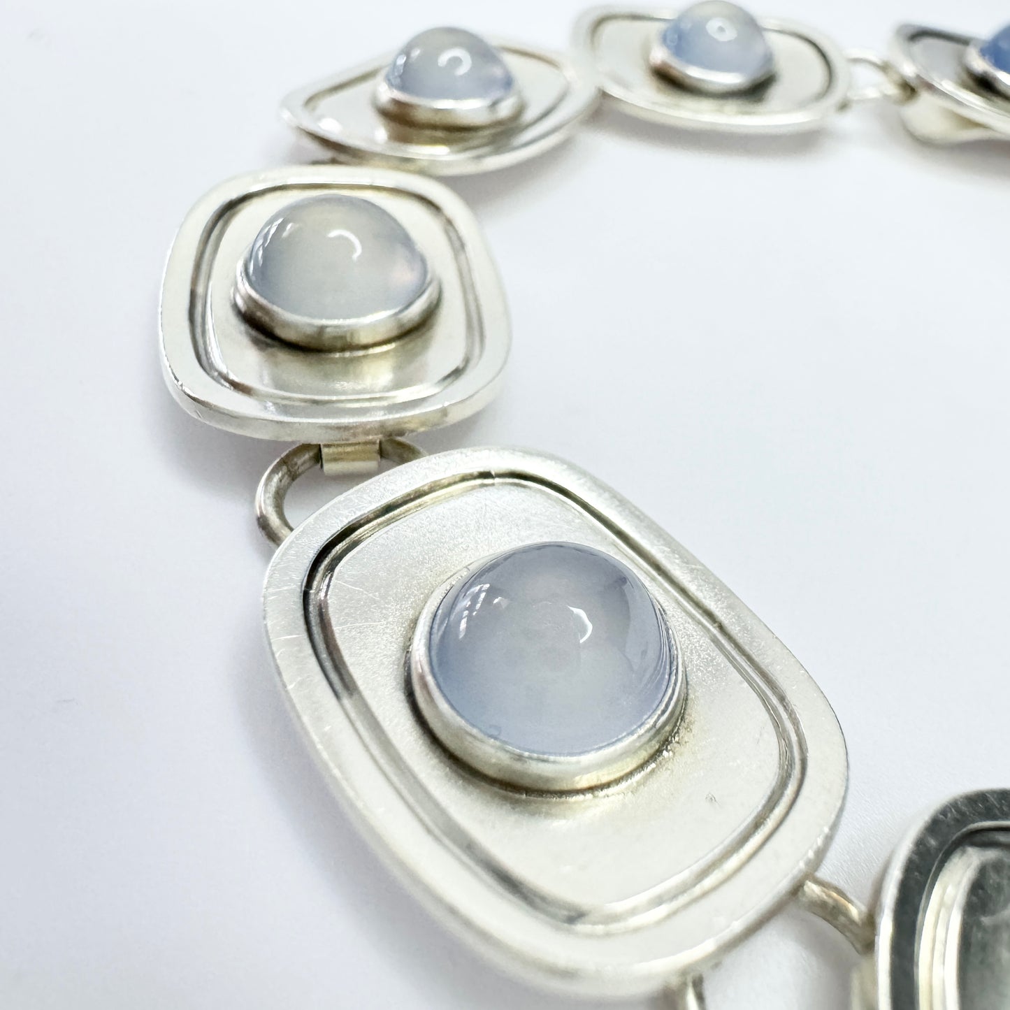 Wonderful and much sought after vintage sterling silver chalcedony bracelet. Fully hallmarked and signed for renowned Per Sköld, Sweden year 1958.
