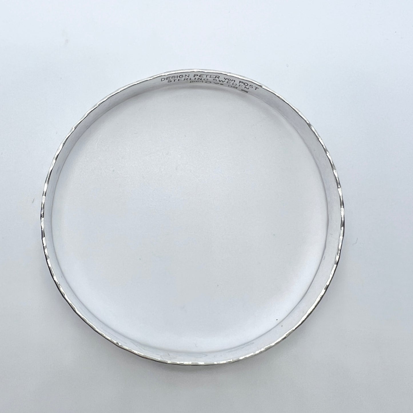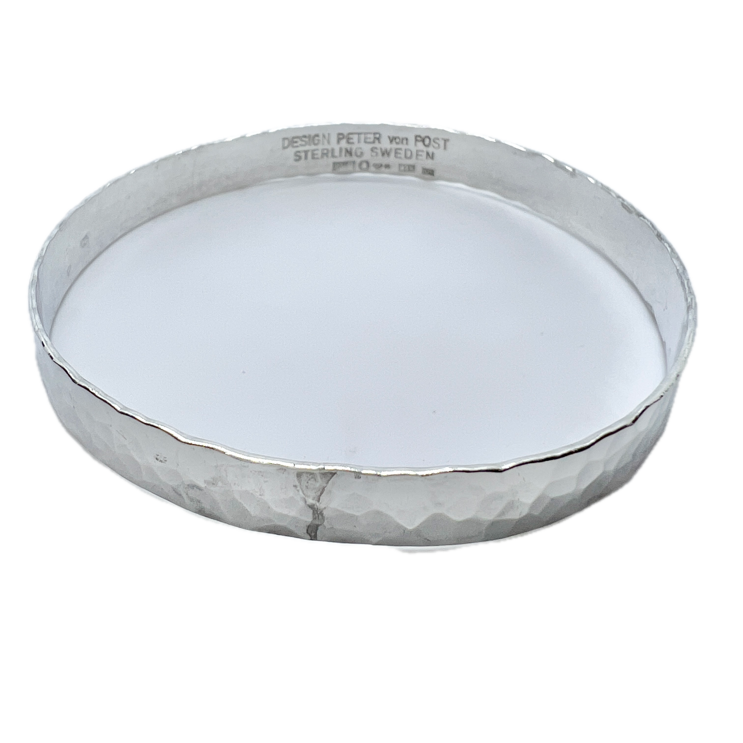 Beautiful vintage hammered sterling silver bangle bracelet. Fully hallmarked and signed for sought after Peter von Post, Sweden year 1975.