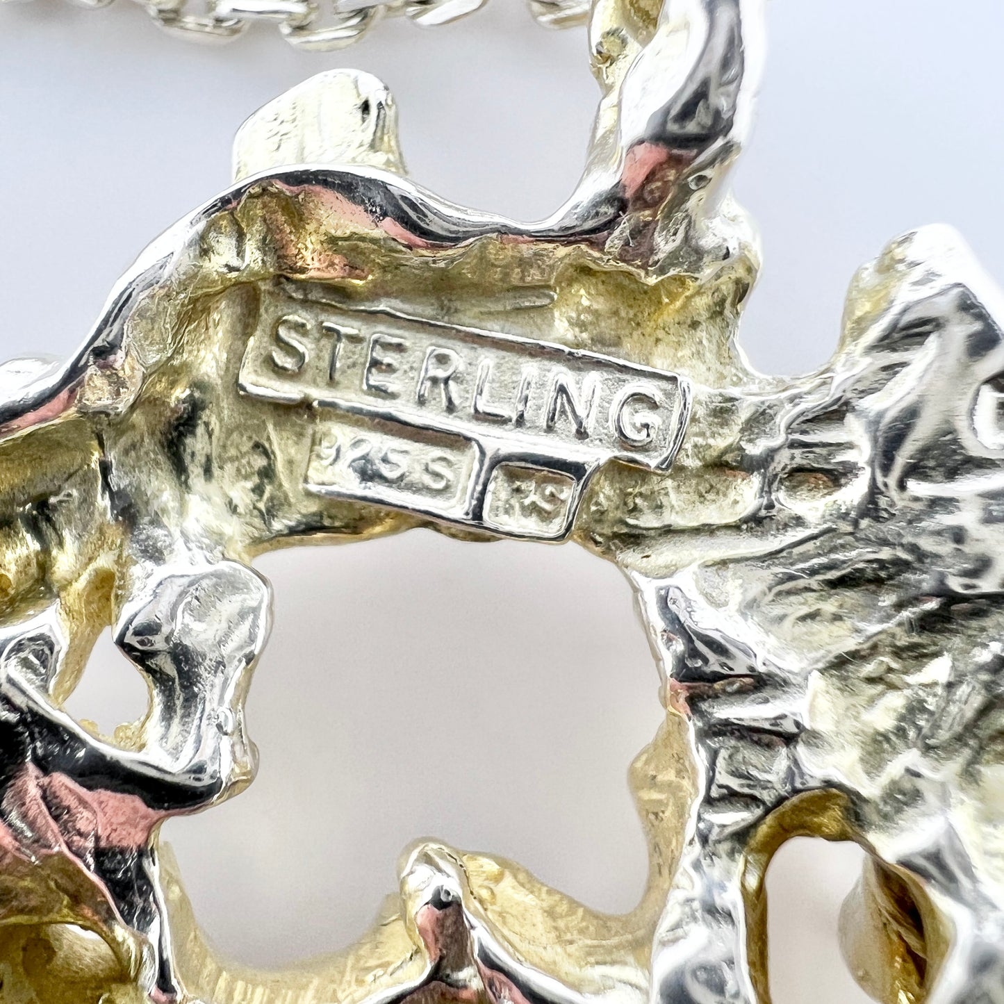 Wonderful and bold vintage sterling silver pendant necklace. Fully hallmarked for sought after Ragnar Skalstad, Norway c 1970.