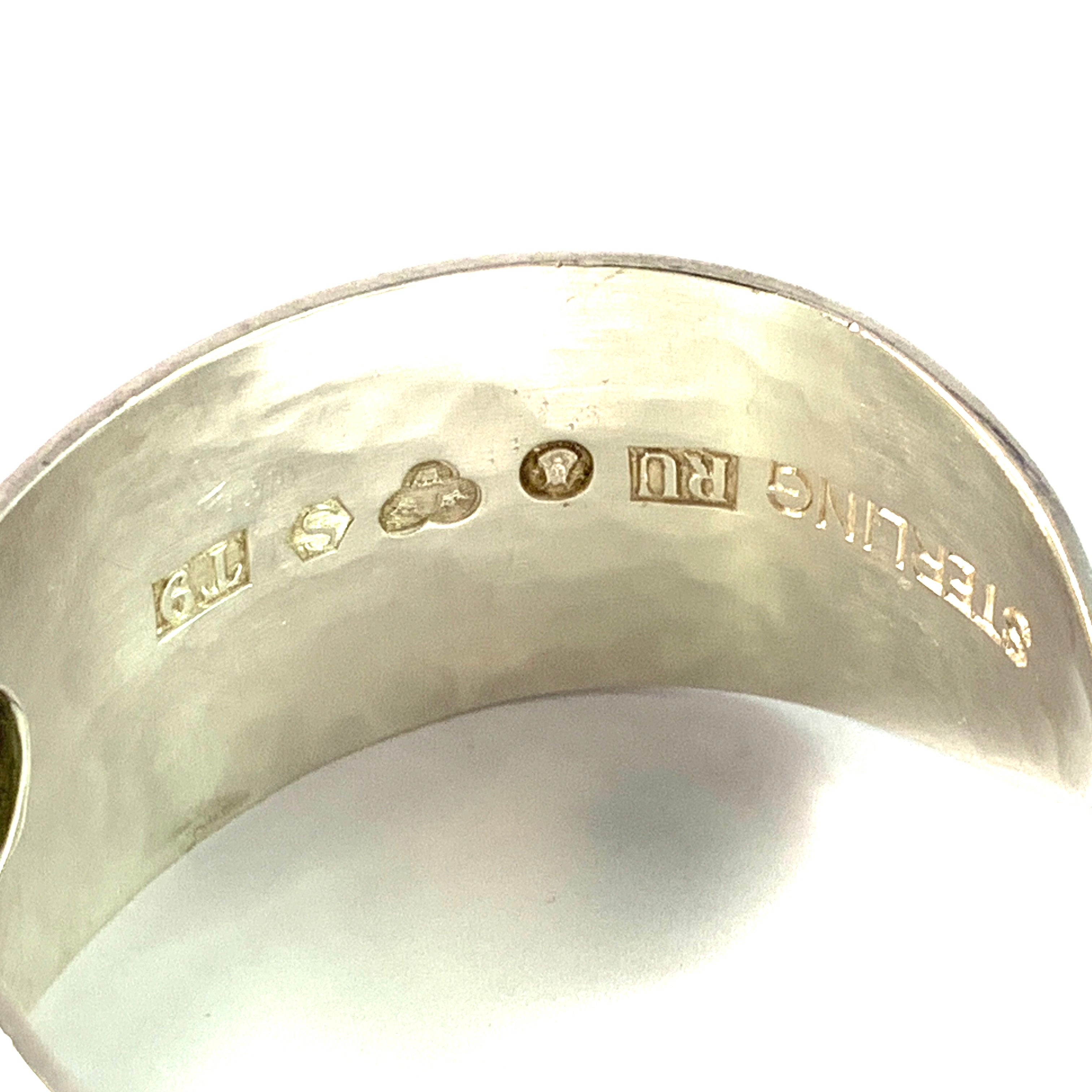 Wonderful and much sought after vintage sterling silver deep forest green hardstone cuff bracelet. Fully hallmarked and signed for renowned Rey Urban, Stockholm, Sweden year 1969.