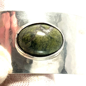Rey Urban, Sweden 1969. Vintage Sterling Silver Deep Forest Green Hardstone Cuff Bracelet. Signed.
