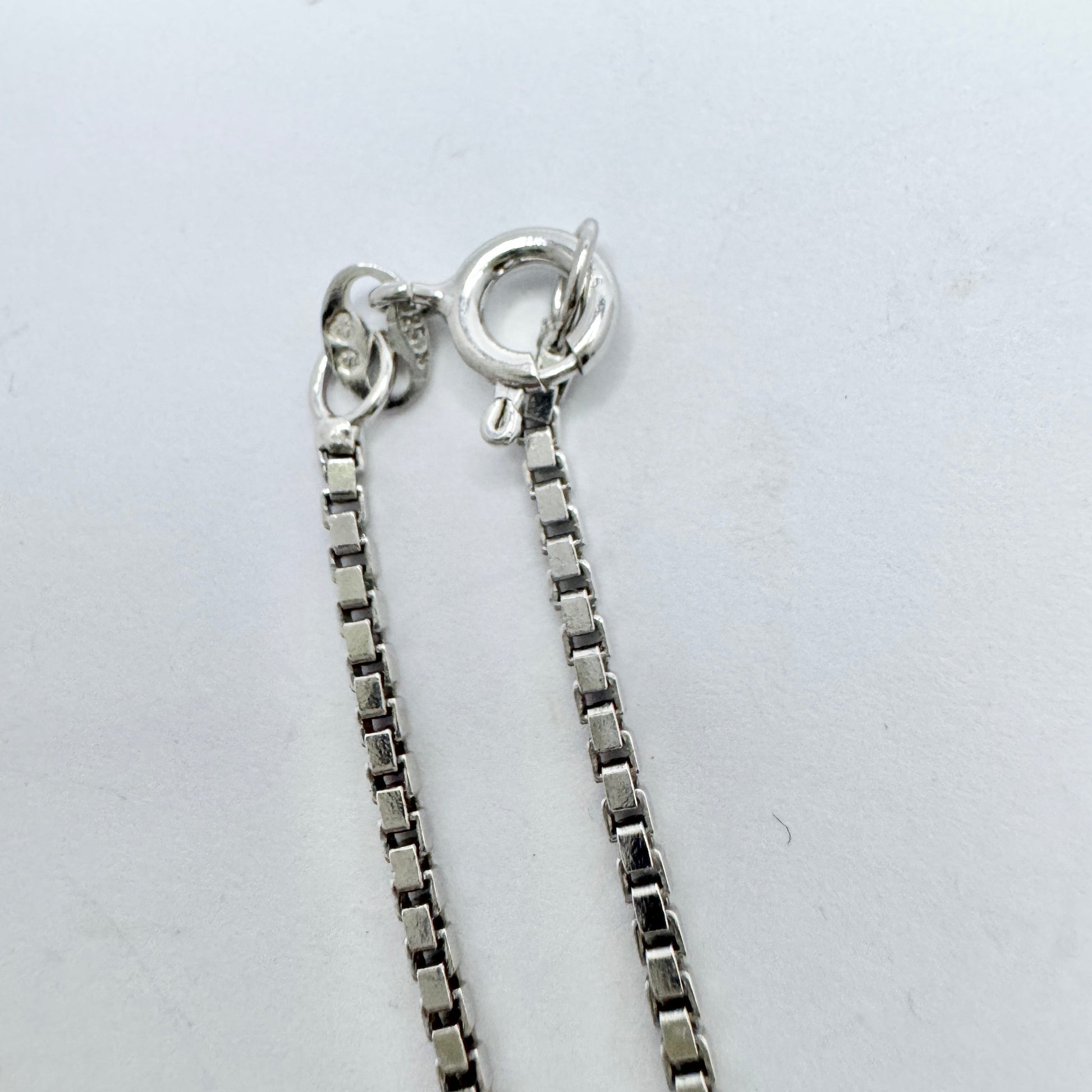 Wonderful and much sought after vintage sterling silver rock crytal pendant + chain. Pendant hallmarked for Salovaara, Finland ca 1970s. Box chain hallmarked for sterling silver and Swedish control marks.