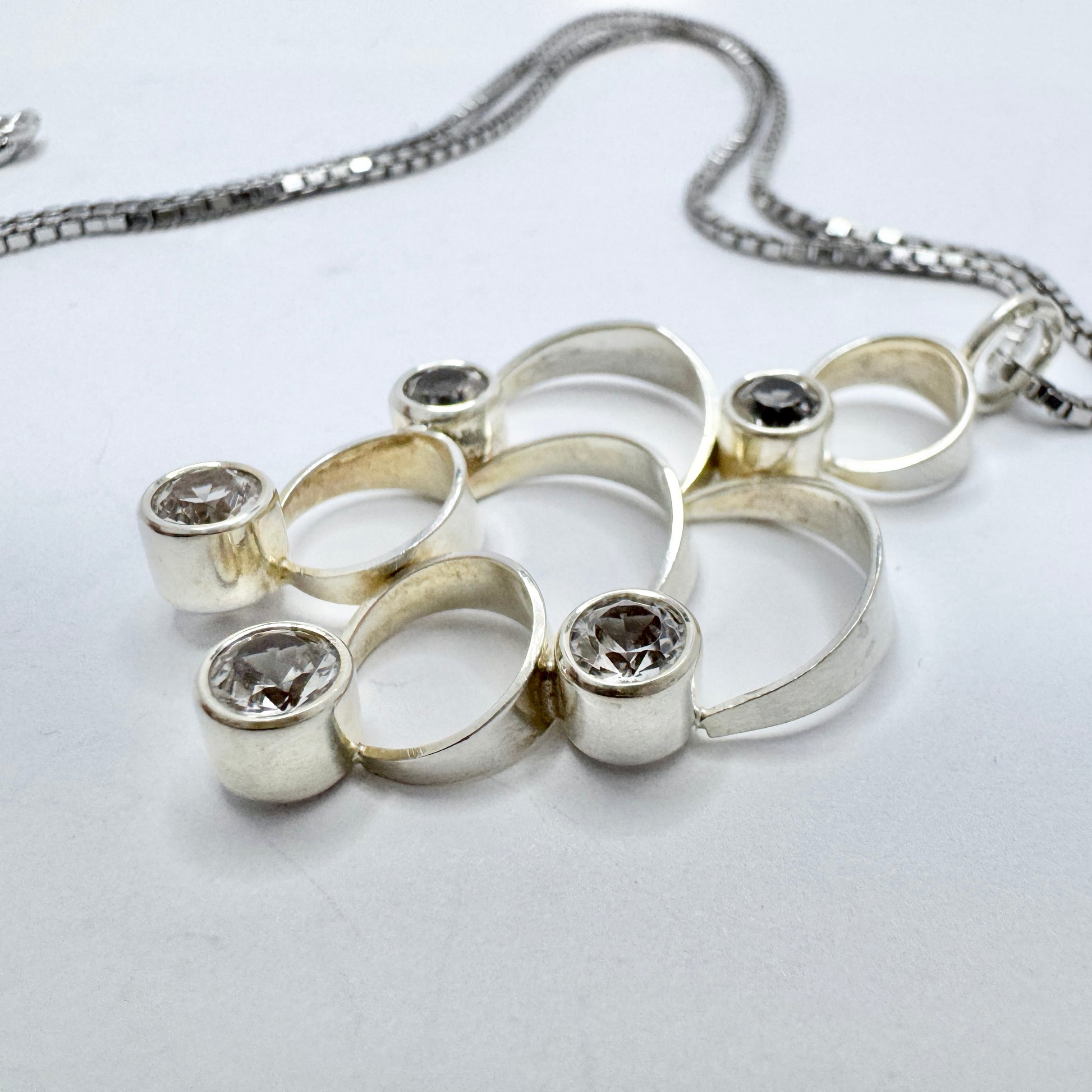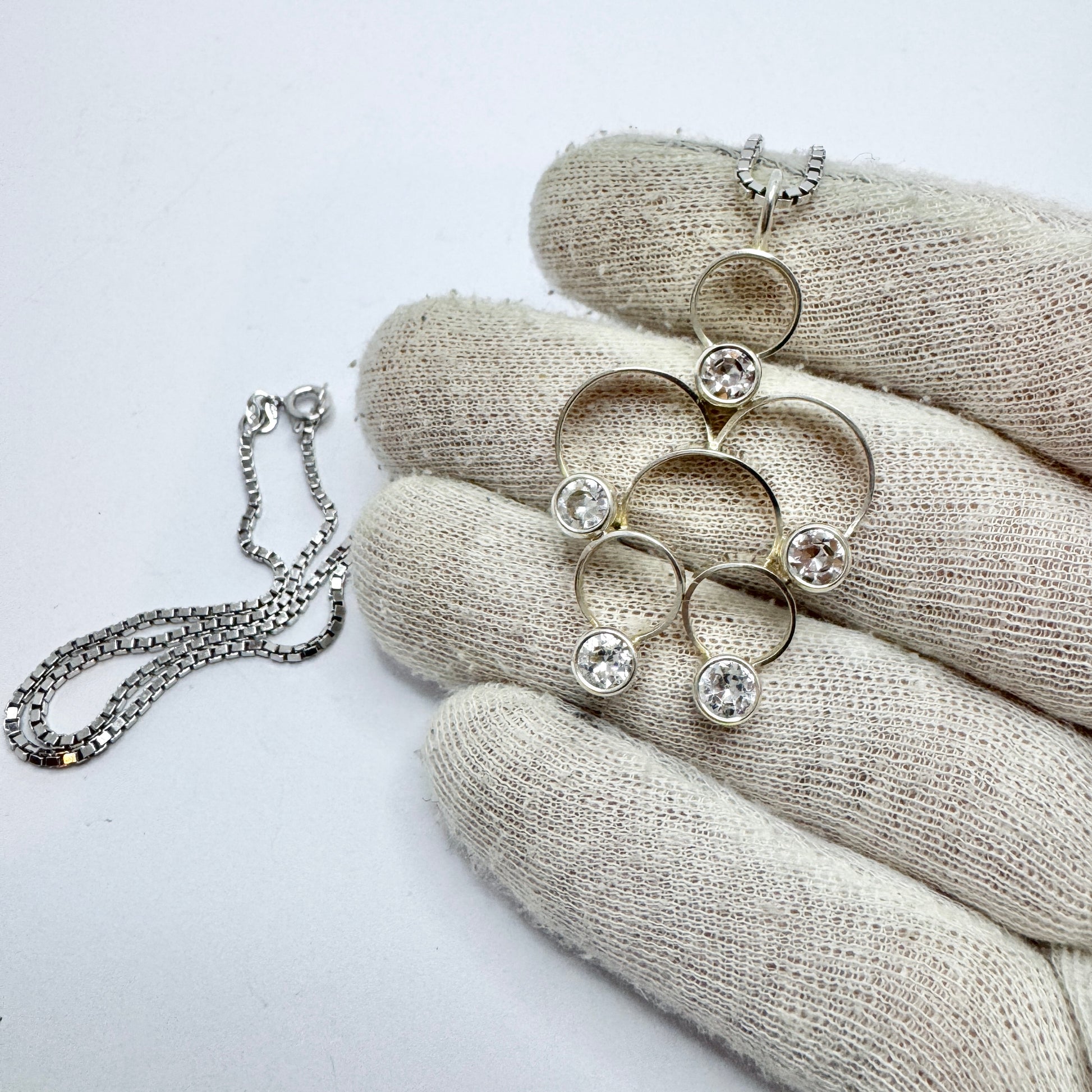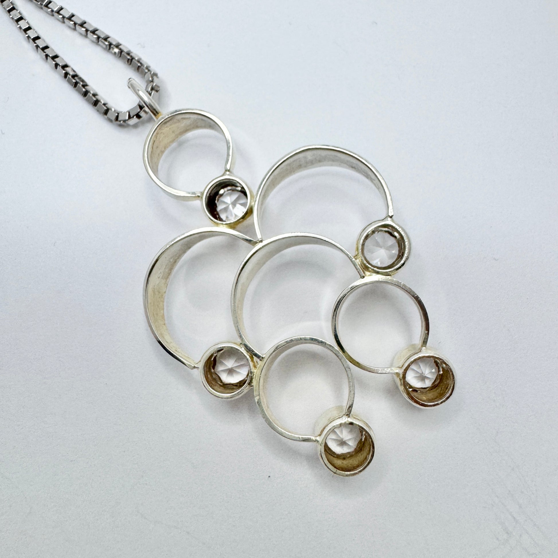 Salovaara, Finland 1970s. Vintage Sterling Silver Rock Crystal Pendant + Chain.