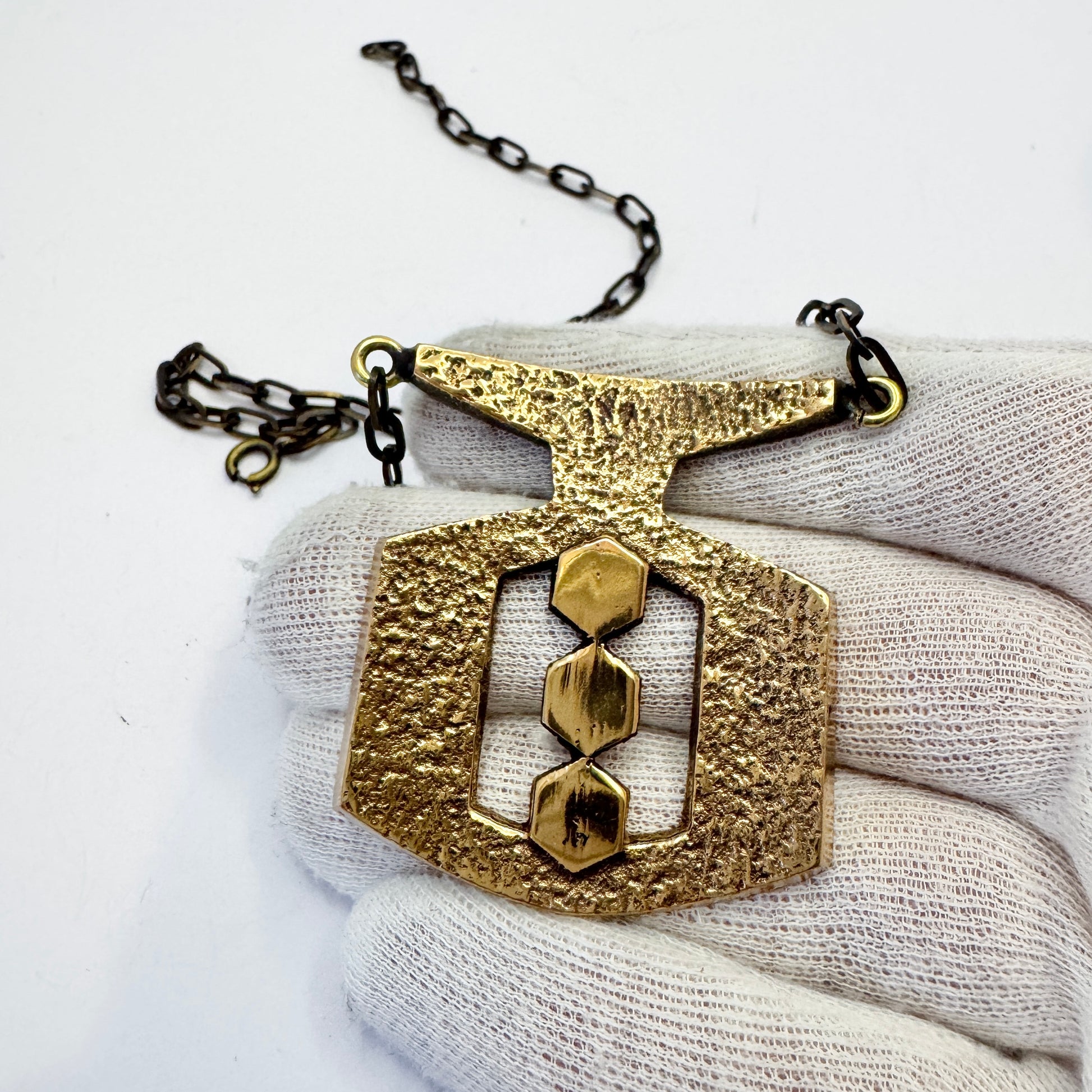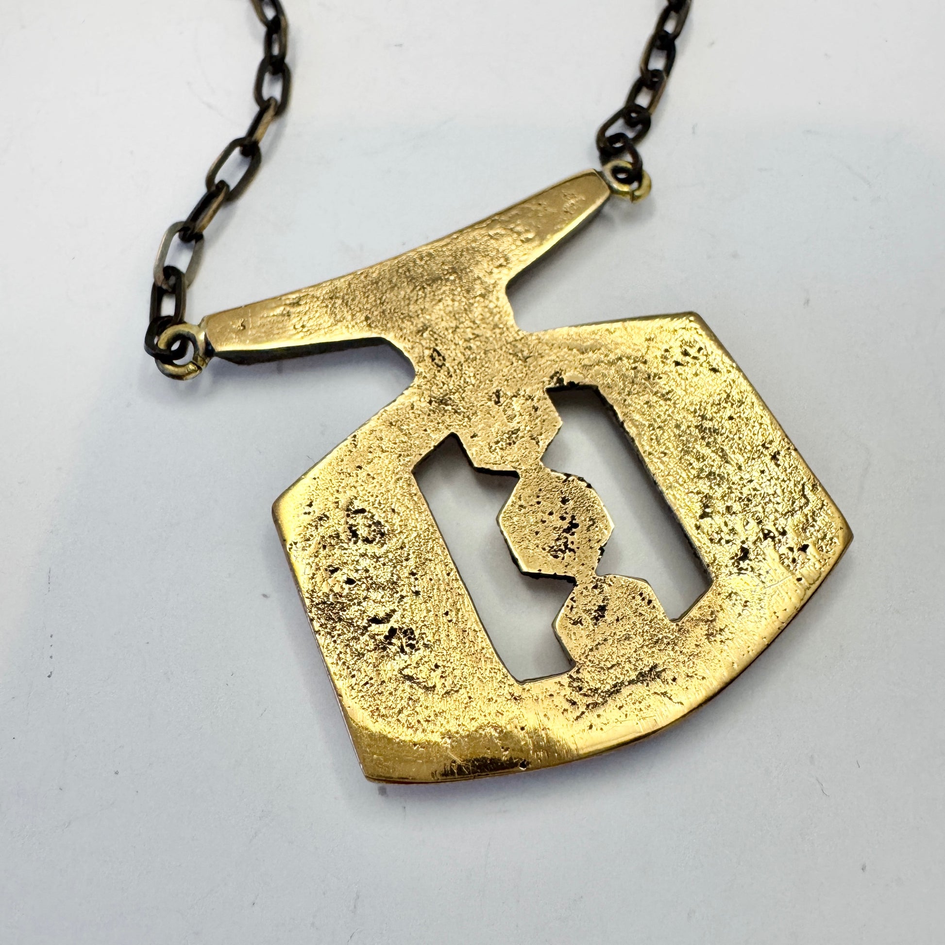 Scandinavia c 1970s. Bold Vintage Bronze Pendant Necklace.