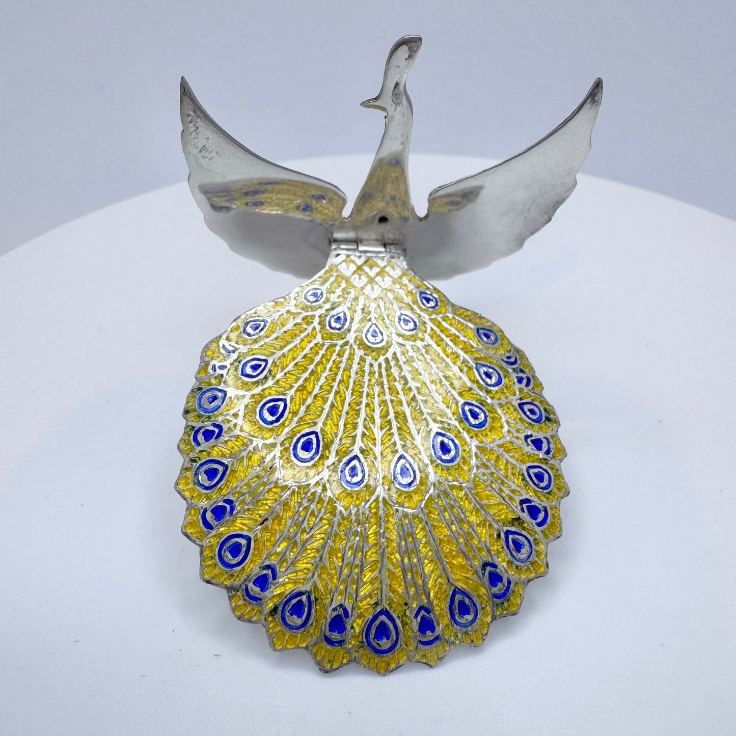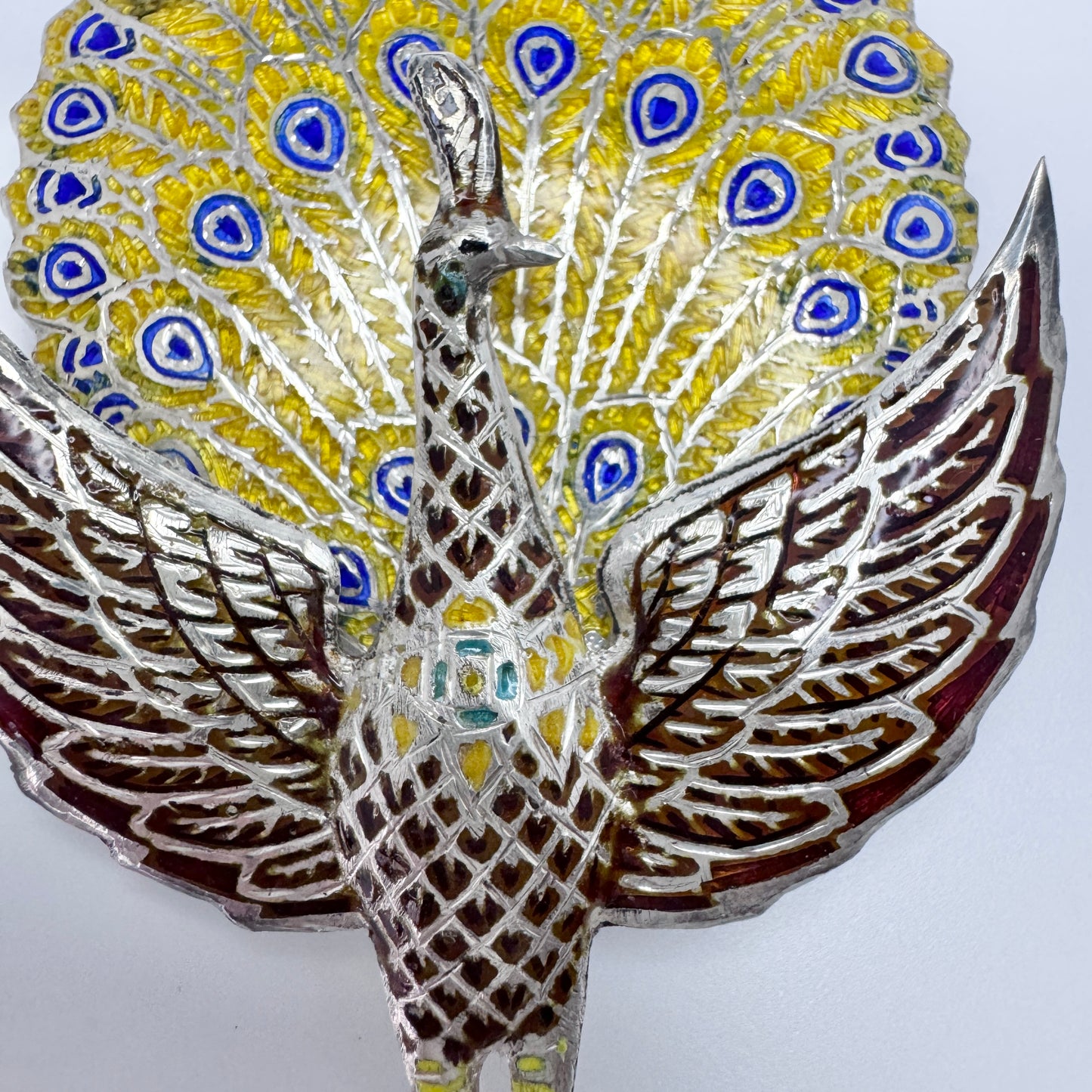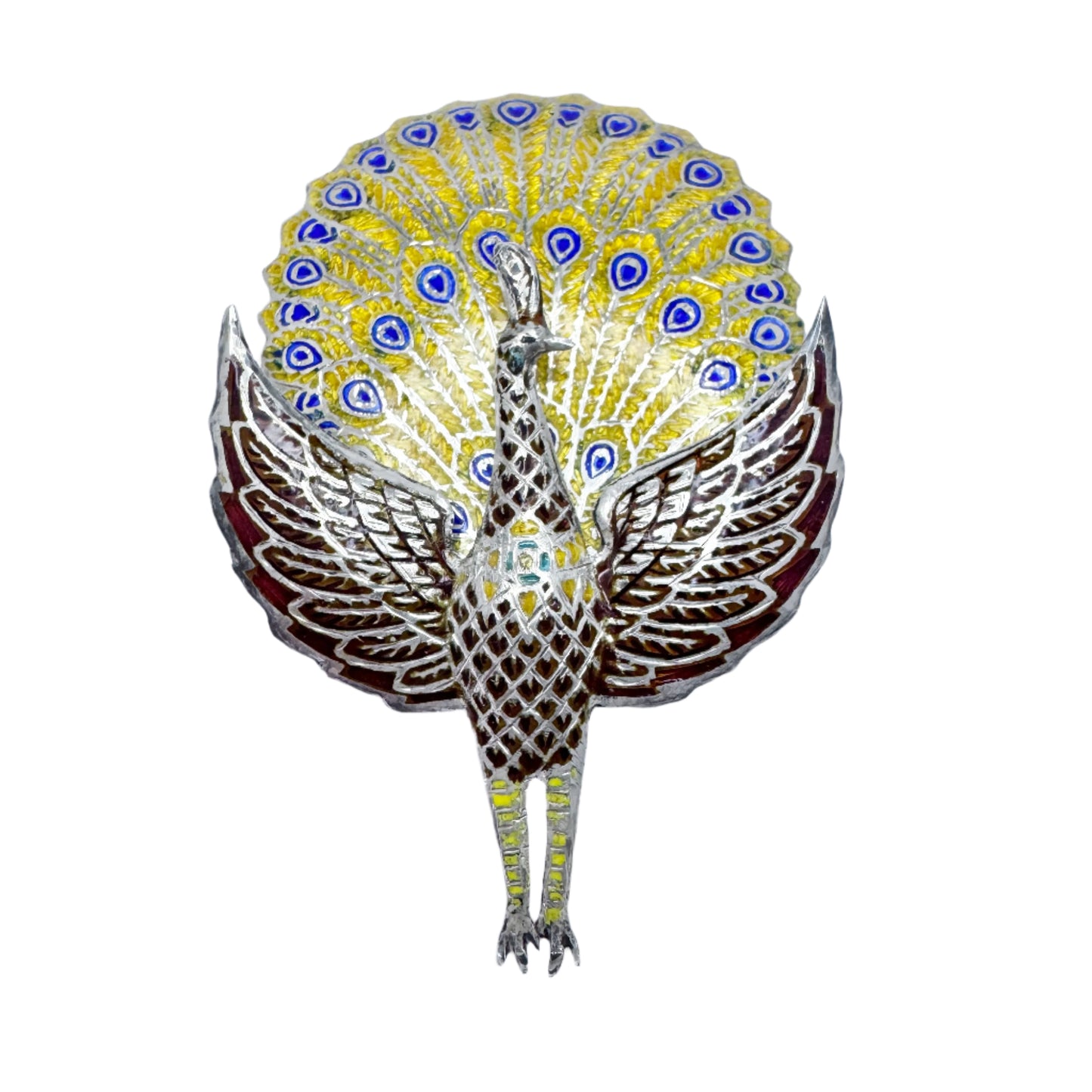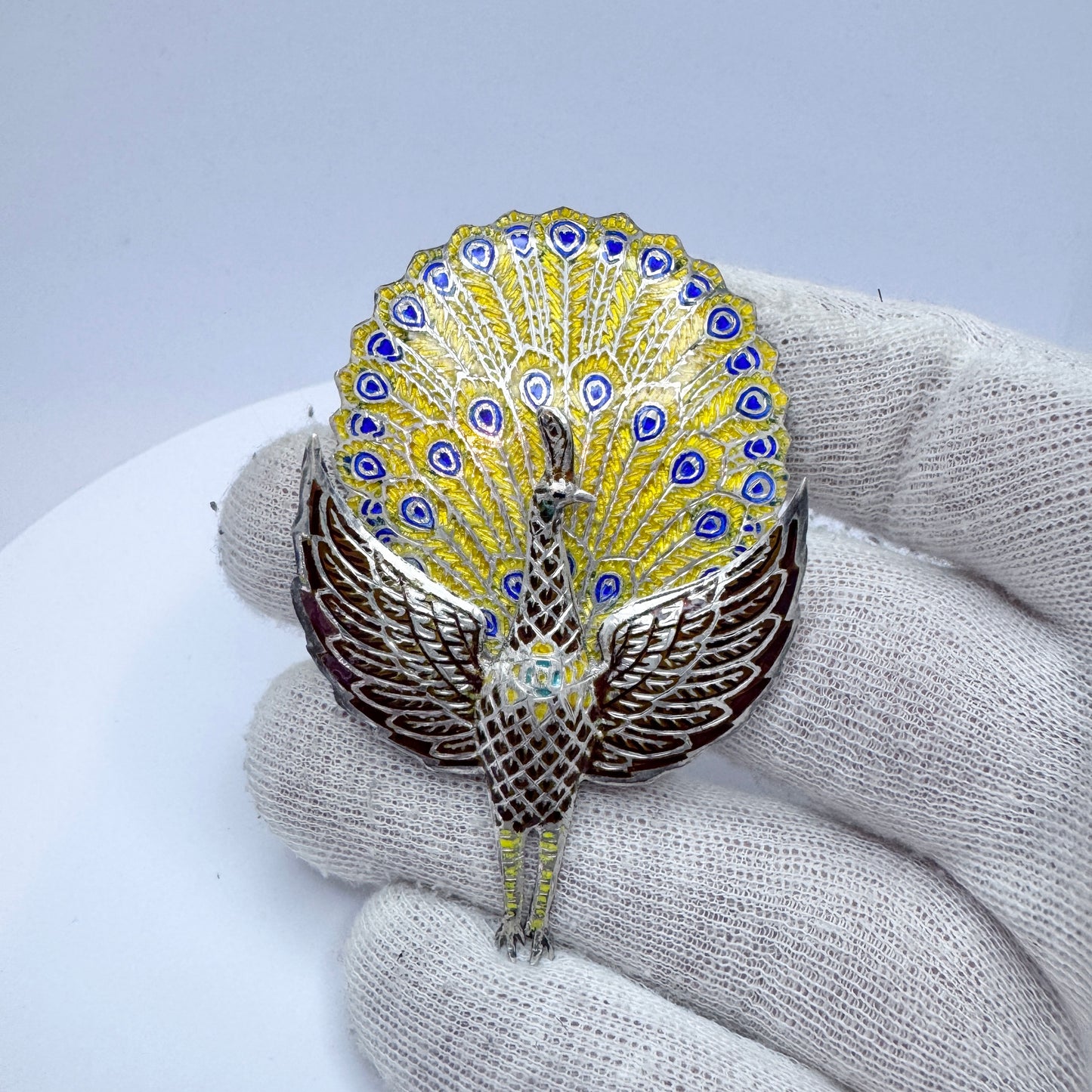 Siam. Large Vintage Sterling Silver Enamel Peacock Hinged Brooch.