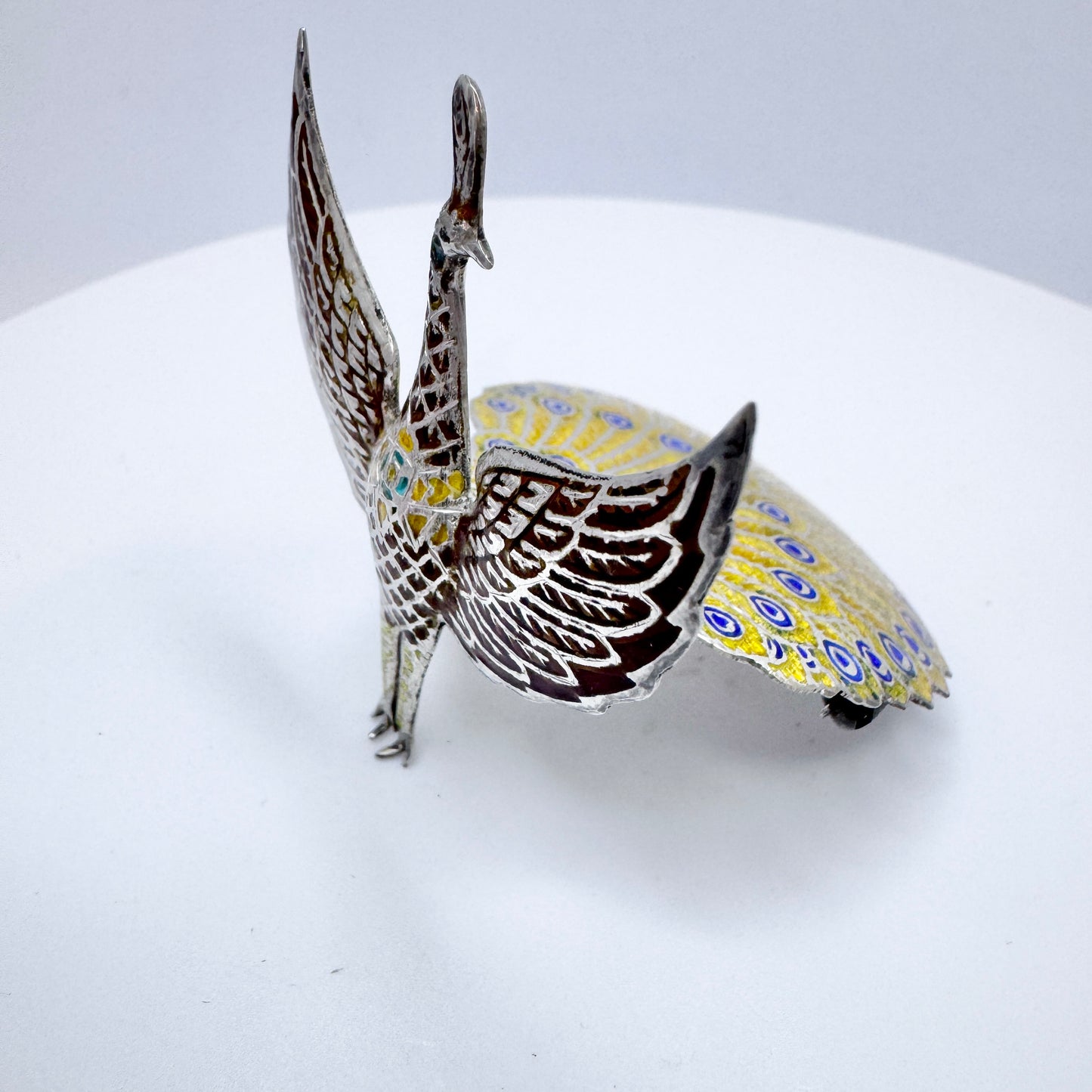 Chraming vintage sterling silver enamel peacock brooch. Hallmarked for Siam (Thailand) vintage.