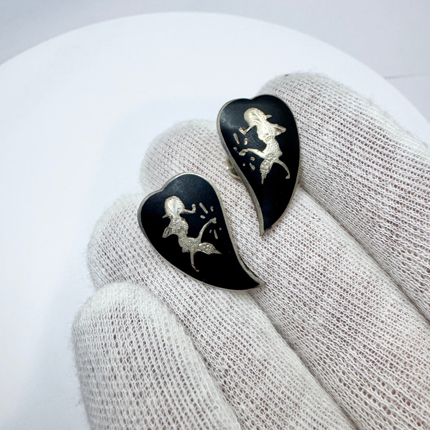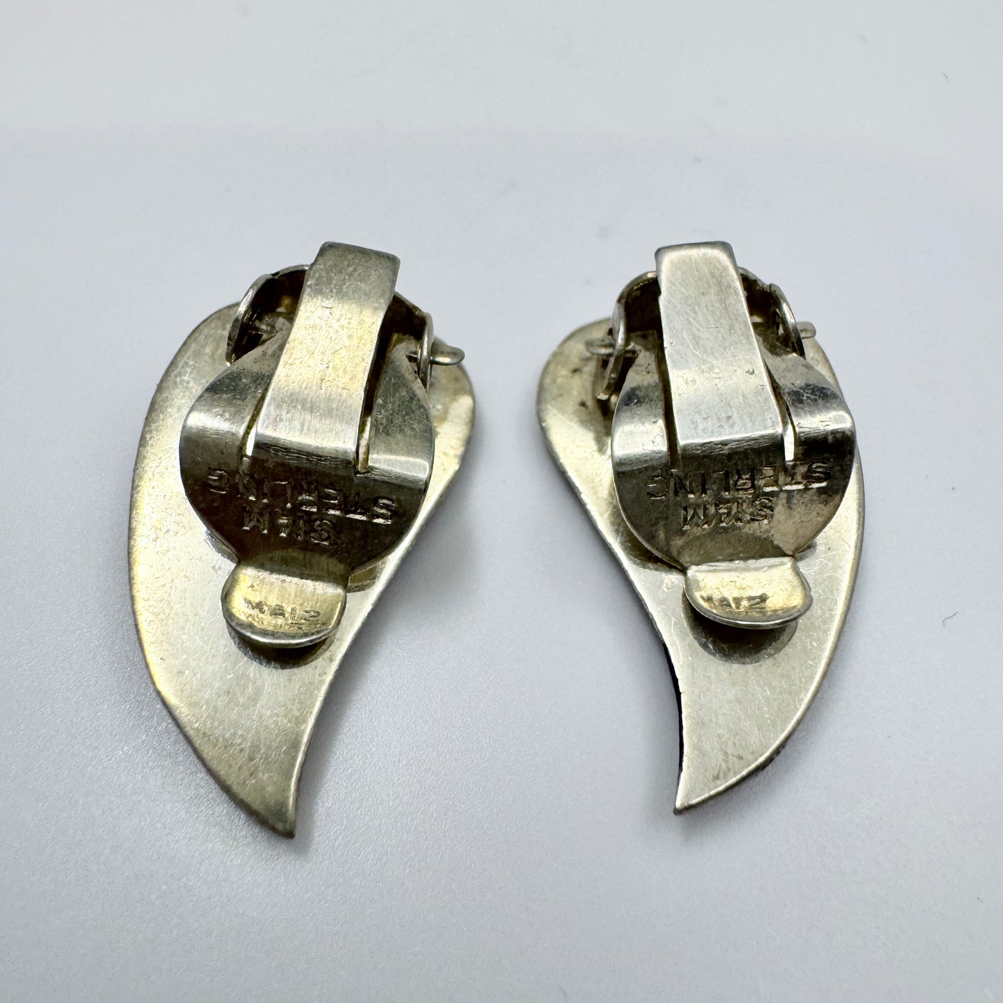 Siam, Vintage c 1960s. Sterling Silver Enamel Clip-on Earrings.