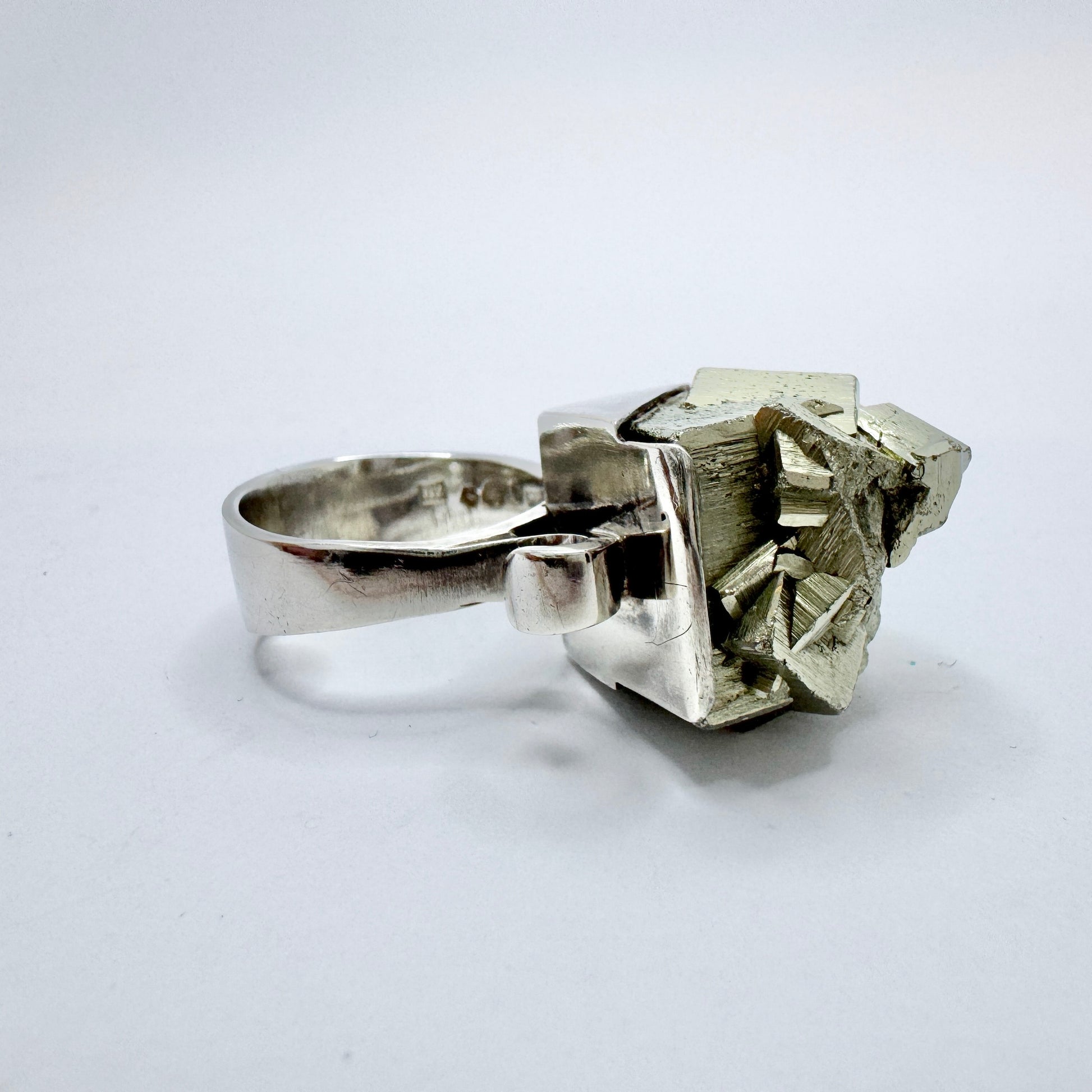 Silversmedjan I Järvsö, Sweden 1974. Bold Vintage Sterling Silver Pyrite Ring