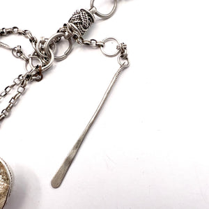 South East Asia Antique or Old Vintage Silver Chain with Opium Pipe Tools. Chatelaine