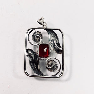 Sporrong, Sweden year 1950. Vintage Sterling Silver Red Paste Floral Pendant.