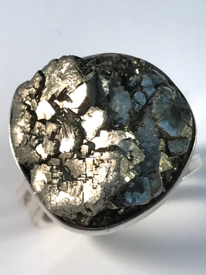 Wonderful and sought after sterling silver pyrite modernist ring. Fully hallmarked for renowned maker Stenlya, Stockholm, Sweden year 1972.