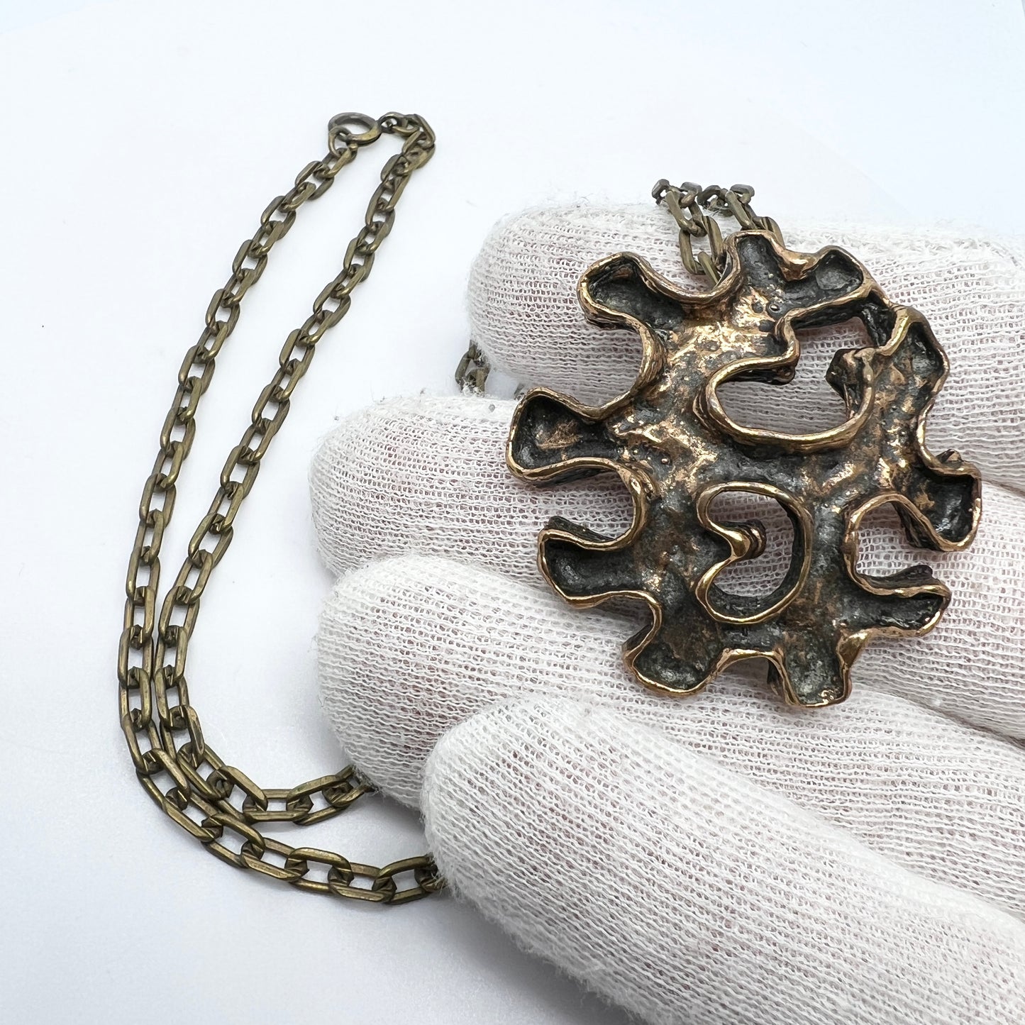Studio Else and Paul, Norway 1960s Vintage Bronze Pendant Necklace