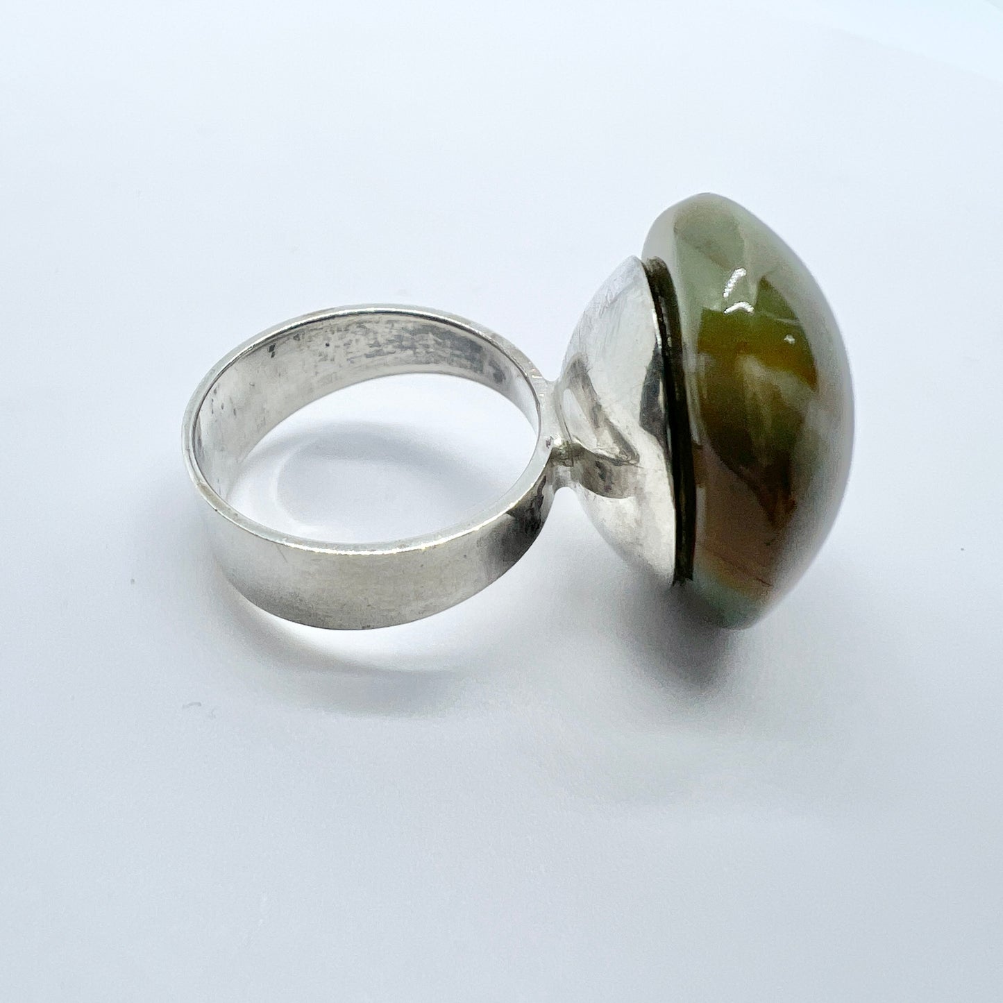 Svedbom, Sweden 1968 Vintage Sterling Silver Agate Ring.