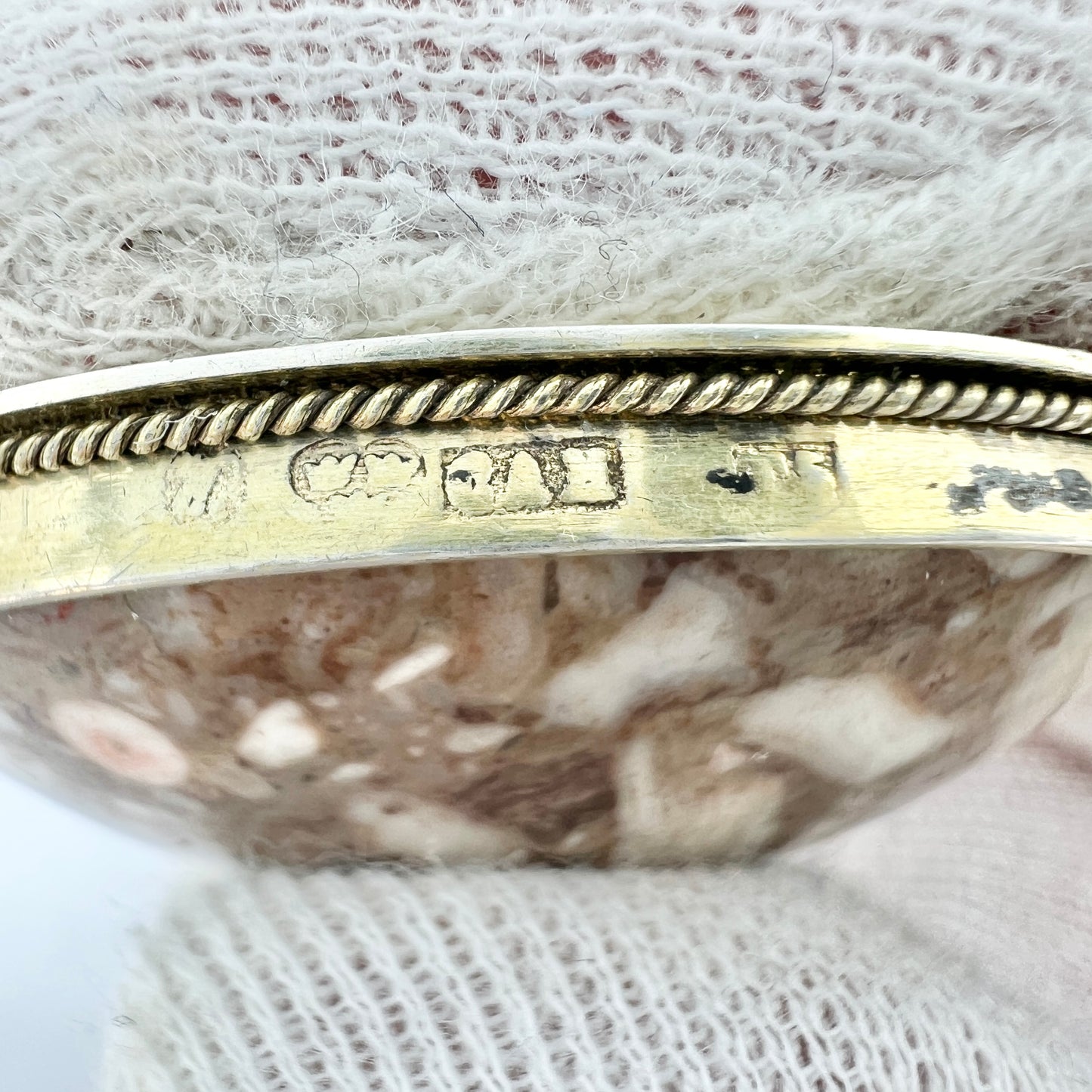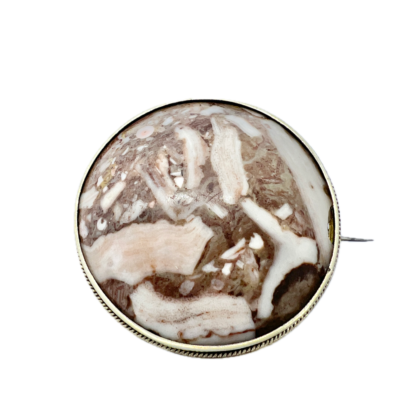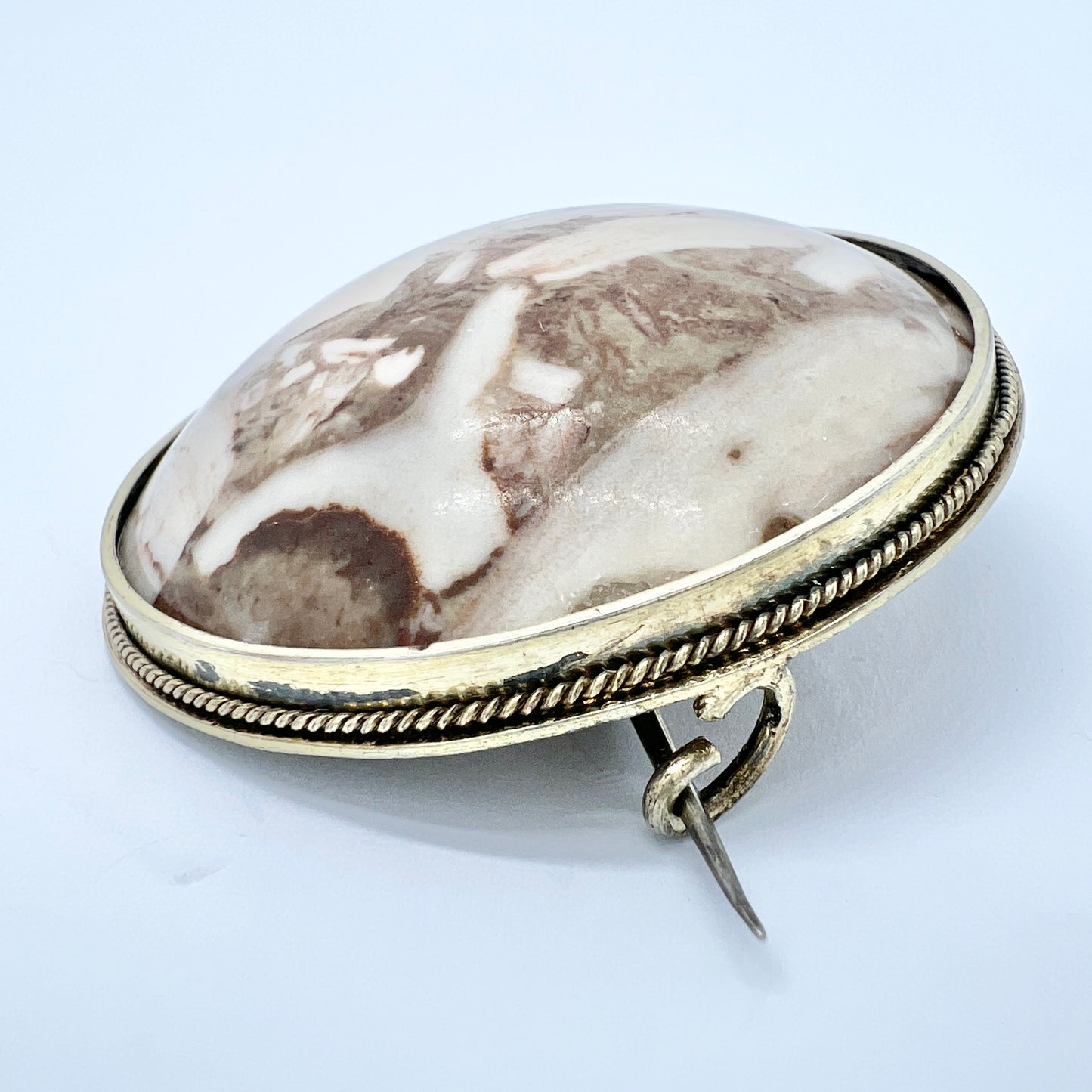 Sweden 1875, Large Antique Victorian Solid Silver Marble Brooch