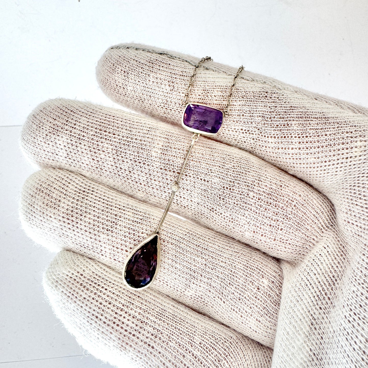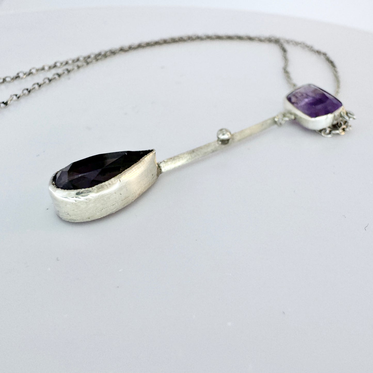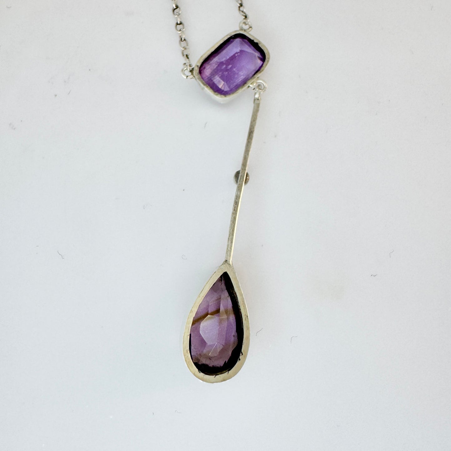 Sweden 1920-30s. Vintage Solid Silver Amethyst Pendant Necklace.