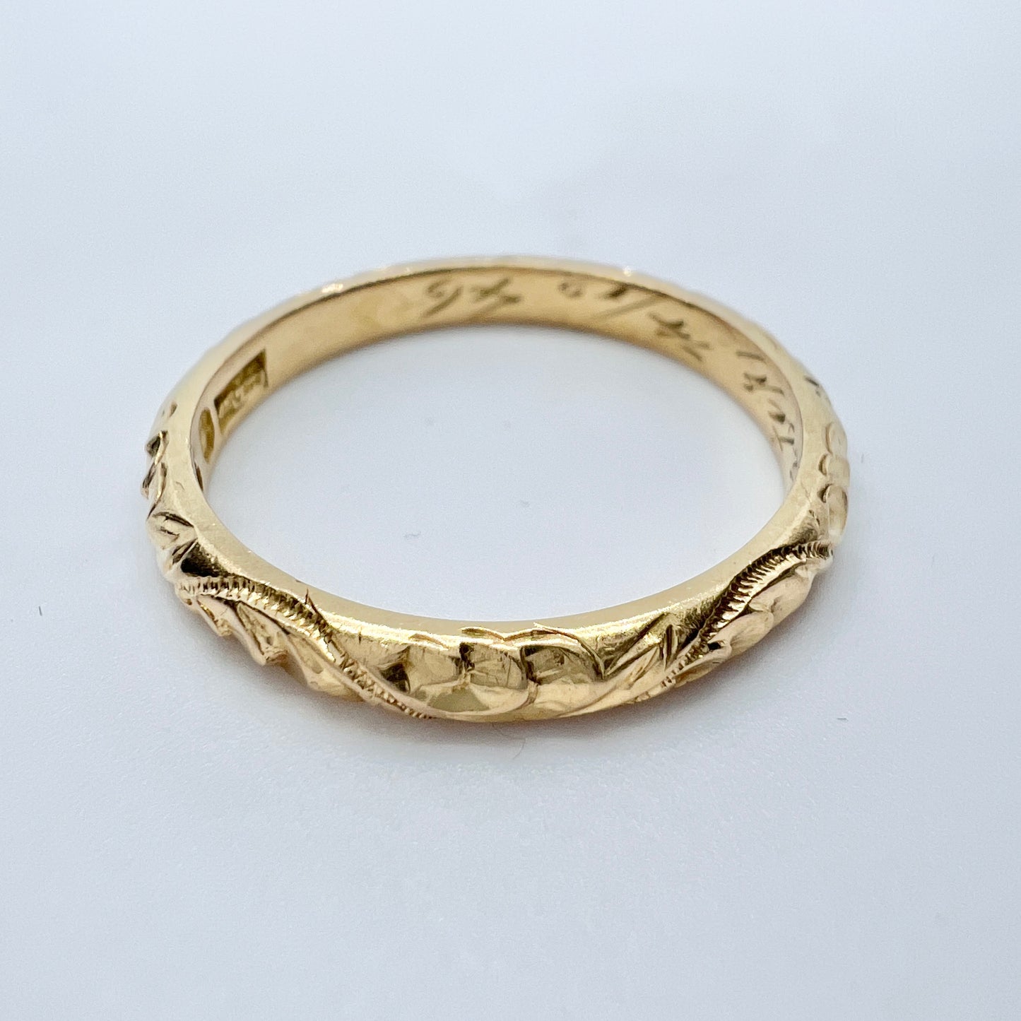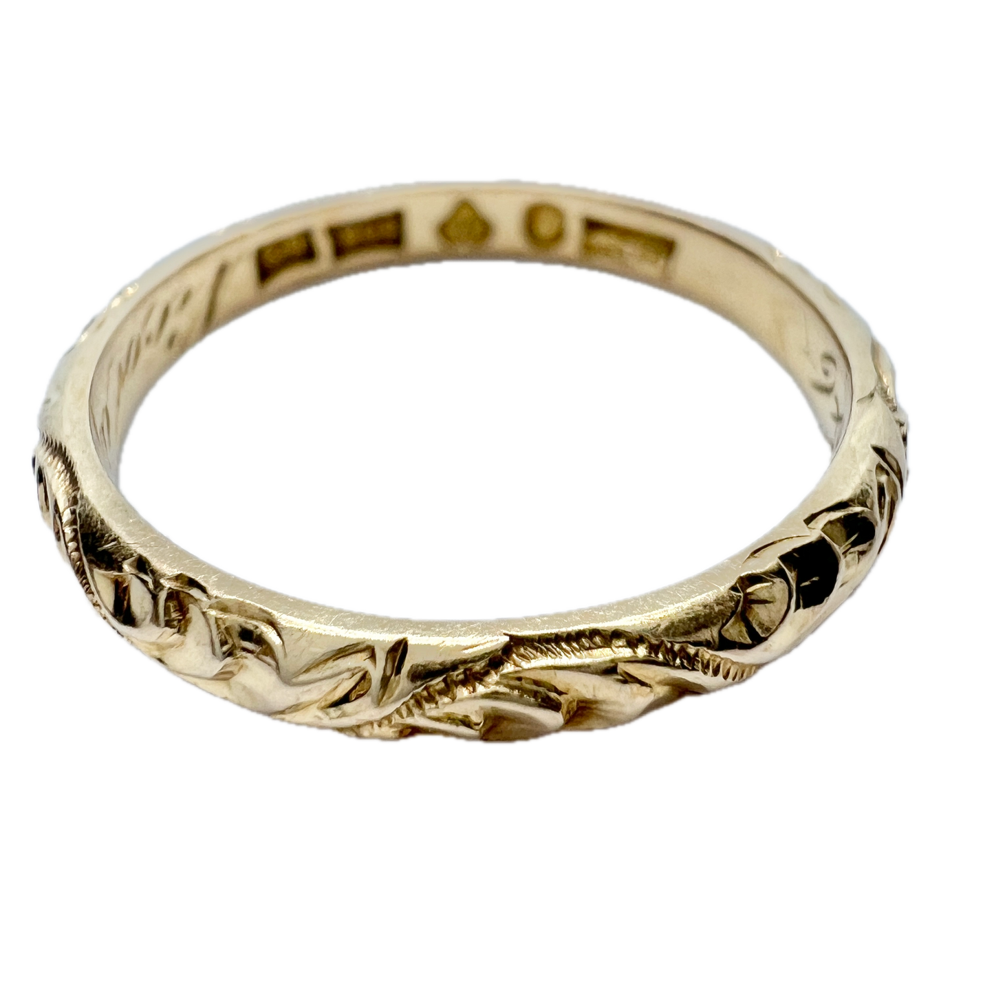 Beautiful vintage 20k gold wedding band ring. Fully hallmarked for 20k gold, Stockholm Sweden year 1937. Inside engraving from 1946.